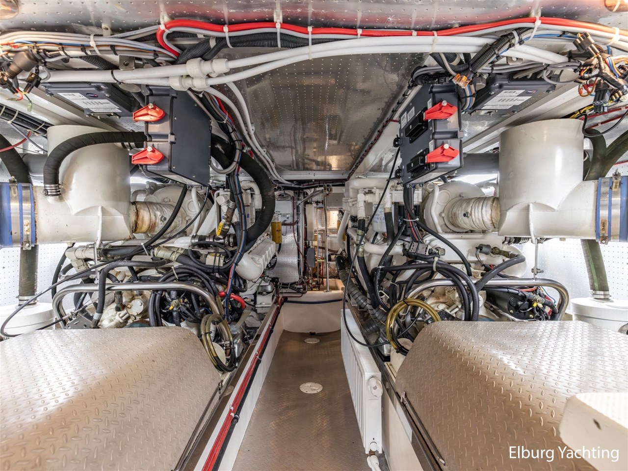 Dee Fleming 55 beschikt over een professioneel geïsoleerde machinekamer, vaste verschansing rondom, buiten ingang voor de machine kamer, r,v,s, stootrand, groot achterdek, vast achterdak over achterdek waardoor u zon vrij kan zitten, 2 x trap naar flybridge en via luie trap via stuurhuis, 2 x zijdeur + 1 x achterdeur gelijkvloers naar open kuip + ingang flybridge, 3 x camera (1 x machine +1 x achter+ 1 x zij)