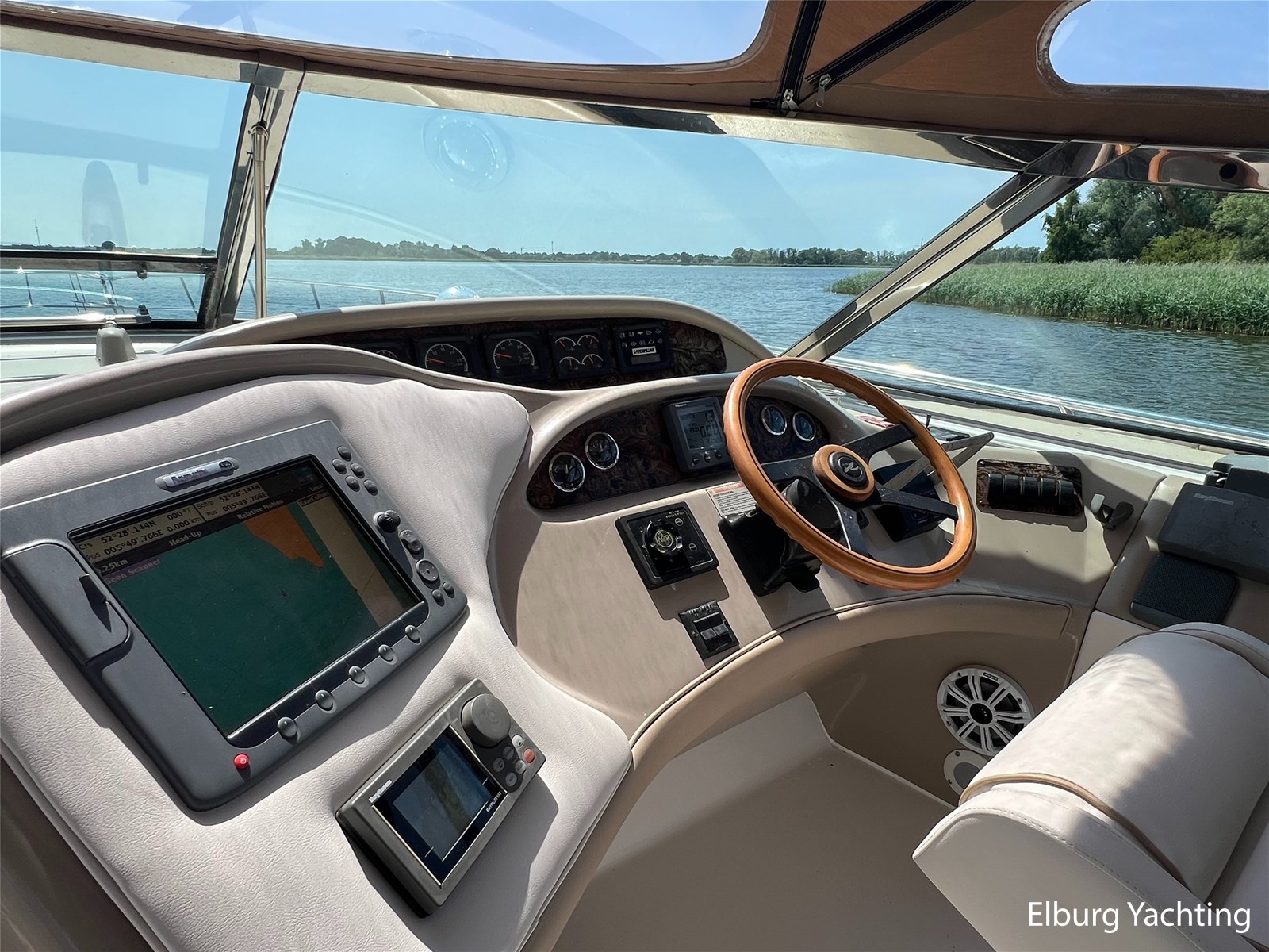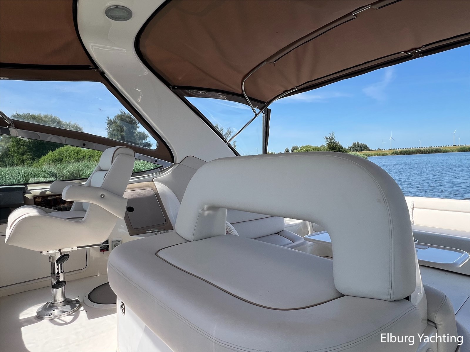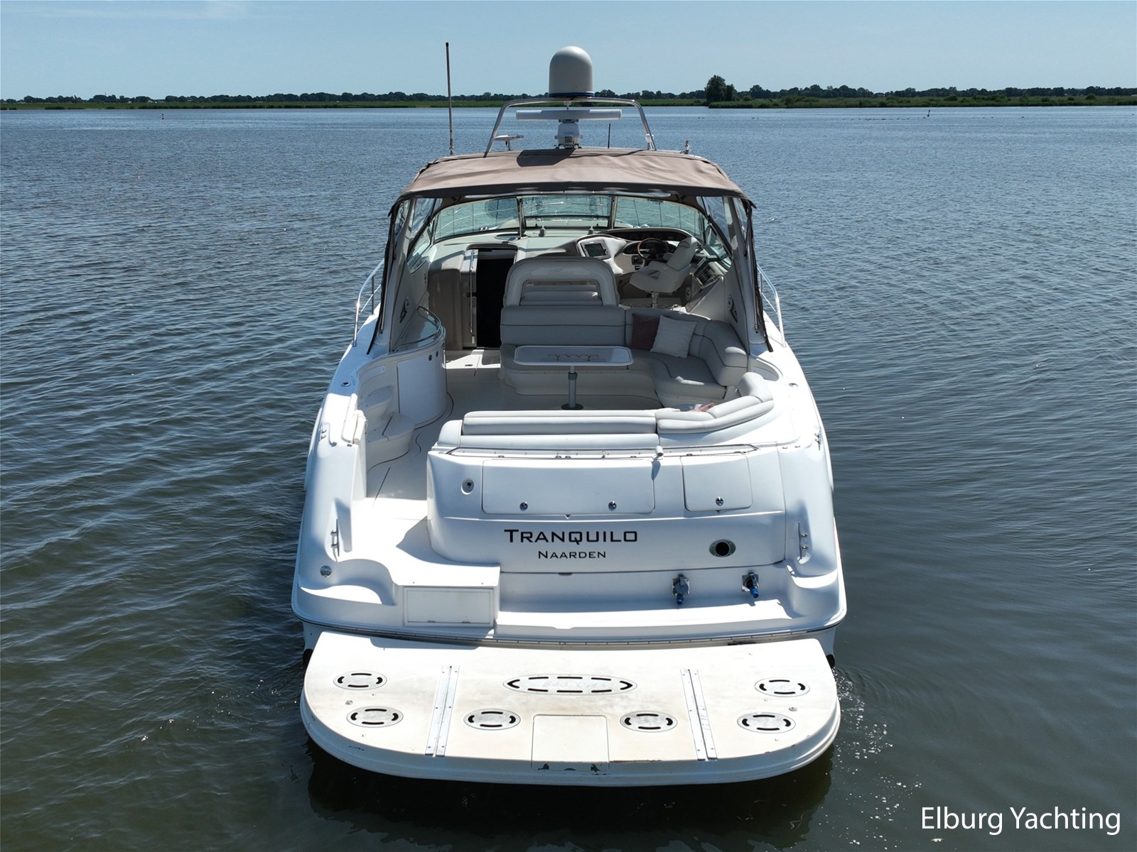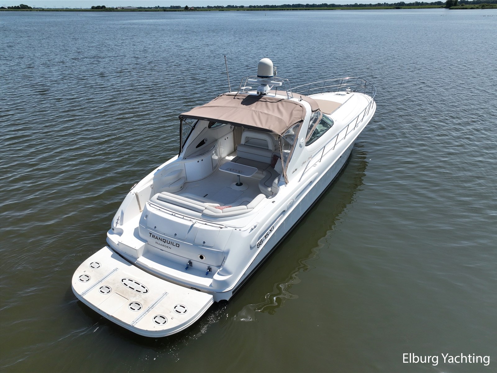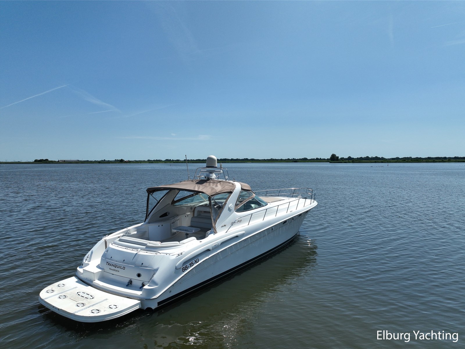 Deze Sea Ray 540 DA is oorspronkelijk ontworpen en gebouwd voor de Europese markt. De ruimte in de open kuip is zowel vanaf de oppervlakte als de hoogte indrukwekkend. Via het hydraulisch zwemplatform stap je in de ruime open kuip waar een ook grote groep mensen comfortabel kan zitten. De wetbar biedt een koelkast met spoelbak. De verhoogde stuurstand biedt plaats voor de kapitein en twee opvarenden. De stuurstand biedt hoog en goed zicht rondom. Benedendeks is er een zeer ruimte salon met aangesloten kombuis gesitueerd. Midscheeps bevindt zich de eigenaarshut met een vrij omloopbaar 2-persoons bed inclusief eigen sanitair en-suite. In het voorschip bevindt zich de gastenhut met eveneens een 2-persoons bed. De tweede badkamer in het voorschip kan ook door daggasten worden gebruikt. Deze Sea Ray 540 is uitgerust met: volledige tent over de open kuip, de kuip is afsluitbaar met een deur naar het zwemplatform, losse tafel, groot zonnebed op voordek, r.v.s. fenderhouders, wasmachine in voorhut, machinekamer toegankelijk vanuit open kuip. Volledige kuipten en bekleding van de banken in de kuip vernieuwd in 2022.