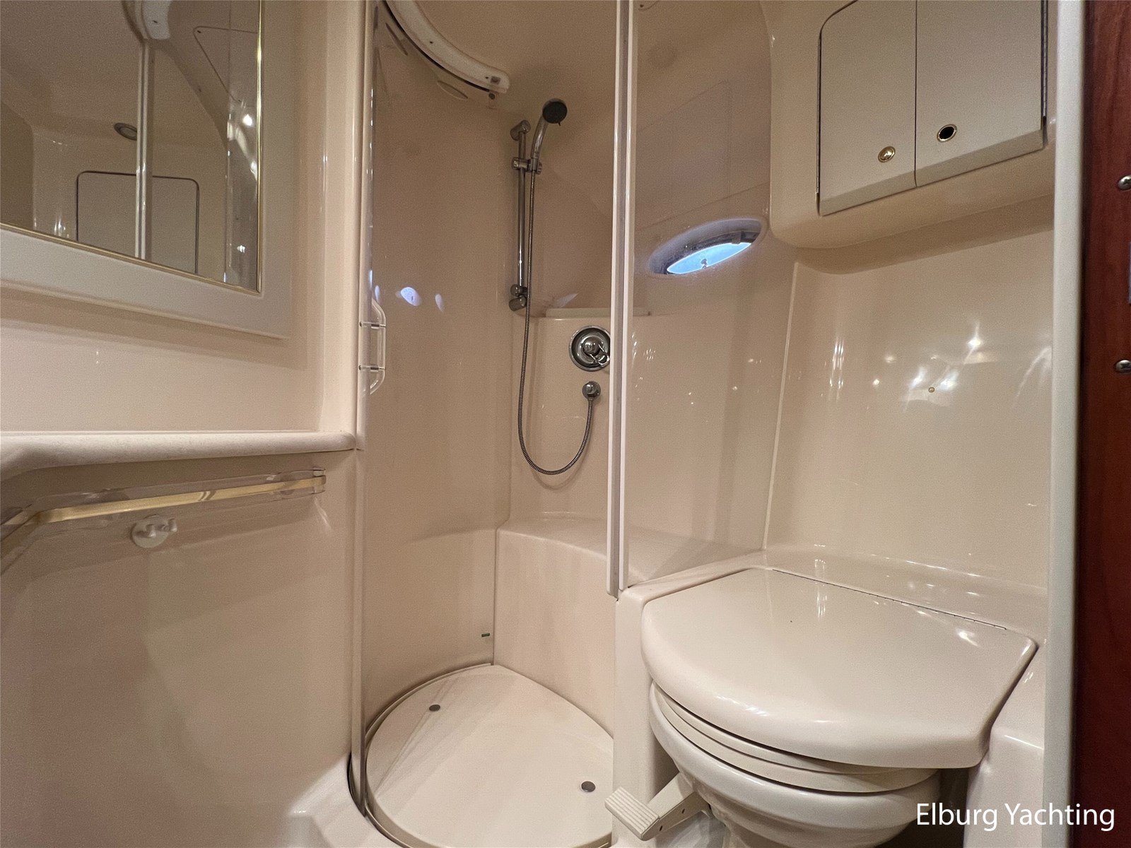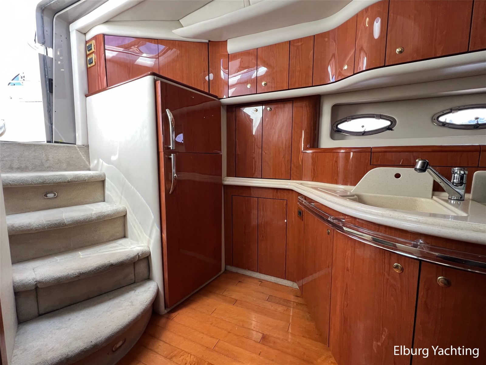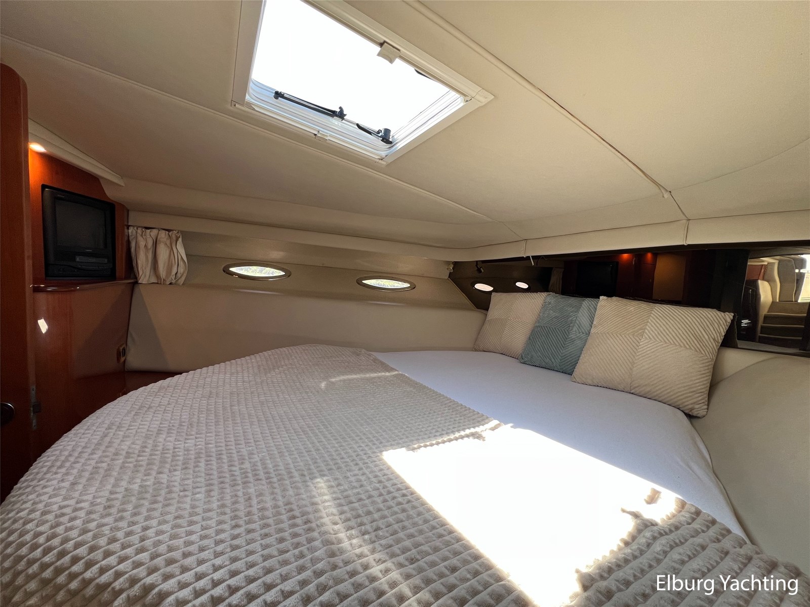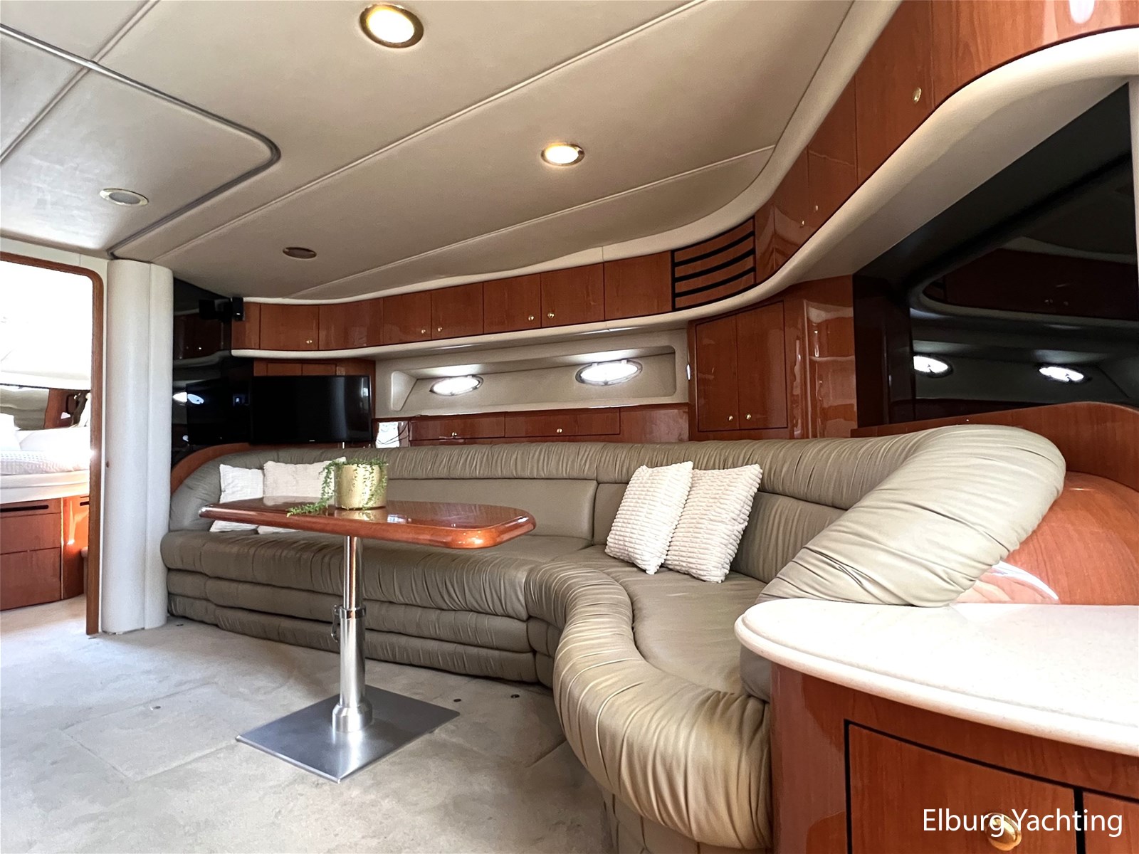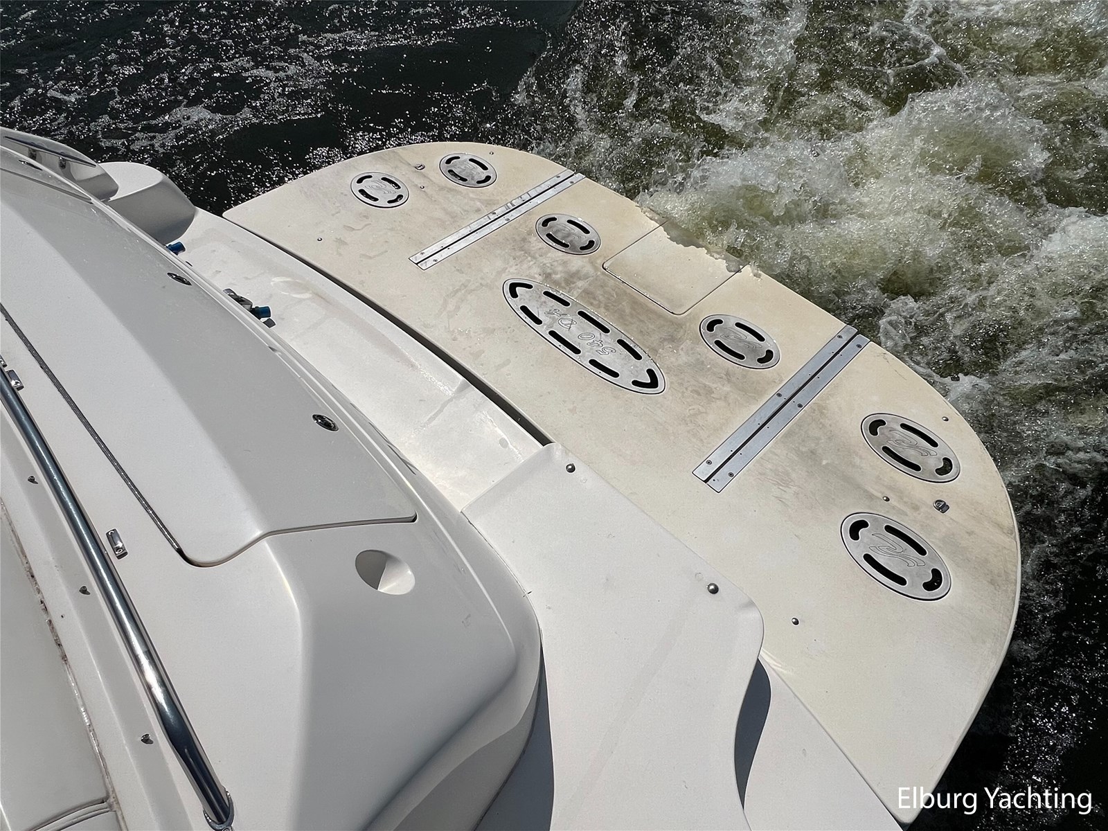 Deze Sea Ray 540 DA is oorspronkelijk ontworpen en gebouwd voor de Europese markt. De ruimte in de open kuip is zowel vanaf de oppervlakte als de hoogte indrukwekkend. Via het hydraulisch zwemplatform stap je in de ruime open kuip waar een ook grote groep mensen comfortabel kan zitten. De wetbar biedt een koelkast met spoelbak. De verhoogde stuurstand biedt plaats voor de kapitein en twee opvarenden. De stuurstand biedt hoog en goed zicht rondom. Benedendeks is er een zeer ruimte salon met aangesloten kombuis gesitueerd. Midscheeps bevindt zich de eigenaarshut met een vrij omloopbaar 2-persoons bed inclusief eigen sanitair en-suite. In het voorschip bevindt zich de gastenhut met eveneens een 2-persoons bed. De tweede badkamer in het voorschip kan ook door daggasten worden gebruikt. Deze Sea Ray 540 is uitgerust met: volledige tent over de open kuip, de kuip is afsluitbaar met een deur naar het zwemplatform, losse tafel, groot zonnebed op voordek, r.v.s. fenderhouders, wasmachine in voorhut, machinekamer toegankelijk vanuit open kuip. Volledige kuipten en bekleding van de banken in de kuip vernieuwd in 2022.