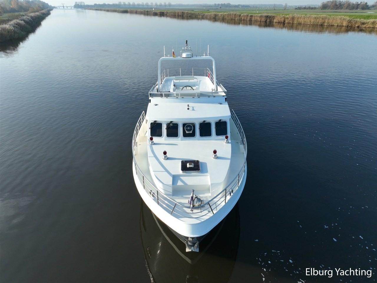 Het jacht kenmerkt zich door het robuuste ‘Trawler’ uiterlijk dat tot haar eveneens tot een breed inzetbaar jacht maakt. De dubbele John Deere motoren in combinatie met de DMS stabilisatoren zorgen voor een fijne vaarbeleving ook op de grotere watern. De doorvaarthoogte met de mast én de ramen op de flybridge naar beneden is ca. 3.45 meter waardoor de Franse kanalen bevaren kunnen worden.