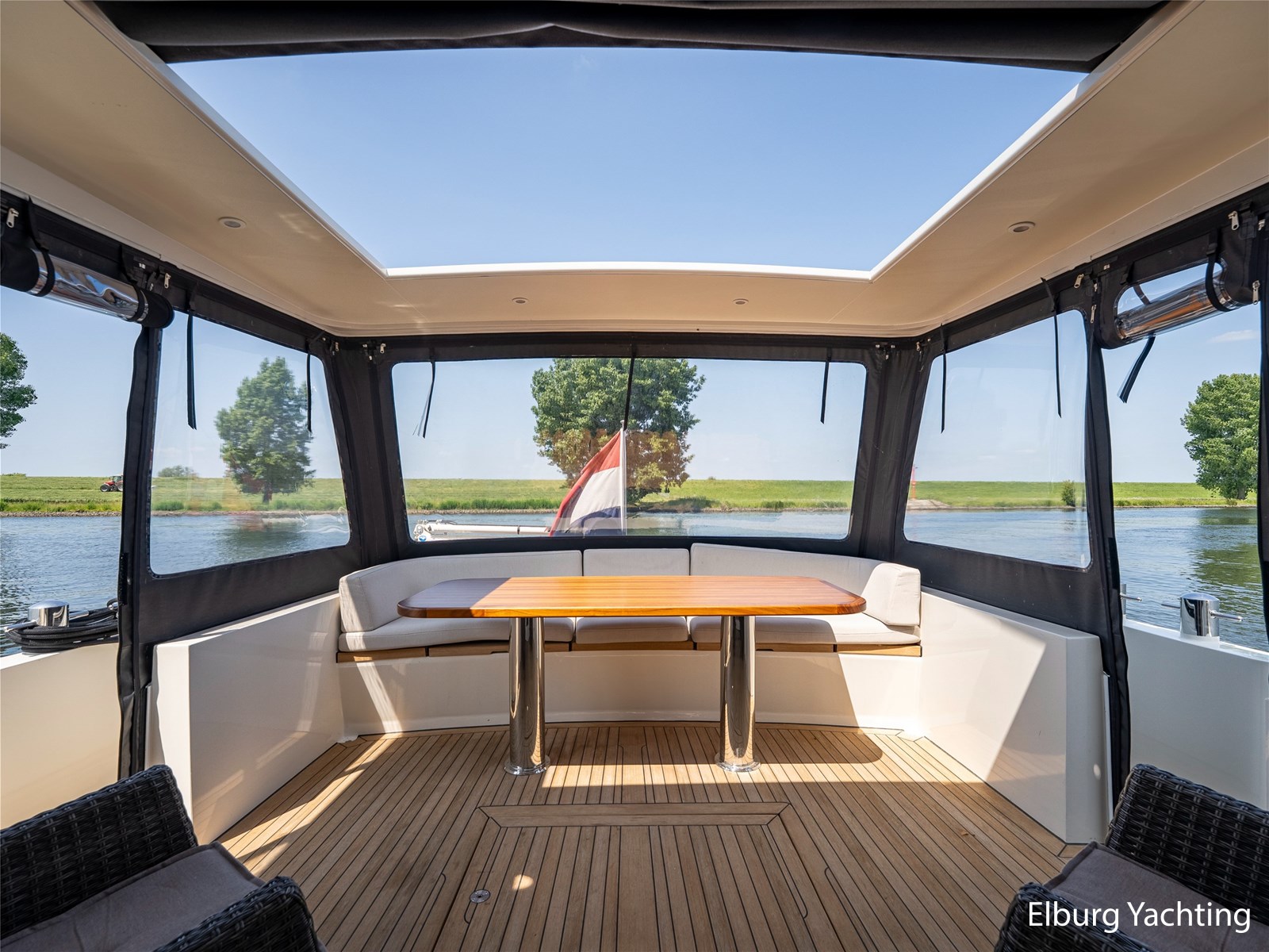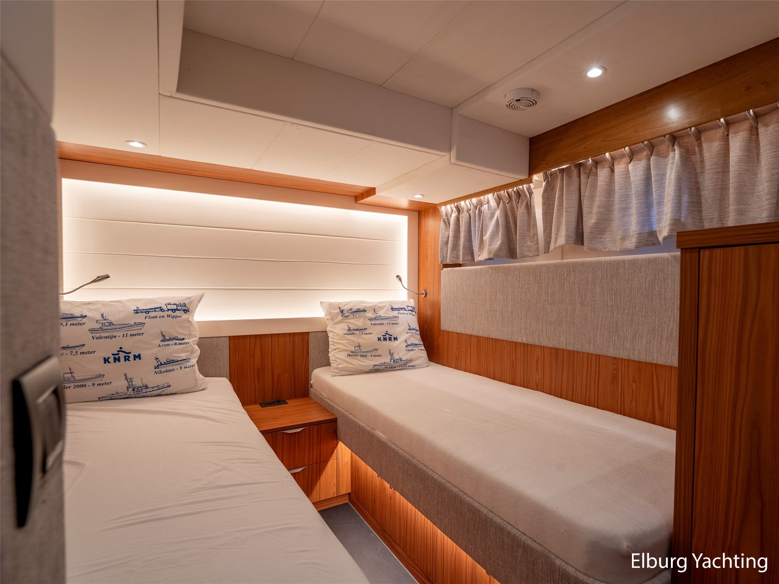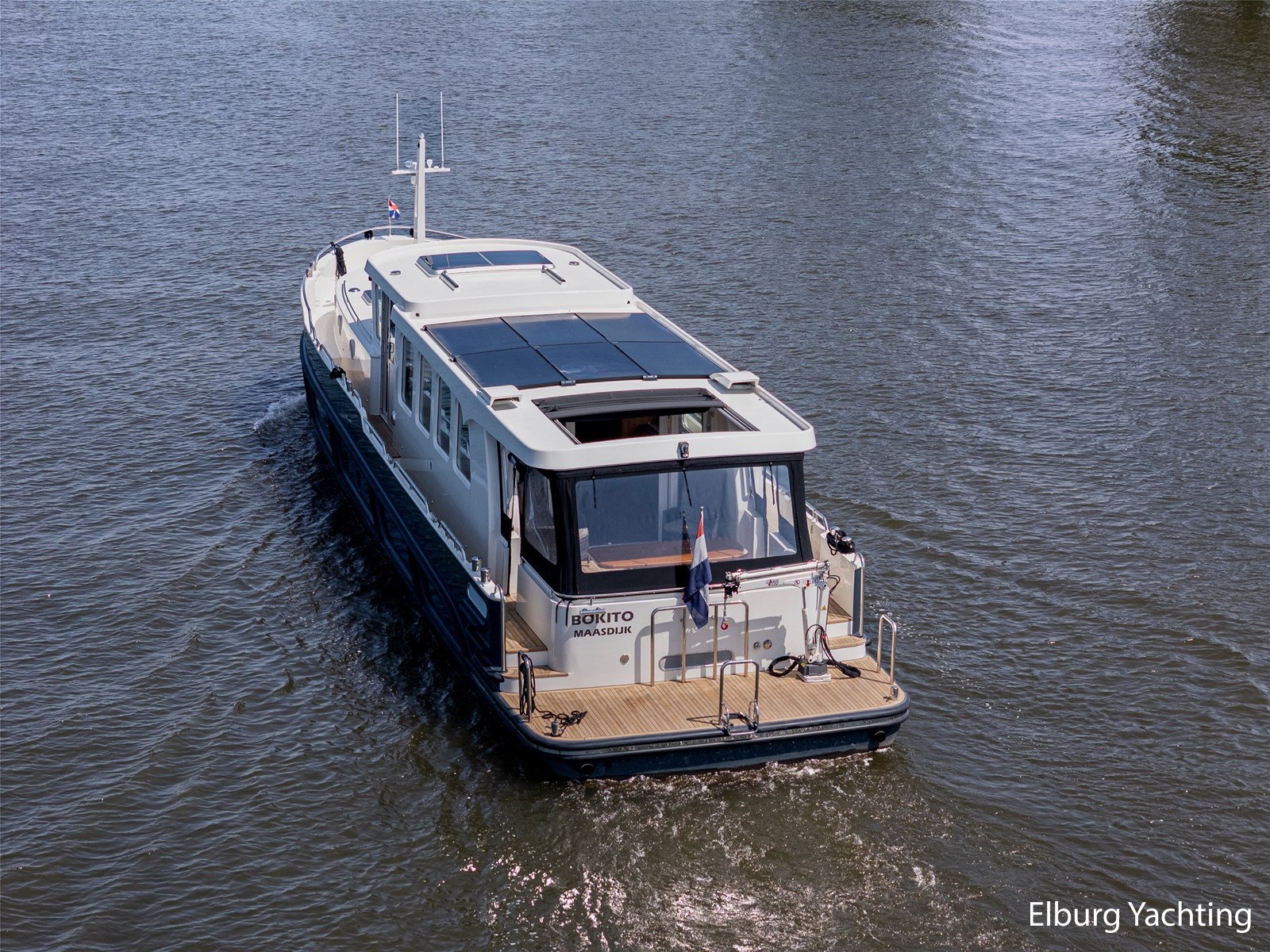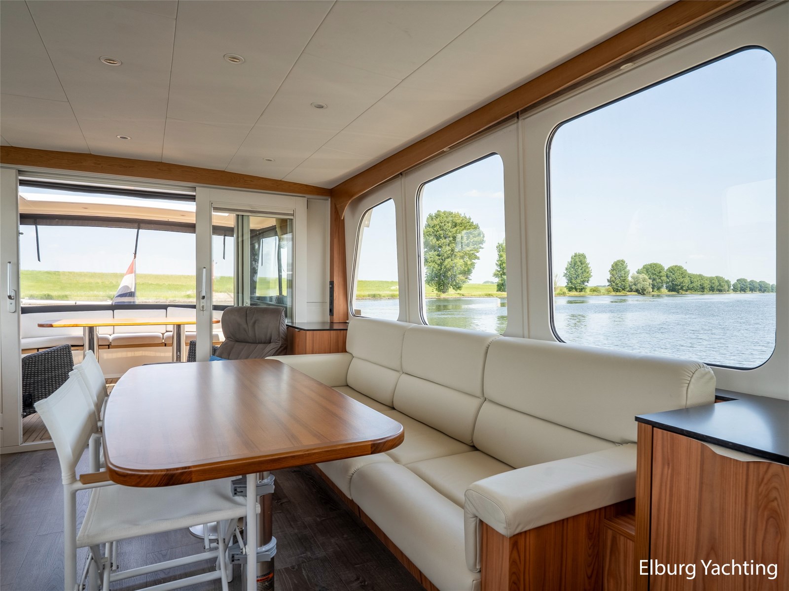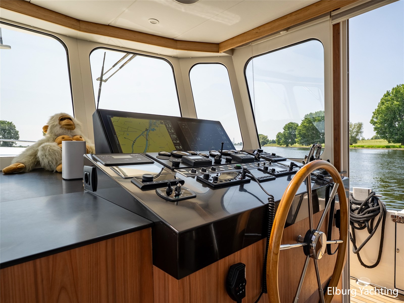 Aan boord bevinden zich drie volwaardige hutten met slaapruimte voor zes personen, uitgevoerd met hoogwaardige materialen en voorzien van vloerverwarming, airconditioning en een elektrisch bedienbaar Webasto schuifdak. Het royale interieur straalt rust en luxe uit en biedt alle voorzieningen voor een aangenaam verblijf, zowel tijdens korte tochten als langere reizen. Voor de aandrijving zorgen twee krachtige John Deere-motoren, ondersteund door zonnepanelen, een boeg- en hekschroef en een geavanceerd navigatiesysteem. Deze uitrusting garandeert moeiteloos manoeuvreren en een veilige, comfortabele vaarervaring.