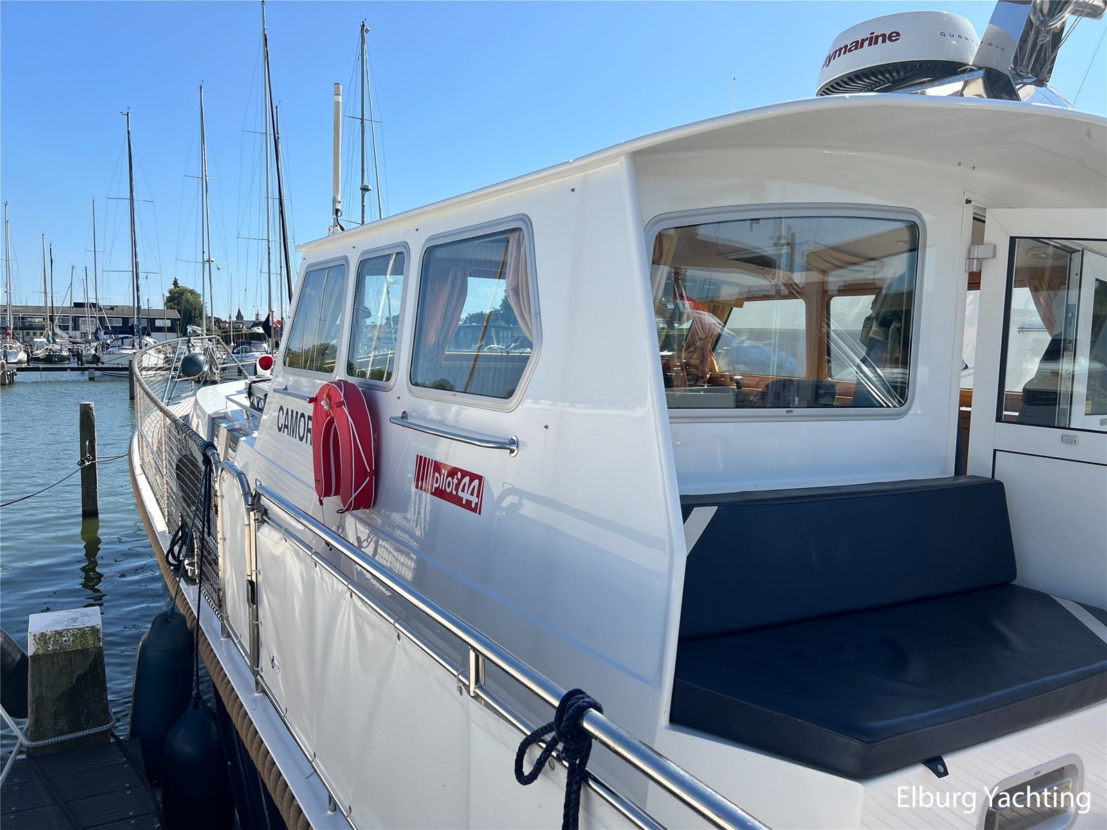 Deze complete Pilot 44 verkeert in een vaarklare staat en is voorzien van vele mooie extra's. Het grote open achterdek beschikt over een stuurstand met zicht naar voren. Voor het stuurhuis bevindt zich nog een bankje met vrij zicht naar voren. Met minder weer kan er in het stuurhuis worden gestuurd waarbij alle gasten en schipper bij elkaar zitten. Het stuurhuis beschikt over dubbel glas met centrale verwarming wat in combinatie met de Rockwool geïsoleerde romp zorgt voor een aangename temperatuur. Verder is de Camorta voorzien van o.a: 2 x Raymarine plotters 2018, Radar 2018, Raymarine Log/Diepte/Roerstand/Wind 2018, nieuwe kabelaring 2018, romp geschilderd in 2 componenten 2018, opbouw geschilderd in 2 componenten 2018, vuilwatertank en dieseltank schoongemaakt en opnieuw gecoat 2018, demontabele davits, grote berging van 3,5m3 in achterdek, horren voor alle ramen en luiken, twee bedden in de gastenhut kunnen door middel van een vulstuk tot een tweepersoons bed gemaakt worden, zeildoekblindering rond de ramen, r.v.s. schroefas, stuwdruklager, dubbele brandstoffilters, dubbele wierpotten, 5 blads schroef, r.v.s. fenderhouders, relingnet rond gehele schip, beide bedden in de gastenhut d.m.v. een vulstuk te verbinden tot een 2-persoons bed, dekwaspomp, generator start in keuken. 6 r.v.s. bolders, reserve onderdelen voor Cummins en Whisper, trossensnijder.