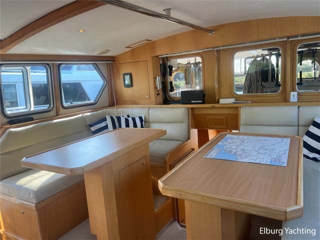 Deze unieke Pilot 42 wordt aangeboden door haar eerste eigenaar. De eigenaar heeft zorg gedragen voor de staat van het schip door haar door de jaren heen continu te verbeteren en te onderhouden. Het schip kenmerkt zich door haar unieke indeling waarbij men buiten en binnen kan sturen. Via de salon loop je via de zijdeur het gangboord in om eenvoudig aan te leggen. Het achterschip is ruim opgezet met veel zit en opbergmogelijkheden. Het achterdek is volledig overdekt door een aluminium vast dak wat demontabel is. De hut achterin heeft een eigen ingang + eigen sanitair. Met haar 2 x 260 pk heeft het schip een groot bereik waarbij ze zowel langzaam als snelvarend goed tot haar recht komt. Eenmaal aangekomen maakt de afstandsbediening van Yachtcontrol het aanmeren eenvoudig. Deze Pilot wordt verder geleverd met o.a: romp geschilderd 2020, onderwaterschip gestraald en opnieuw opgebouwd in 2020, dek geschilderd 2023, Raymarine plotter 2023, Raymarine Ray marifoon 2023, nieuwe schroeven 2022, Munters MG luchtontvochtiger met hygrostaat welke het gehele schip van droge lucht voorziet, dubbele r.v.s. reling, dubbele r.v.s. bolders, bimini over stuurstand, r.v.s. fenderhouders, r.v.s handrails, klapbare radarmast, zeewaardig beschutte kuip, Tack Ticks windset, 1000 Watt zoeklicht, manueel te installeren loopplank, geïsoleerde romp, lamellen, trimflappen.