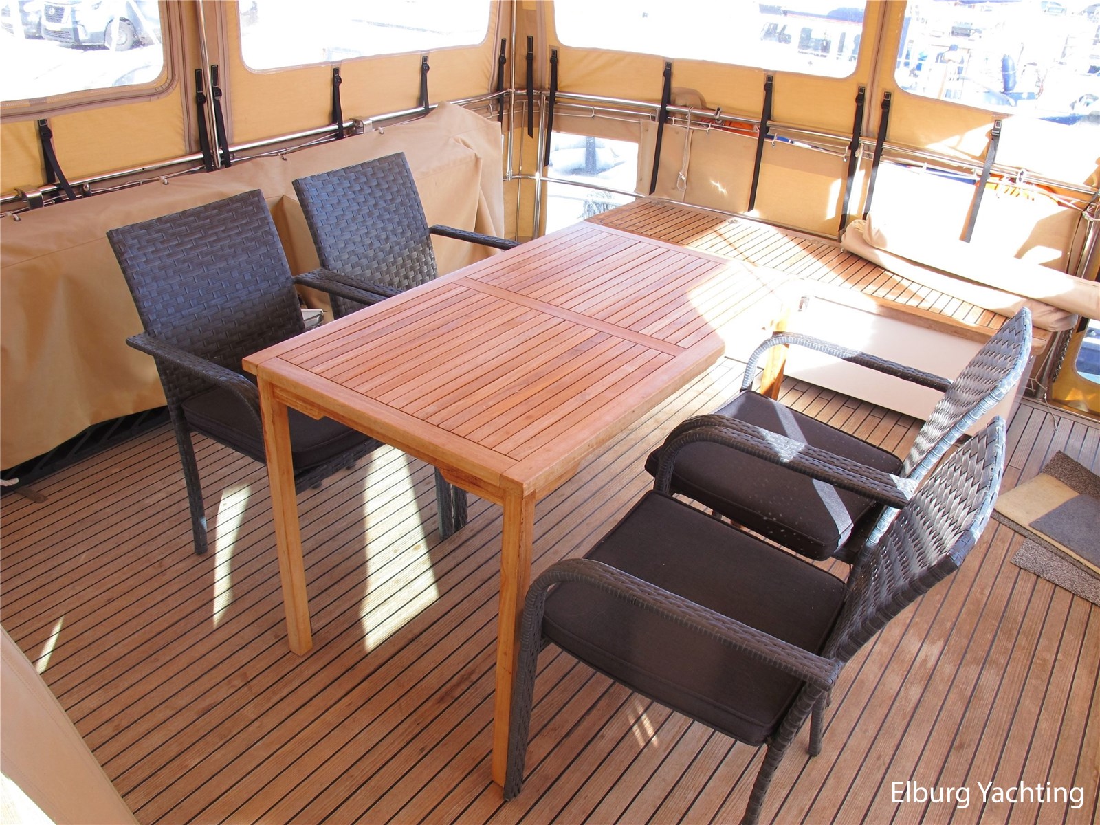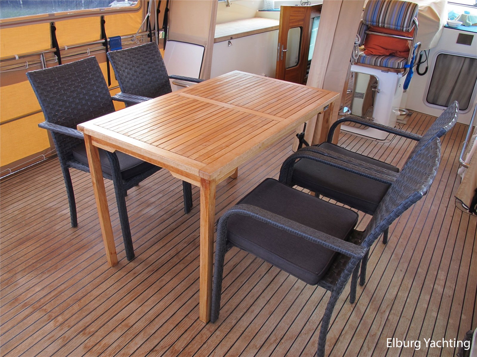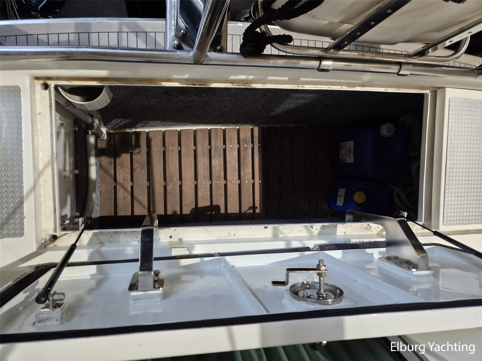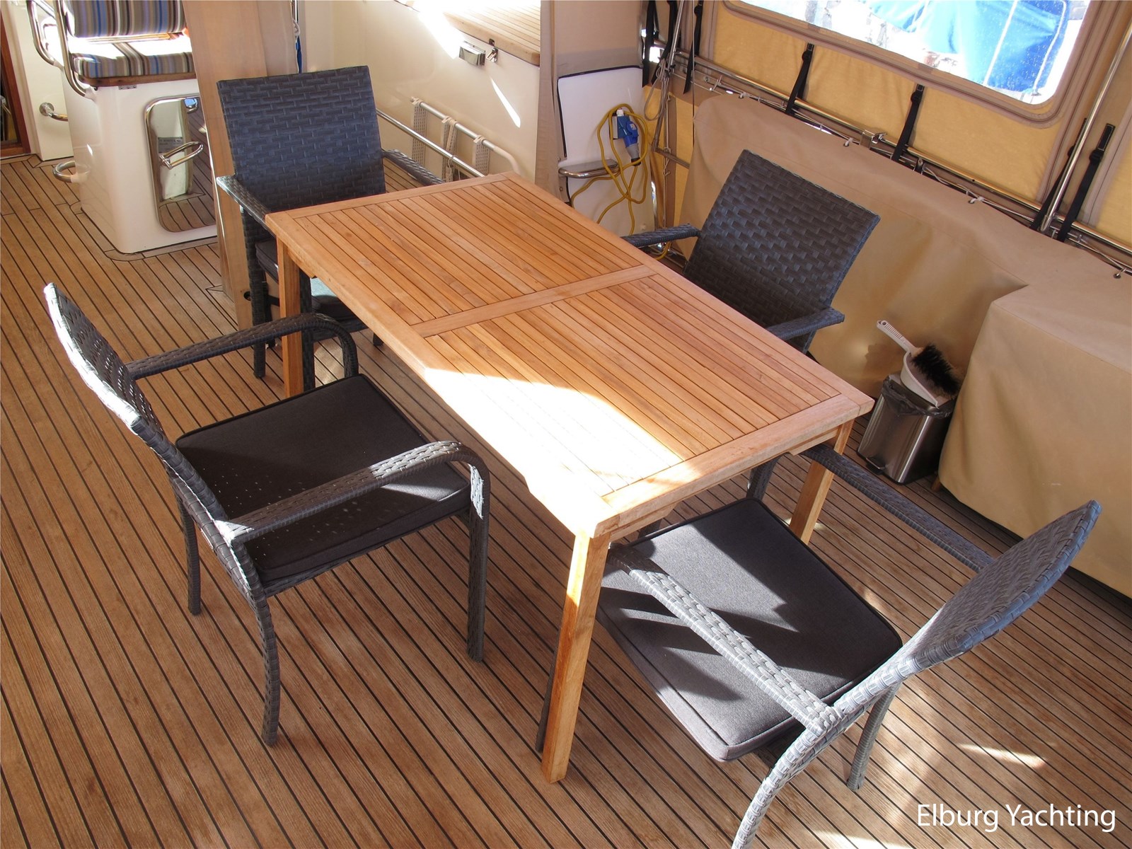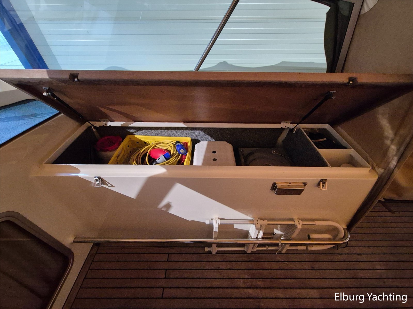 - Belegd met teak + klapbare zwemtrap