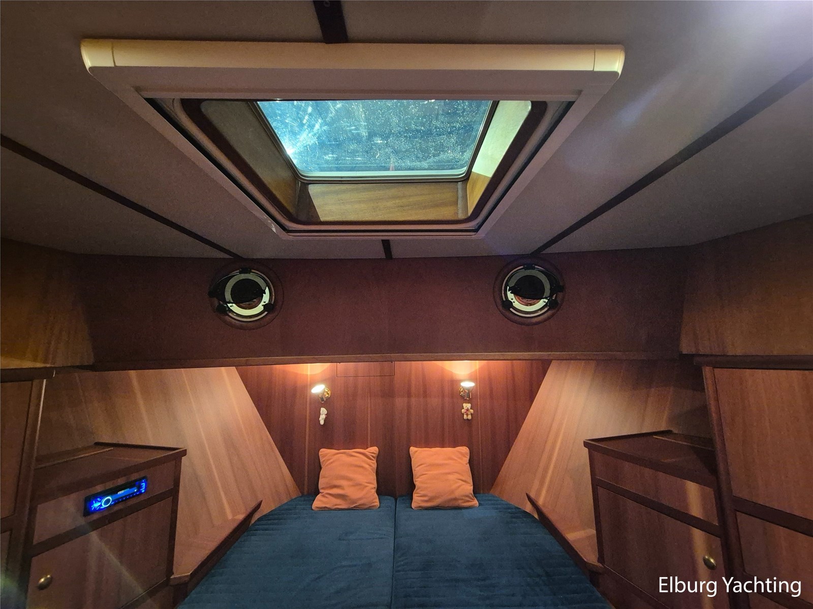 De tafel in de dinette kan zakken en met op maat gemaakte kussens omgebouwd worden naar een dubbel bed, af te schermen met een gordijn. Vrij uitzicht vanuit de dinette en kombuis naar buiten, geisoleerde vloeren, dubbele stootranden (en daardoor schuren er geen fenders tegen de scheepshuid) dubbel filtersysteem voor diesel en koelwater, koelwater aanzuig omschakelbaar.