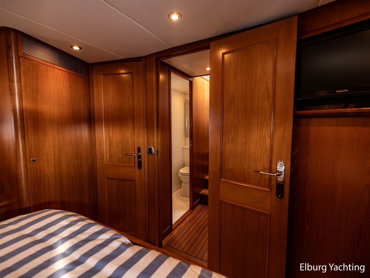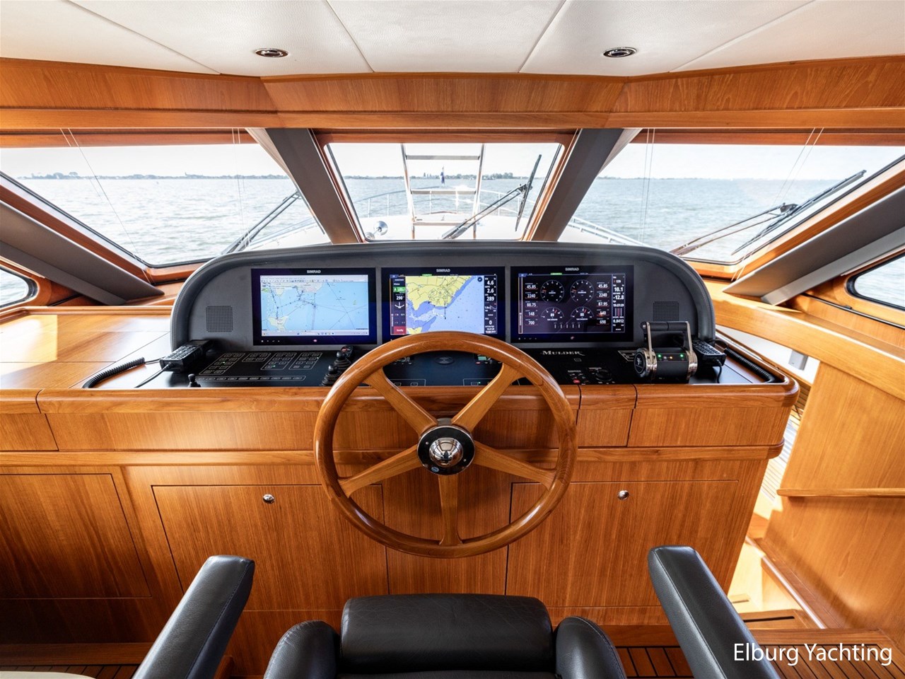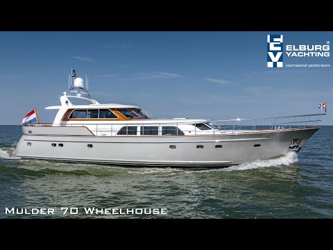 De Mulder 70 Wheelhouse is een ruim en comfortabel gebouwd motorjacht welke is gebouwd door de topindustrie van de Nederlandse jachtbouw. Elegant en klassiek/modern gelijnd jacht met een zeer hoogwaardig afwerkingsniveau. Mulder 70 Wheelhouse is uitermate geschikt voor lange tochten voor binnen- en buitenwateren. Het jacht is in 2022-2023 gerefit waarbij de volgende werkzaamheden zijn uitgevoerd: Romp gespoten in Awlgrip moonglow silver metallic, opbouw geschilderd in Awlgrip, navigatie apparatuur vernieuwd voor het merk Simrad, Victron omvormer acculader vernieuwd, nieuwe accuset, dashboard volledig opnieuw ingericht, garage van binnen geschilderd, elektrisch bedienbare plissé gordijnen in stuurhuis, houten jaloezieën in salon geplaatst, teakdek deels gerubberd en geschuurd, 2 x r.v.s. ankers + kettingen geplaatst, Hydronautica motorbediening en afstandsbediening, nieuwe zonnescherm over achterdek met wegneembare carbon palen, nieuwe Neptune matras, lakwerk interieur. Verder is deze Mulder 70 Wheelhouse voorzien van: Geïntegreerde kuipbank op het achterdek met bijbehorende kussens en afdekhoes, gelakte teaktafel met afdekhoes, 4 x klapbare deuren naar stuurhuis, ruime garage in achterschip voor bijboot (niet inbegrepen) en materialen/gereedschappen, afneembare zijtrap, Opacmare gangway, dekwaspomp, 5-blads schroeven, groot schuifdak in stuurhuis, TV in salon/stuurhuis/hutten, Böse audio installatie, Siemens vaatwasser, groot bergluik in keuken voor opslag voorraad en locatie van de vriezer, muggenhorren en r.v.s. blinds voor patrijspoorten, Utility room aan SB-zijde in achterschip met Miele wasmachine en Miele droger tevens doorgang naar machinekamer, afneembare zonneschermen rondom stuurhuis, kussens op voordek ten behoeve van zonnebed. Motoronderhoud uitgevoerd in 2023 door PON Caterpillar.