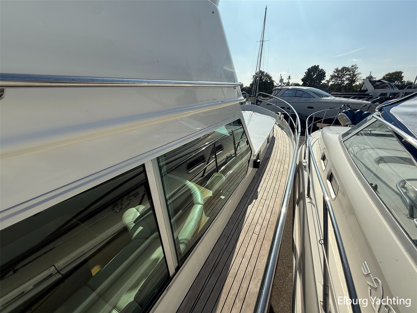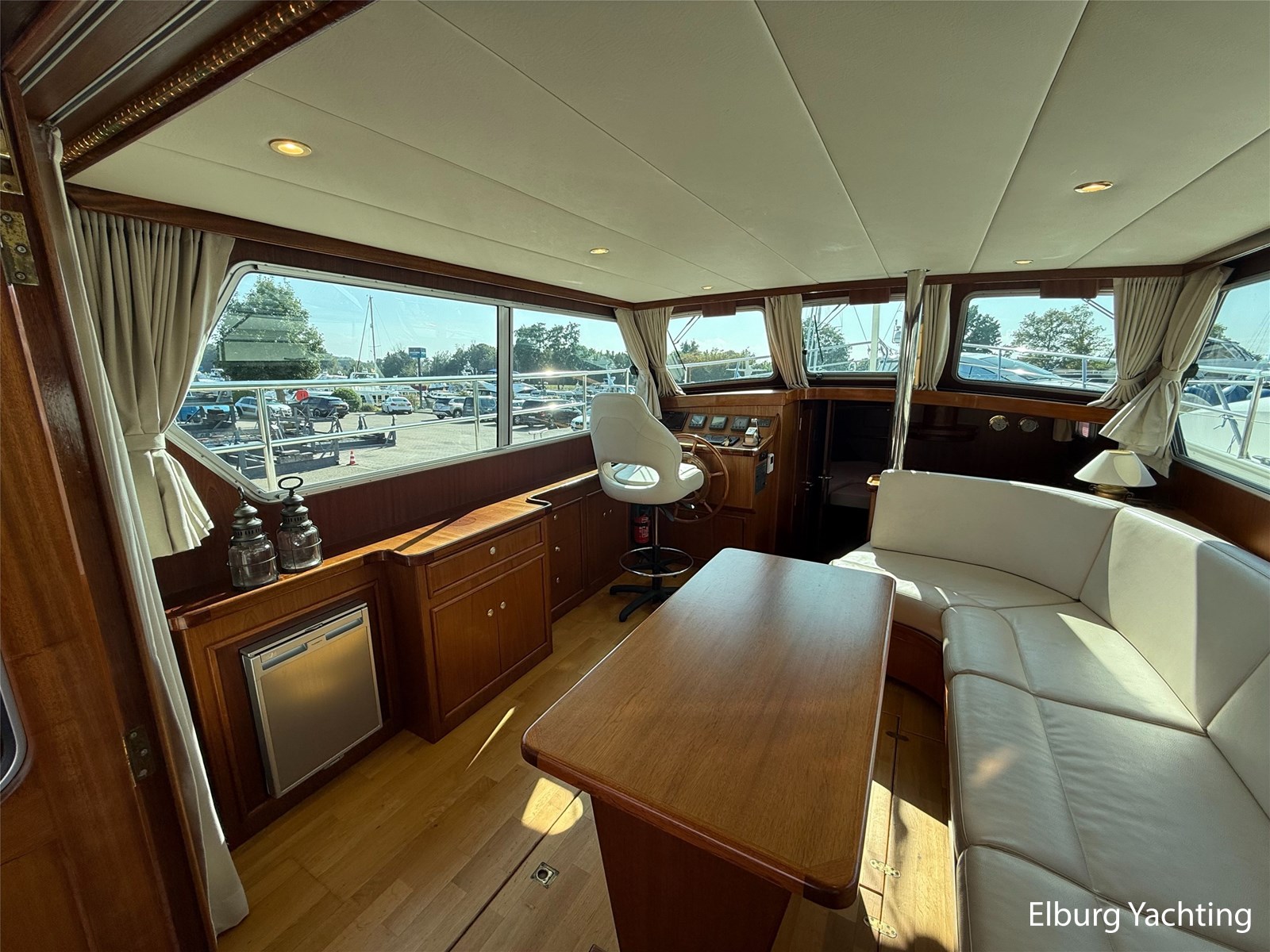 De Pikmeerkruiser 12.50 Exclusive Flybridge is een stijlvol en compleet uitgerust motorjacht met een aantrekkelijke indeling en praktische vaareigenschappen. Het schip beschikt over een royaal zwemplateau met spiegeldeur, dat direct toegang biedt tot de ruime open kuip. Deze kuip is afsluitbaar en dankzij openslaande deuren naadloos verbonden met de salon, waardoor een aangename leefruimte ontstaat. De salon is voorzien van een klassiek scheepsinterieur met mahoniehouten afwerking, een houten vloer en recent geplaatste premium gordijnen. Middels twee trappen naar beneden komt u vanuit de salon in de open kombuis, waar zich tevens de gescheiden douche- en toiletruimte en een slaapvertrek in het voorschip bevinden. De voorhut is uitgerust met een V-bed, dat eenvoudig omgebouwd kan worden tot een groot tweepersoonsbed. De voortstuwing wordt verzorgd door een 159 pk sterke Vetus Deutz DT-64 6-cilinder dieselmotor. Technisch is het jacht uitgerust met een natte uitlaat, watergesmeerde schroefas (diameter 45 mm), een gesloten koelsysteem, twee roerstandaanwijzers en dubbele elektronische motorbediening. Zowel het motoronderhoud als het onderhoud aan de generator zijn uitgevoerd in 2025. Daarnaast is antifouling aangebracht in 2024. Het jacht beschikt over twee stuurstanden (binnen en op de flybridge), een aluminium klapbare mast en comfortverhogende uitrusting zoals airconditioning, centrale verwarming, een wasmachine, een generator en drie ruitenwissers. De machinekamer is bereikbaar via geïsoleerde vloerluiken in de salon. Aan dek zijn diverse RVS-details toegepast, waaronder een dubbele RVS-reling en een RVS-handrail langs de opbouw, wat zorgt voor een veilige loop rond het gangboord. Het met teak belegd zwemplateau en flybridge draagt bij aan het luxe karakter van dit schip. De flybridge is verder voorzien van een bimini. Met een doorvaarthoogte van circa 3,20 meter, een kruissnelheid van circa 10–12 km/u en een maximumsnelheid van circa 18 km/u is dit motorjacht geschikt voor uiteenlopende vaargebieden, zowel op binnenwateren als voor langere tochten.