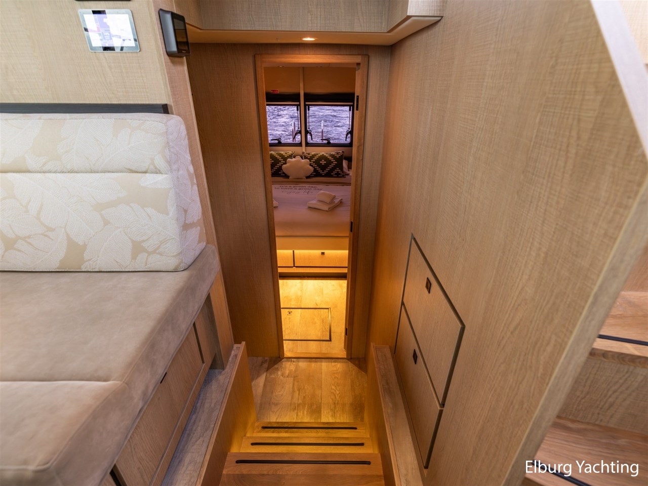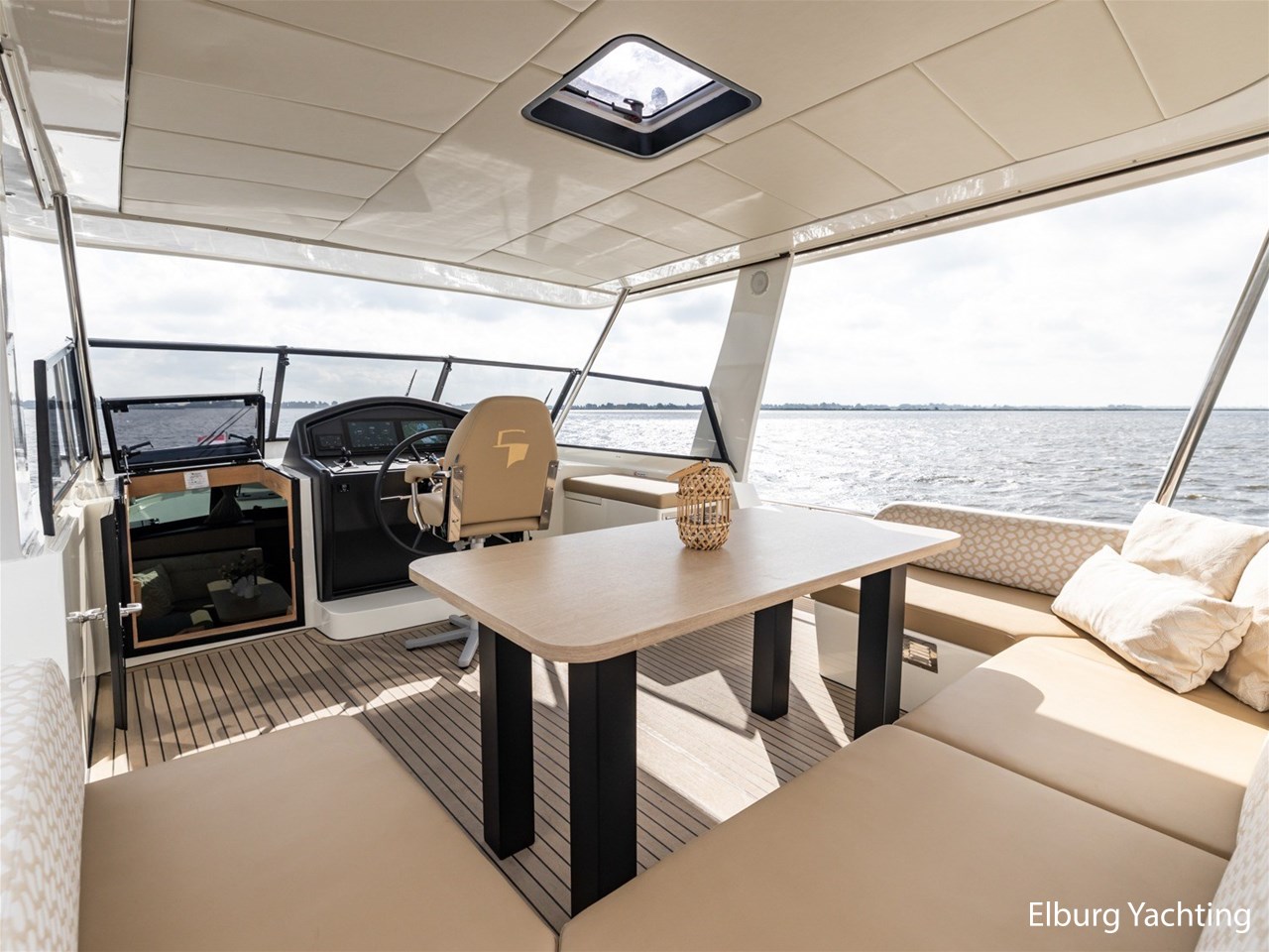 - Geïntegreerd in casco, met draaitrappen naar achterdek