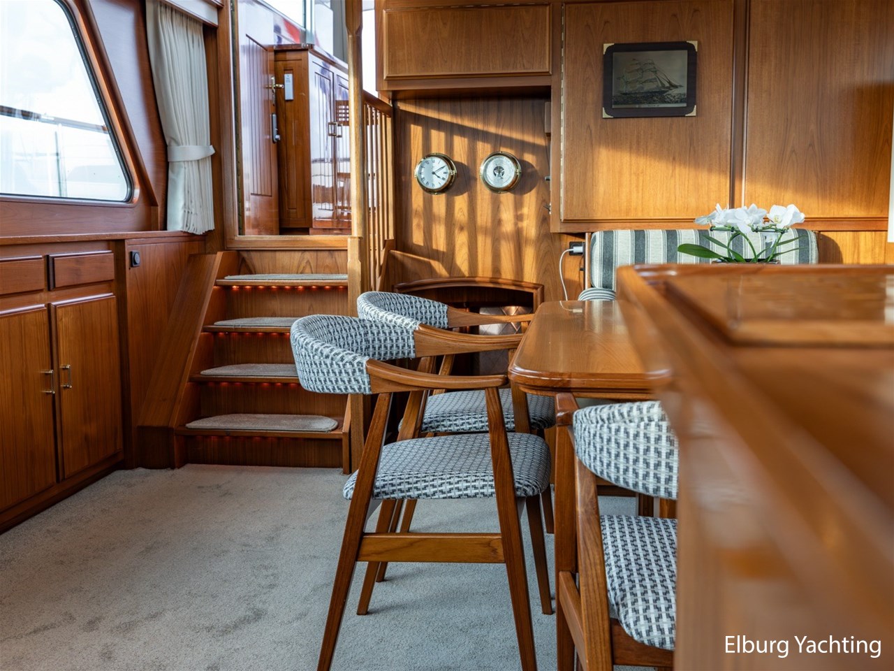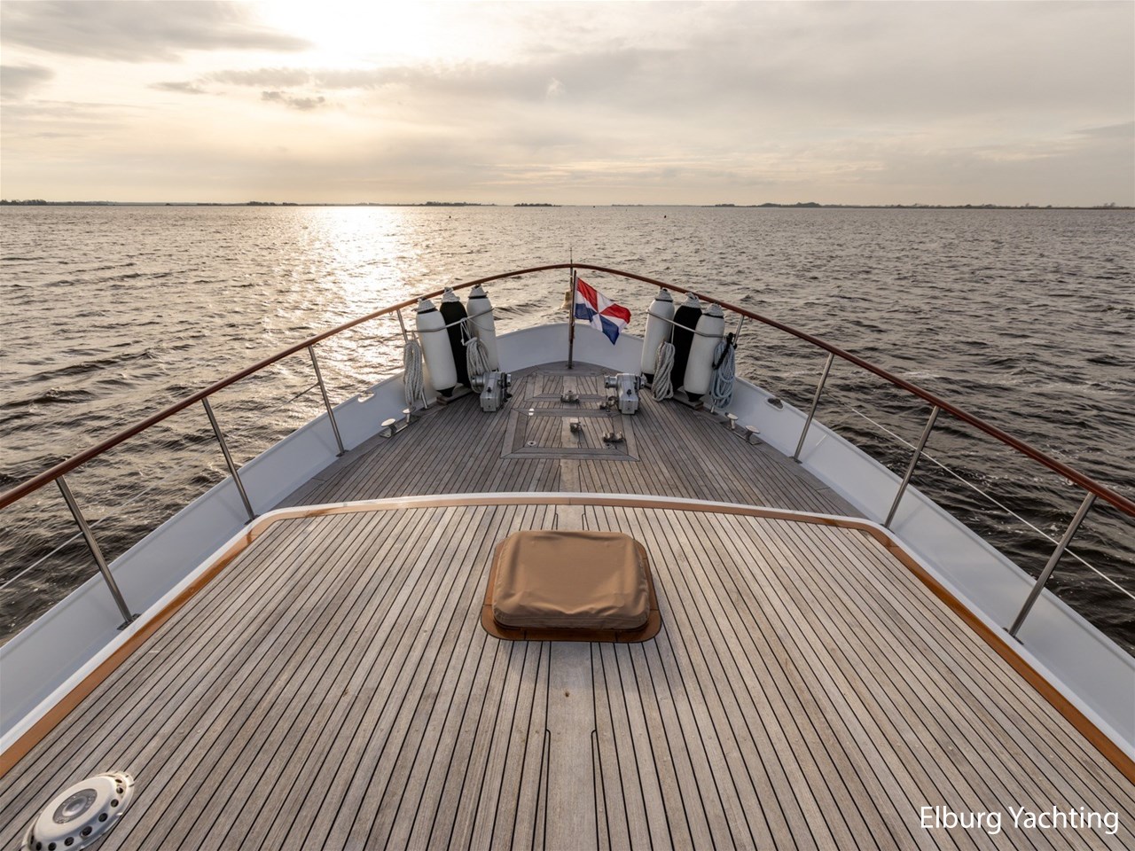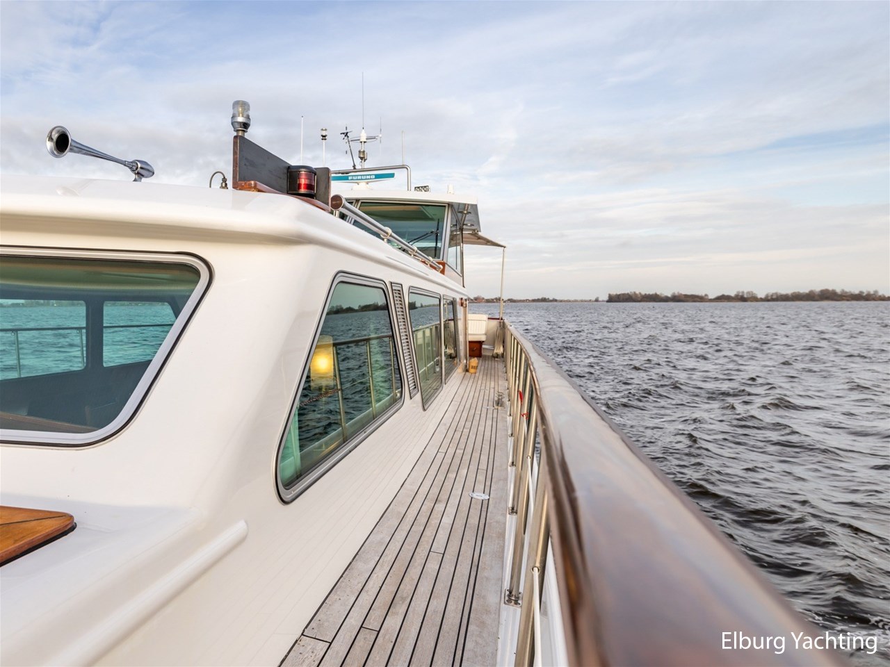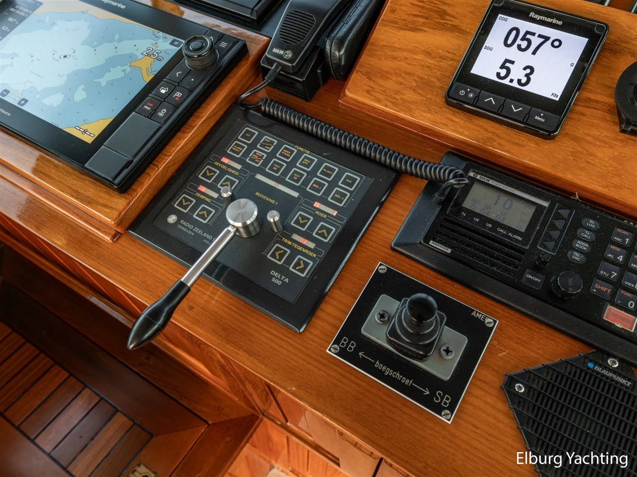 Het jacht beschikt over TwinDisc elektrisch koppeling + trolling, Power Comander, RVS zijtrap, 4 zij-ingang in de reling, vaste bank op achtertdek, RVS handgelijders, Mastervolt Power System Control Panel, Victrol Digital Multi Control, Teakhouten reling met RVS septers, mughorren, mughorren voor alle patrijspoorten, veel kastruimte, alle kasten met verlichting, Siemens vaatwasmachine, marmeren topbladen (keuken graniet), luxe eigenaarshut met 4 x patrijspoort, 2 x PTO pomp, radio Zeeland bochtaanwijzer + windsnelheid + windhoek, 3 x 2-armige ruitenwissers, Biminitop over achterdek, veel bergruimte buiten, 8 x rvs bolders, 2 x camerasysteem, RVS stootstrip rondom, hoge machinekamer inlaat, kruiphoogte ca. 4.10 m, stuurstoel + meevaarbank, nieuwe stoffering in 2023, ledverlichting, mughorren, magnetische screens buitenzijde, stroom monitor systeem om de telefoon, AEG 9 kilo nieuwe was/droogmachine, hydraulische besturing, trollingsysteem = 2 á 3 knopen varen, kruissnelheid ca. 8 knopen. gouden kleppendeksel.
