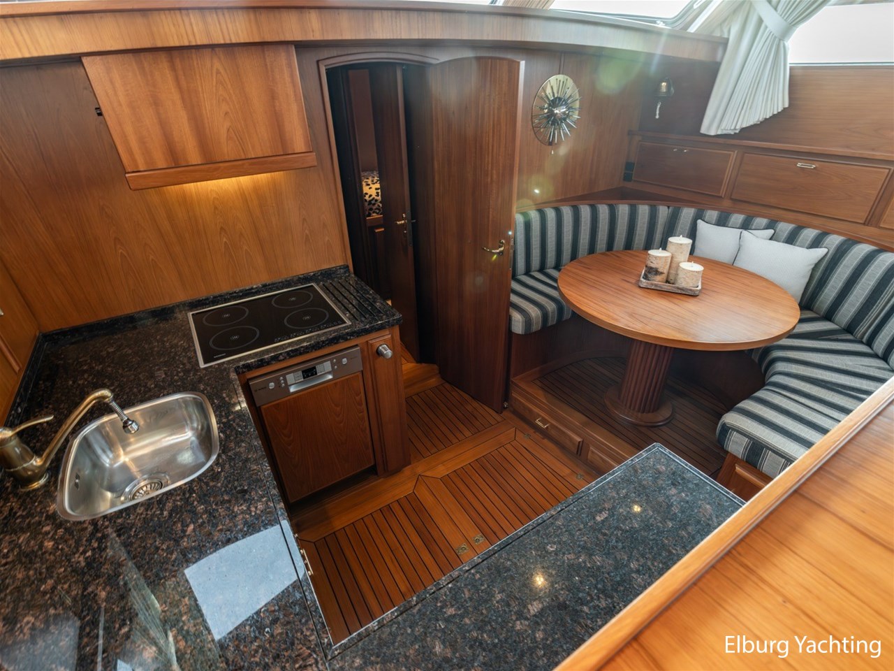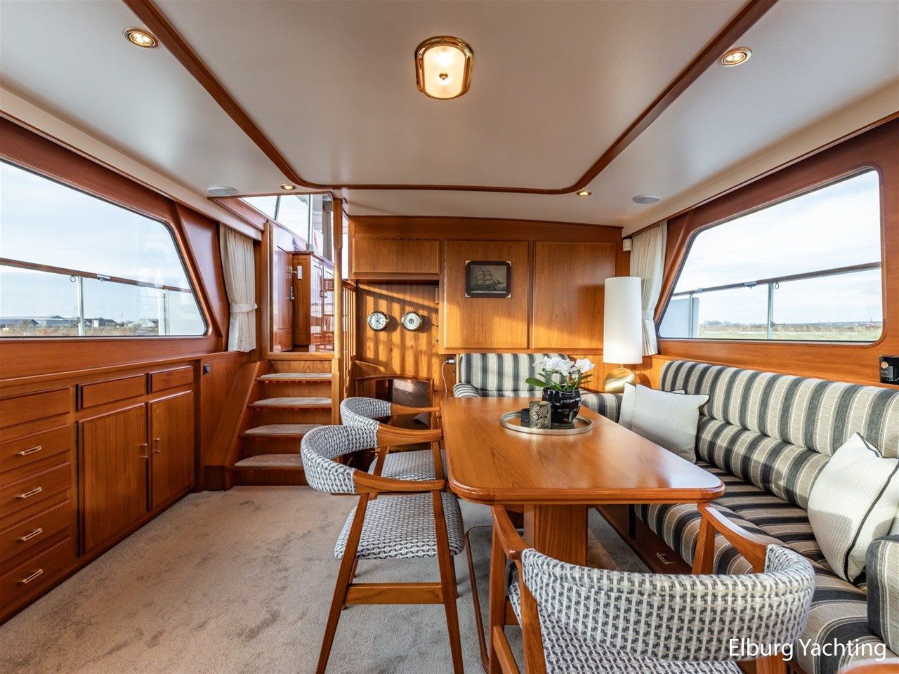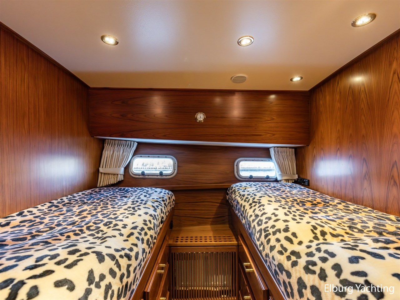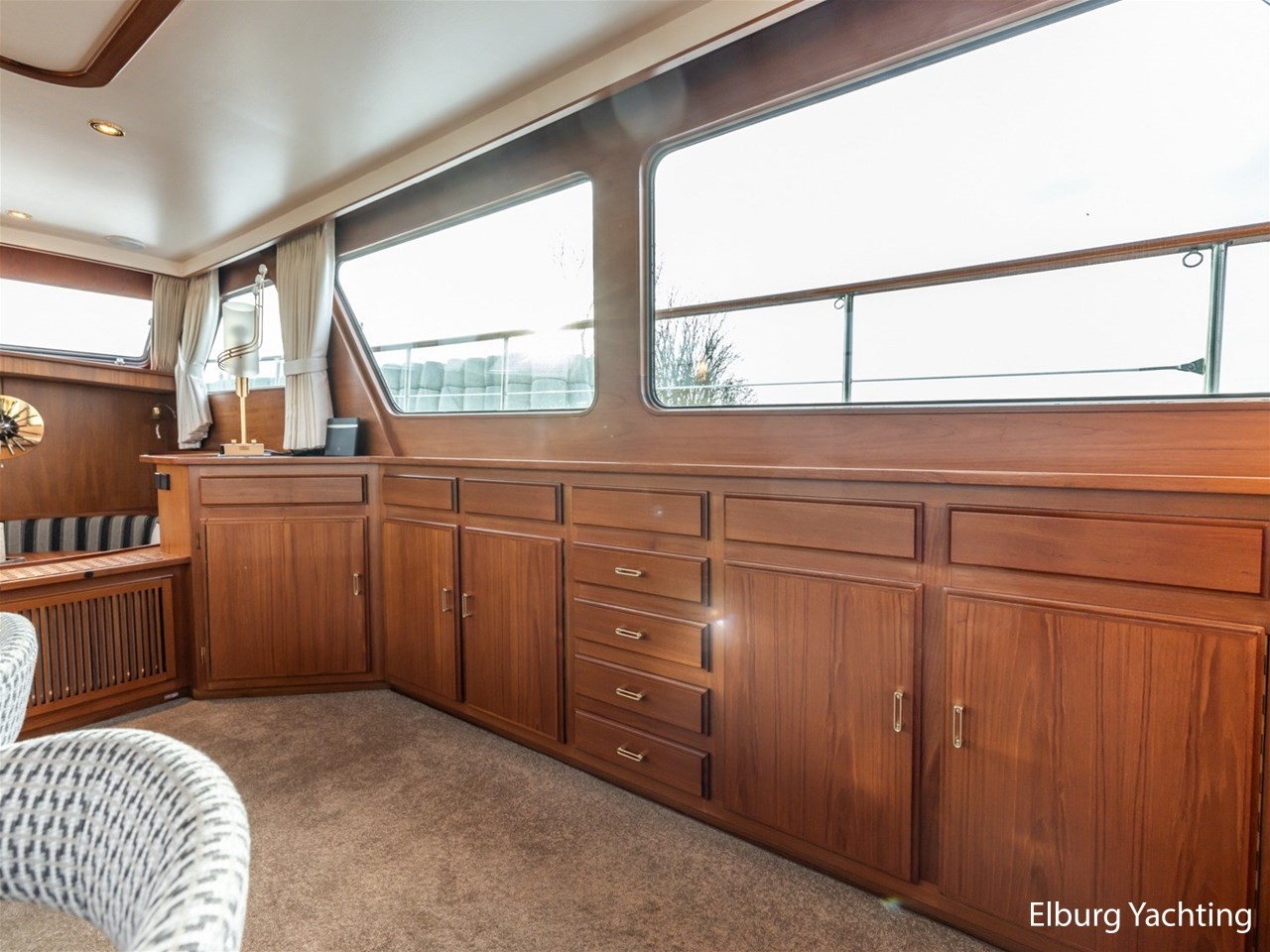 Het jacht beschikt over TwinDisc elektrisch koppeling + trolling, Power Comander, RVS zijtrap, 4 zij-ingang in de reling, vaste bank op achtertdek, RVS handgelijders, Mastervolt Power System Control Panel, Victrol Digital Multi Control, Teakhouten reling met RVS septers, mughorren, mughorren voor alle patrijspoorten, veel kastruimte, alle kasten met verlichting, Siemens vaatwasmachine, marmeren topbladen (keuken graniet), luxe eigenaarshut met 4 x patrijspoort, 2 x PTO pomp, radio Zeeland bochtaanwijzer + windsnelheid + windhoek, 3 x 2-armige ruitenwissers, Biminitop over achterdek, veel bergruimte buiten, 8 x rvs bolders, 2 x camerasysteem, RVS stootstrip rondom, hoge machinekamer inlaat, kruiphoogte ca. 4.10 m, stuurstoel + meevaarbank, nieuwe stoffering in 2023, ledverlichting, mughorren, magnetische screens buitenzijde, stroom monitor systeem om de telefoon, AEG 9 kilo nieuwe was/droogmachine, hydraulische besturing, trollingsysteem = 2 á 3 knopen varen, kruissnelheid ca. 8 knopen. gouden kleppendeksel.