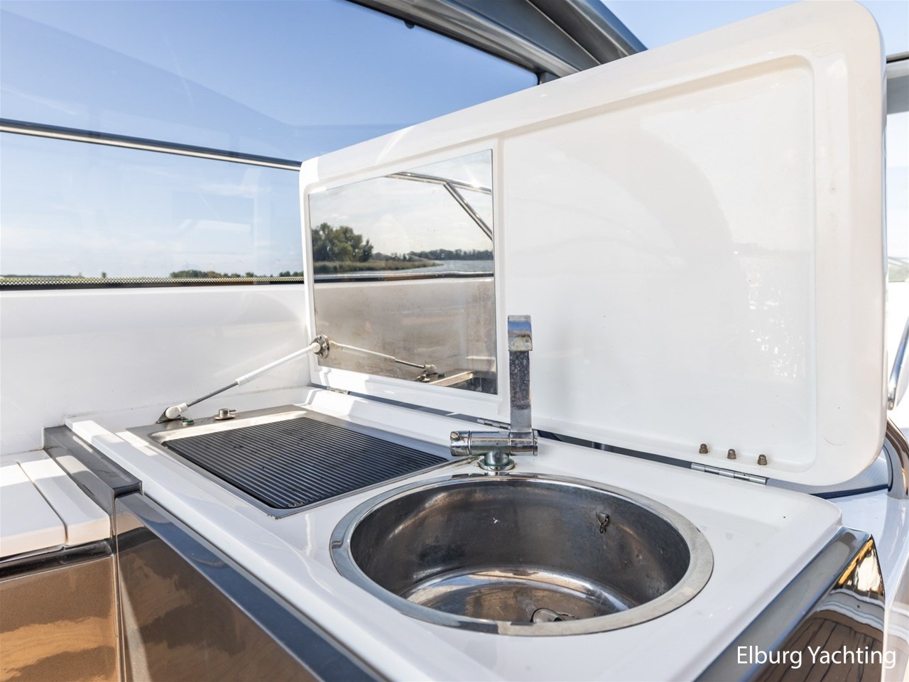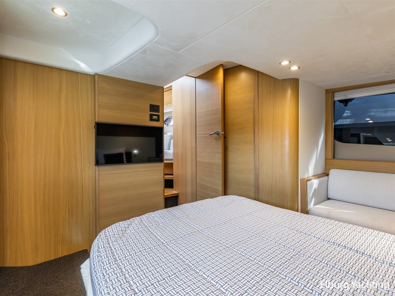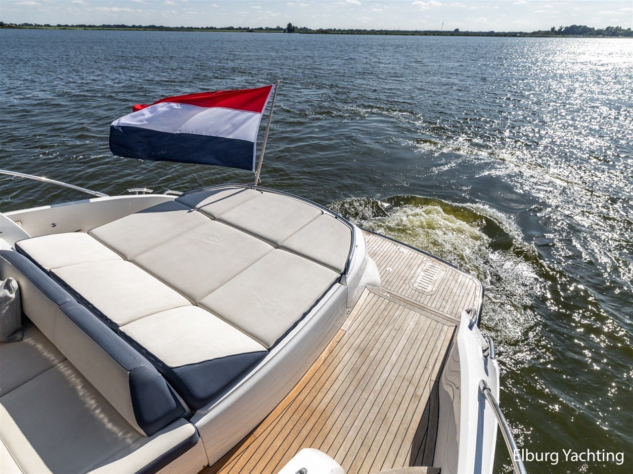 Deze mooie Princess V48 is met haar sportieve lijn een mooie verschijning op het water. Het schip beschikt over onder andere: hydraulisch zwemplatform voor de ultieme waterbeleving, garage voor bijboot van 3.25m, zonnebed in kuip. gangway, airconditioning per ruimte, hetelucht verwarming, elektrisch schuifdak over de kuip, motorservice april 2025, generator service april 2025, gepolijst oktober 2025, Volvo Penta IPS systeem voor eenvoudig manoeuvreren, Volvo Penta motormanagement systeem, roerstandaanwijzer, Dockmate afstandsbediening, volledig afsluitbare tent rondom kuip, uitstroomopening voor verwarming in kuip, houten vloer in salon + keuken, bed in gastenhut is verstelbaar en te gebruiken als V-bed of vrijstaand bed, muggenhorren, Fisher en paykel vaatwasser, Electrolux 1-3 kg wasmachine, buitenkeuken met grill en spoelbak, 2 x luxe vaarstoel.