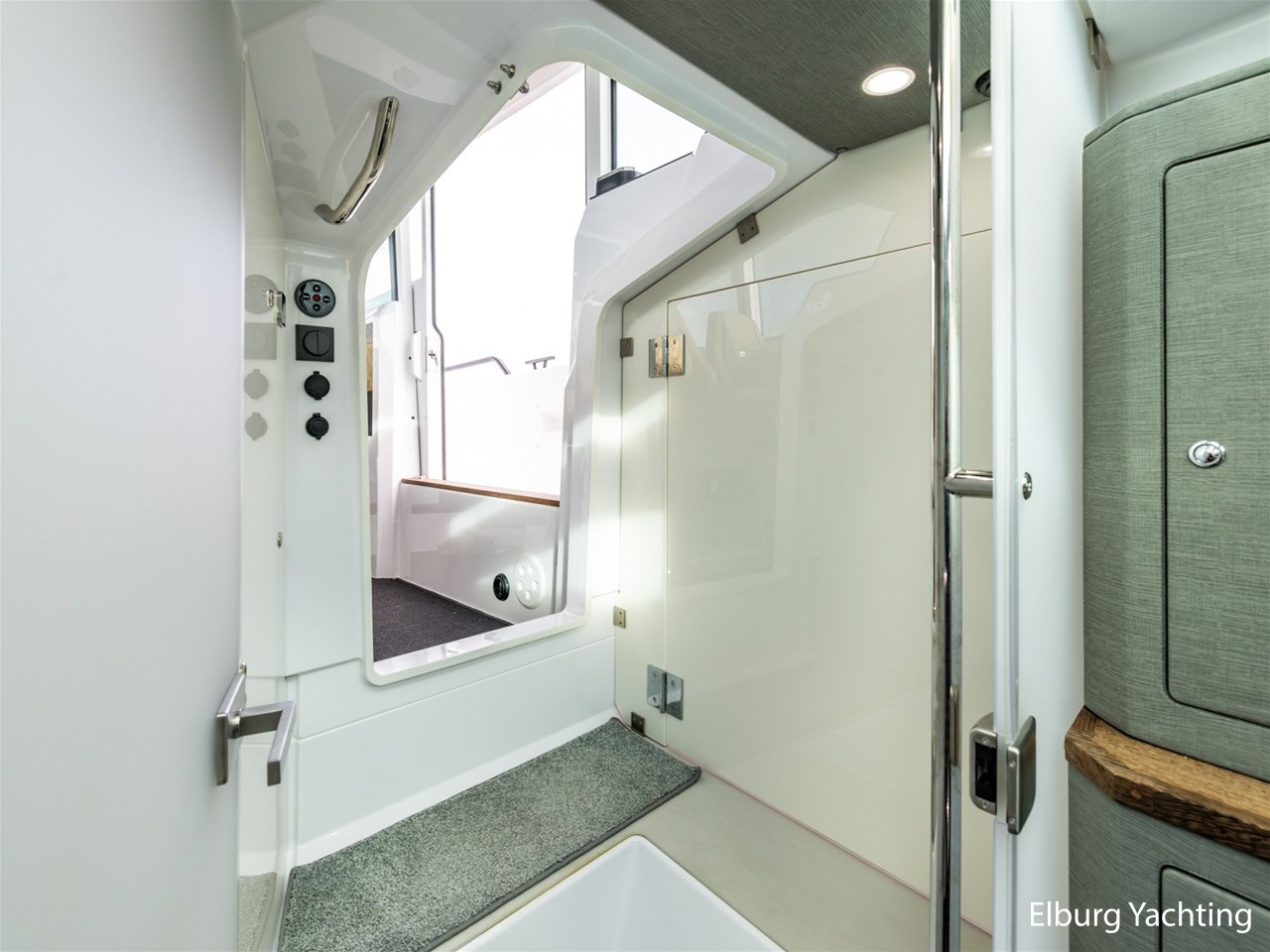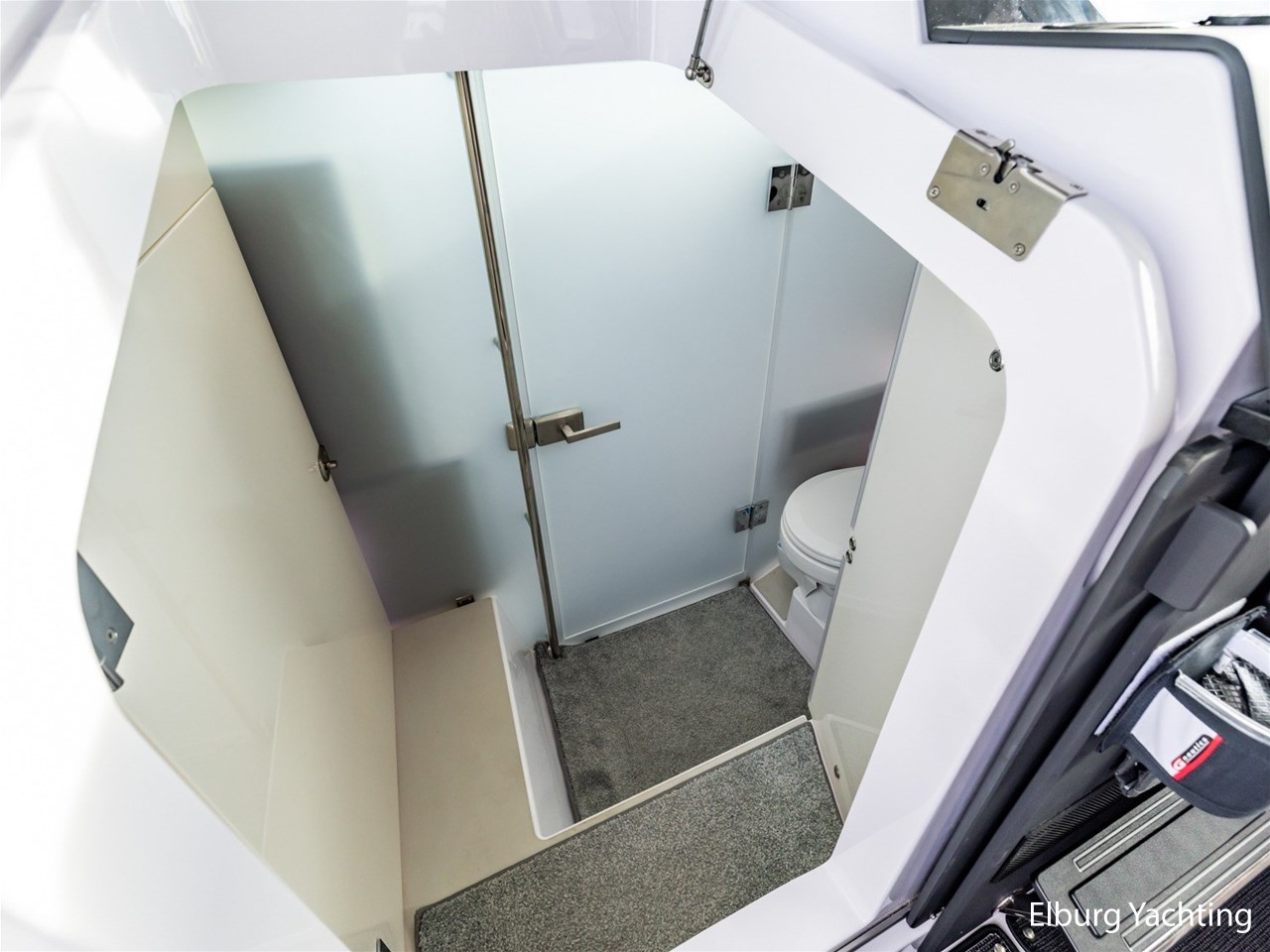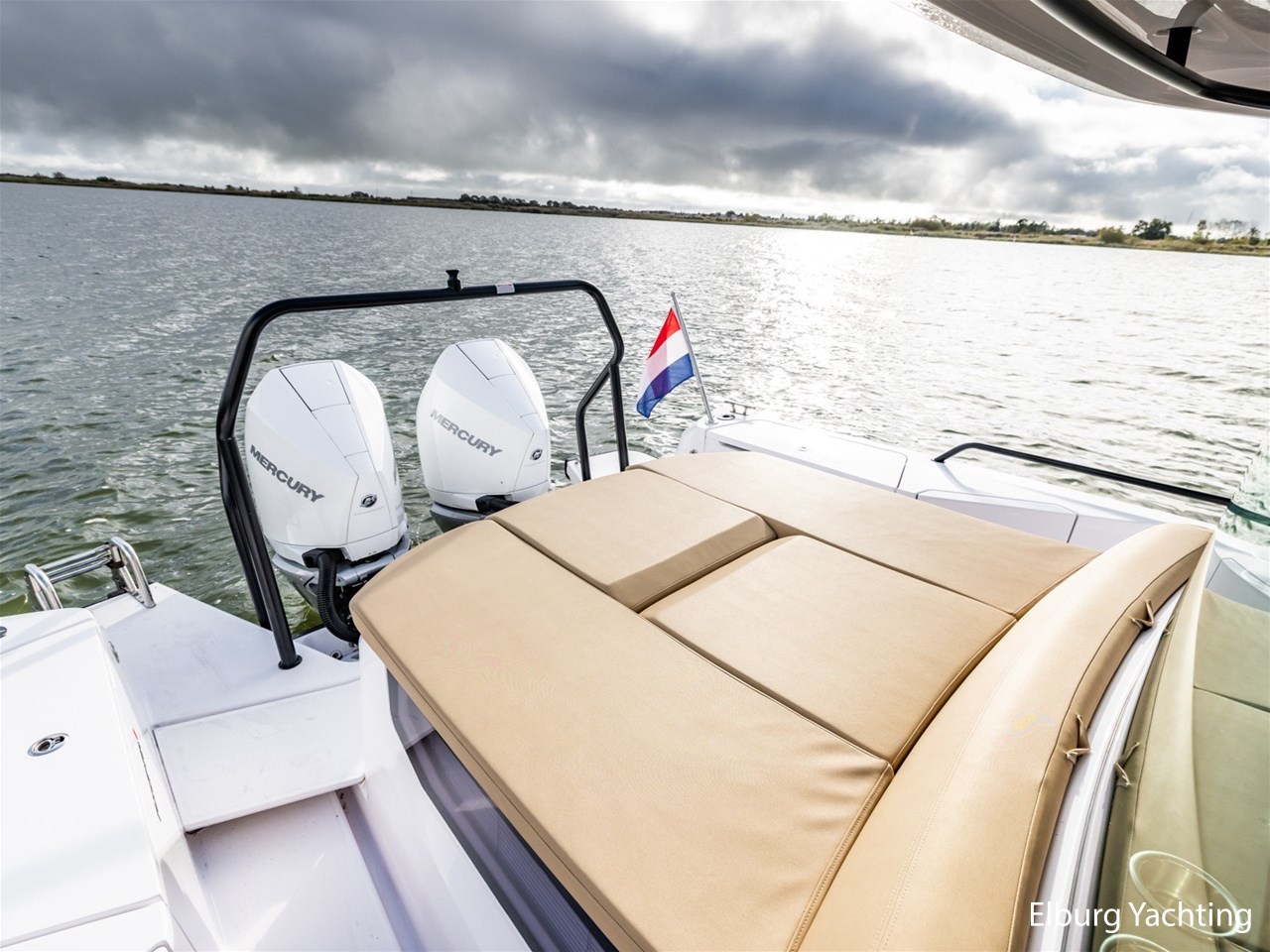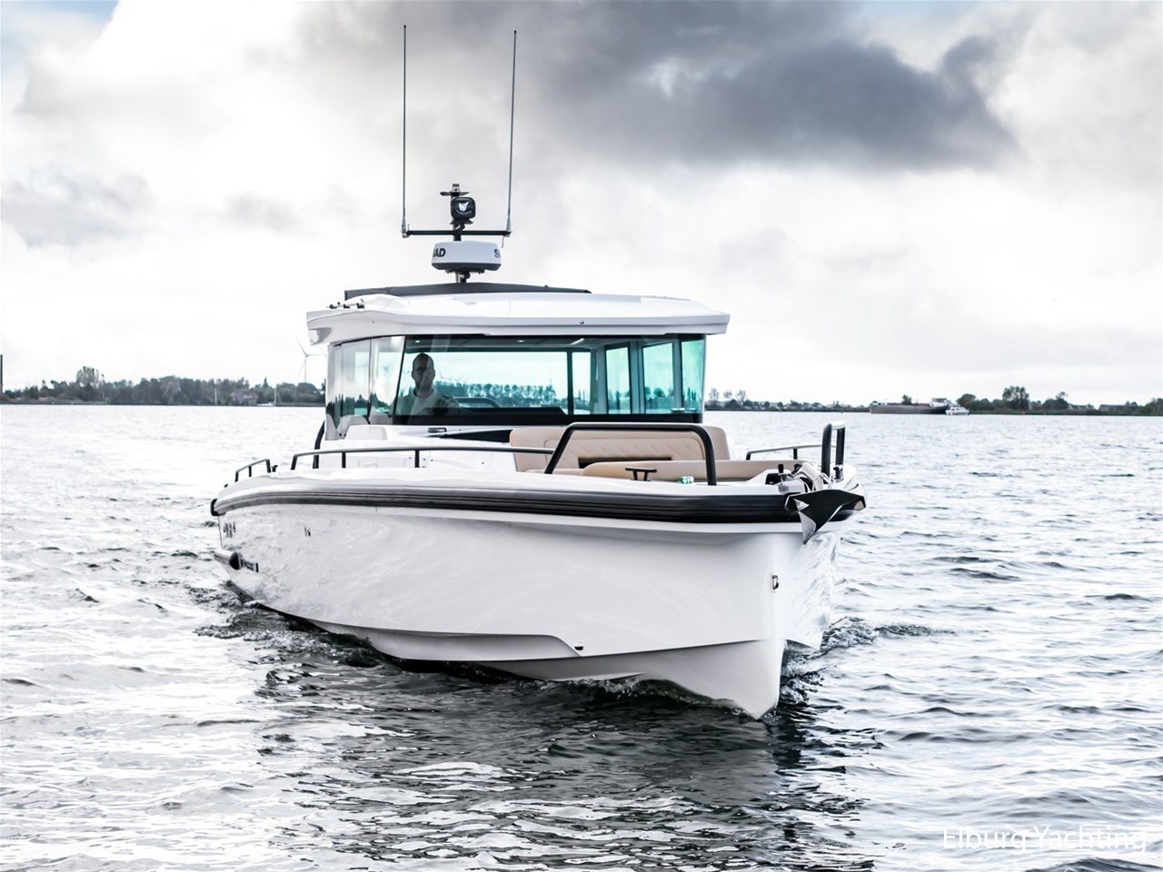 Deze Axopar XC Cross Cabin is een veelzijdig en stoer gelijnd jacht. Dankzij haar V-Stepped romp in combinatie met de Joystick Piloting vertoont ze mooi vaargedrag op groter water met een hogere topsnelheid en is ze erg gemakkelijk te manoeuvreren. Verder is ze voorzien van een dubbele cabine en een natte cel. Het jacht is fraai gestyled middels het Brabus Line Trim Package en geeft een luxe en fraai afgewerkte indruk. Deze Axopar wordt voortgestuwd door twee 300 pk sterke Mercury Verado motoren. Rondom is eenvoudig bewegen middels de gangboorden en de twee te openen zijdeuren in het stuurhuis. Voor- en achter het stuurhuis zijn twee royale zonnebedden gesitueerd. Het stuurhuis is rondom voorzien van ramen waardoor er een optimaal 360 graden zichtveld is. Tevens is het stuurhuis voorzien van een gezellige dinette met koelkast onder de vaar- / meevaarstoel. Dit jacht is een sportieve allrounder en wordt onder andere geleverd met: Led-verlichting rondom, Webasto elektrisch schuifdak, vergrootte kastruimte voorhut, zonnebed voordek met bergruimte, Webasto verwarming, raamcovers, Dometic koelkast, zoeklicht met afstandsbediening, buitendouche met warm water, onderwaterverlichting, Waterski-beugel, Audiosysteem met 5 speakers binnen en 4 speakers buiten, Toiletruimte met douche en hoezen voor de buitenkussens. Voor vragen en/of het maken van een afspraak bent u 7 dagen per week van harte welkom bij Elburg Yachting.