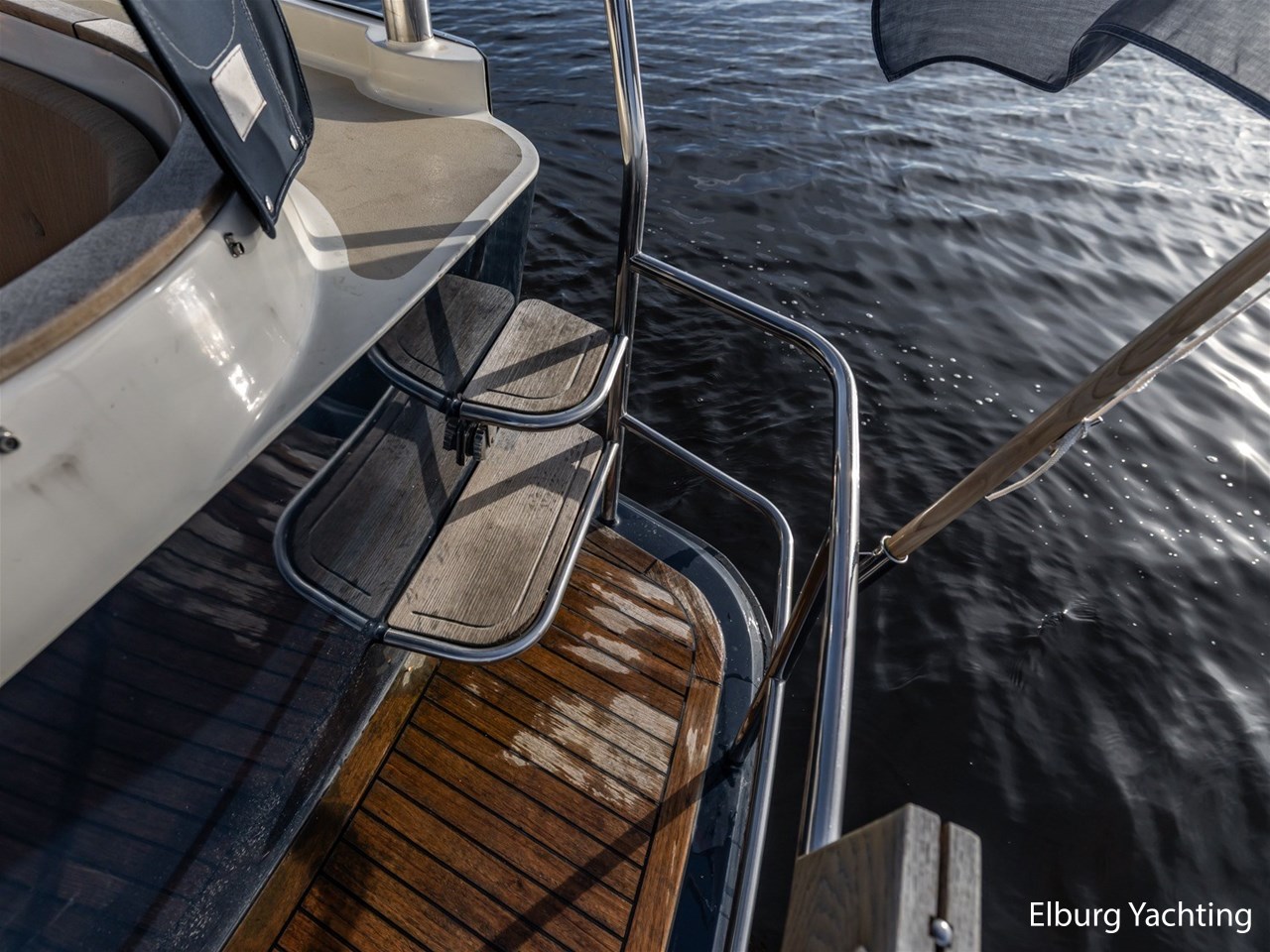 - Geïntegreerd met teak + 2 x opstap naar gangboord + r.v.s. zwemtrap