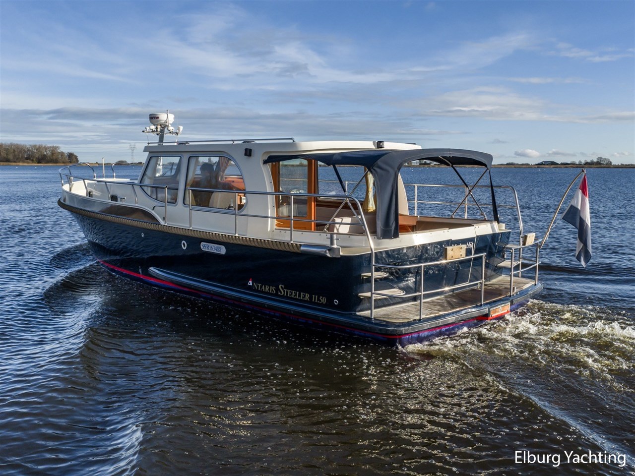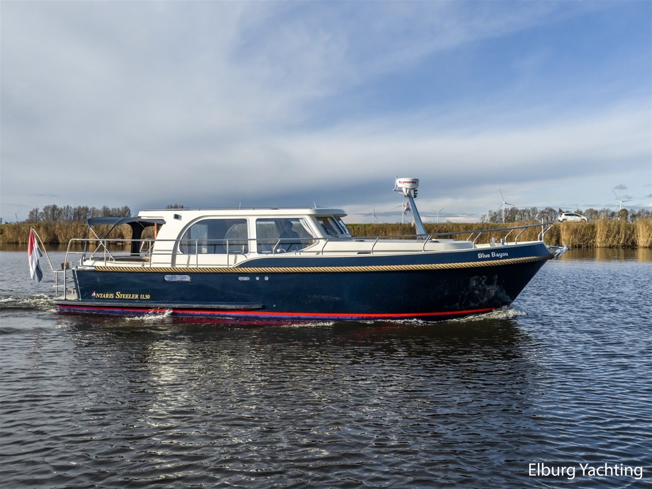 Zeer stijlvol en comfortabel gebouwde Antaris Steeler 11.50 open kuip. Het schip biedt voor zijn lengte veel ruimte aan boord met een royale open kuip, aangesloten salon en kombuis en twee hutten indeling. Deze Antaris Steeler 11.50 is zeer rijk uigerust qua techniek en voorzien van: Volledig afsluitbare kuiptent, 4 x gelakte houten klapdeur naar achterdek (waardoor salon en achterdek een grote leefruimte worden), romp geschilderd 2023, bekleding in salon + stuurstoel 2025, service accu's 2025, kabelaring rondom, Corian topbladen, salonbank met een extra inzetstuk ook te gebruiken als tweepersoons bed, muggenhorren, separate wasmachine, extra geïsoleerde motorbekisting, kuipverlichting, eenvoudige opstap van zwemplateau naar gangboord d.m.v. traptreden, de Hydronautica afstandsbediening maakt het aan- en afmeren kinderspel met een directe bediening voor de boeg- en hekschroef / motor voor- en achteruit / ankerlier, zitbank in kuip met bijbehorende kussens, groot opbergluik, klapbare r.v.s. doorvaarthoogte met staande mast ca. 3,70 m en met gestreken mast ca. 2,40 m.