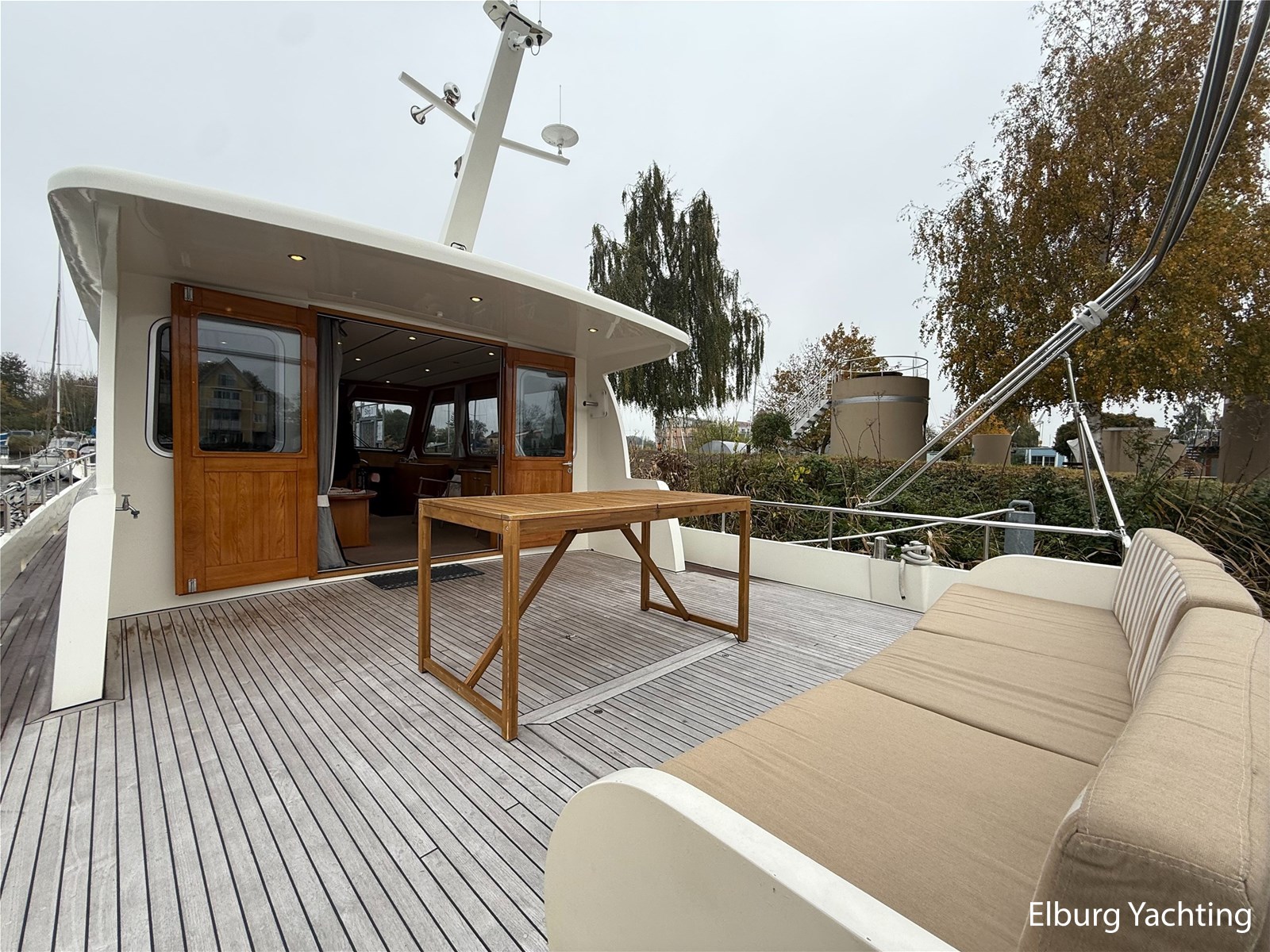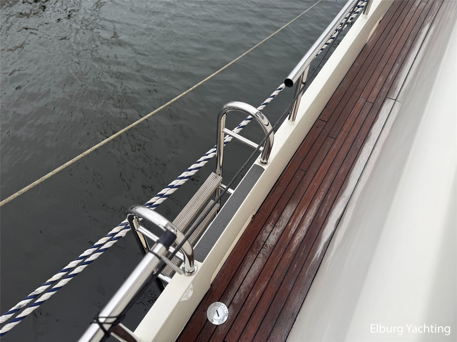 - Geïntegreerd + teak dek + r.v.s. zwemtrap + 2 x trap van achterdek naar zwemplatvorm