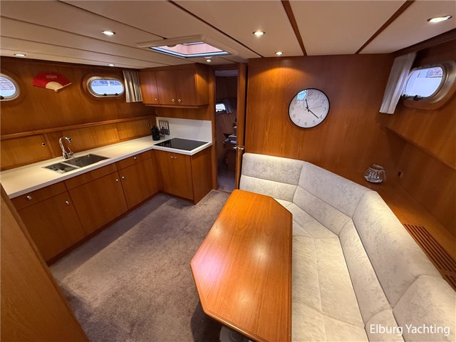 Deze ruime combi kotter 1500 Open Kuip is een schip met veel ruimte boven en beneden deks. Dit schip wordt geleverd met o.a: R.v.s. reling, geïntegreerde bakskisten op achterdek (inclusief teak klep), Hydronautica, 2 x houten openslaande deuren naar open kuip (inclusief dubbel glas), camerasysteem op spiegel (uit te lezen met Raymarine E140W), vlucht/ventilatie luiken, halogeen verlichting, kunststof topbladen in keuken, Siemens vaatwasser, dubbele verschansing, Siemens was/droger combinatie, elektrisch klapbare mast, r.v.s. stootrand, 2 x trap naar zwemplatvorm, lederen stuurstoel, groot achterdek, opslag onder de kuip, r.v.s. zwemtrap tevens te gebuiken als zijladder en ladder naar dak salon.
