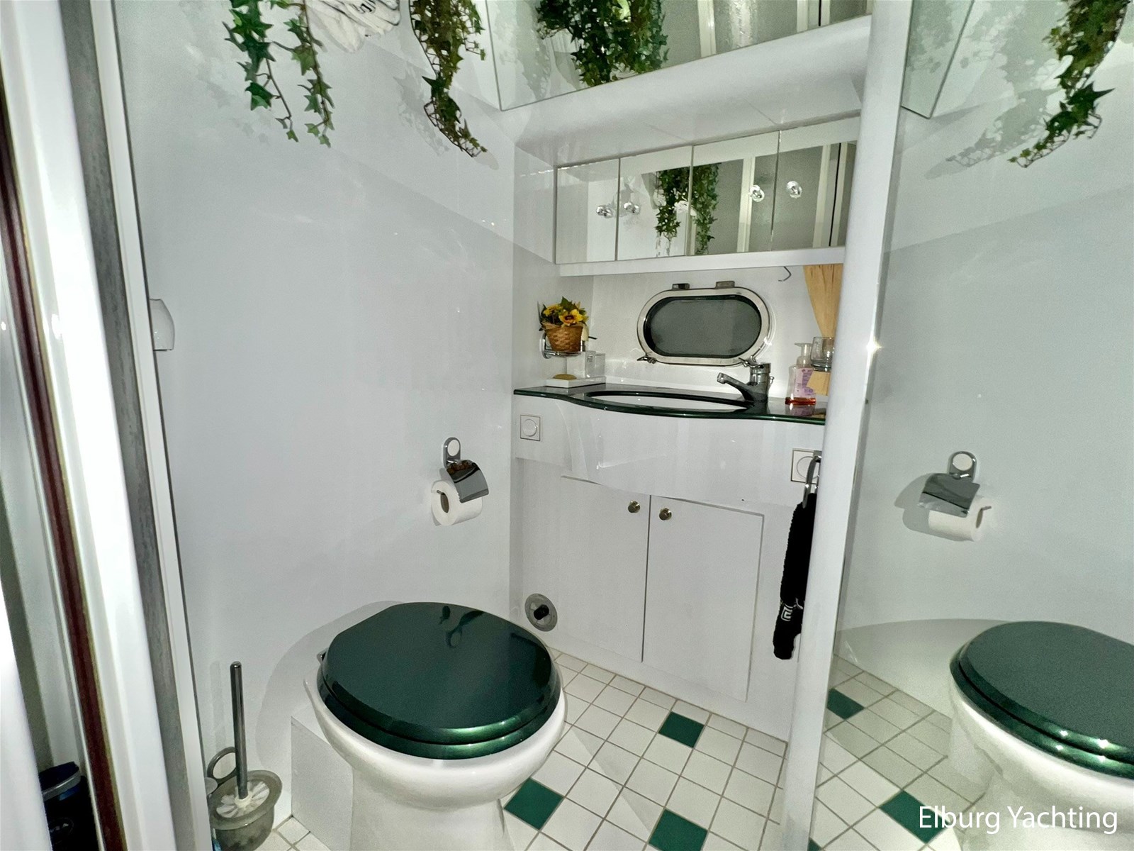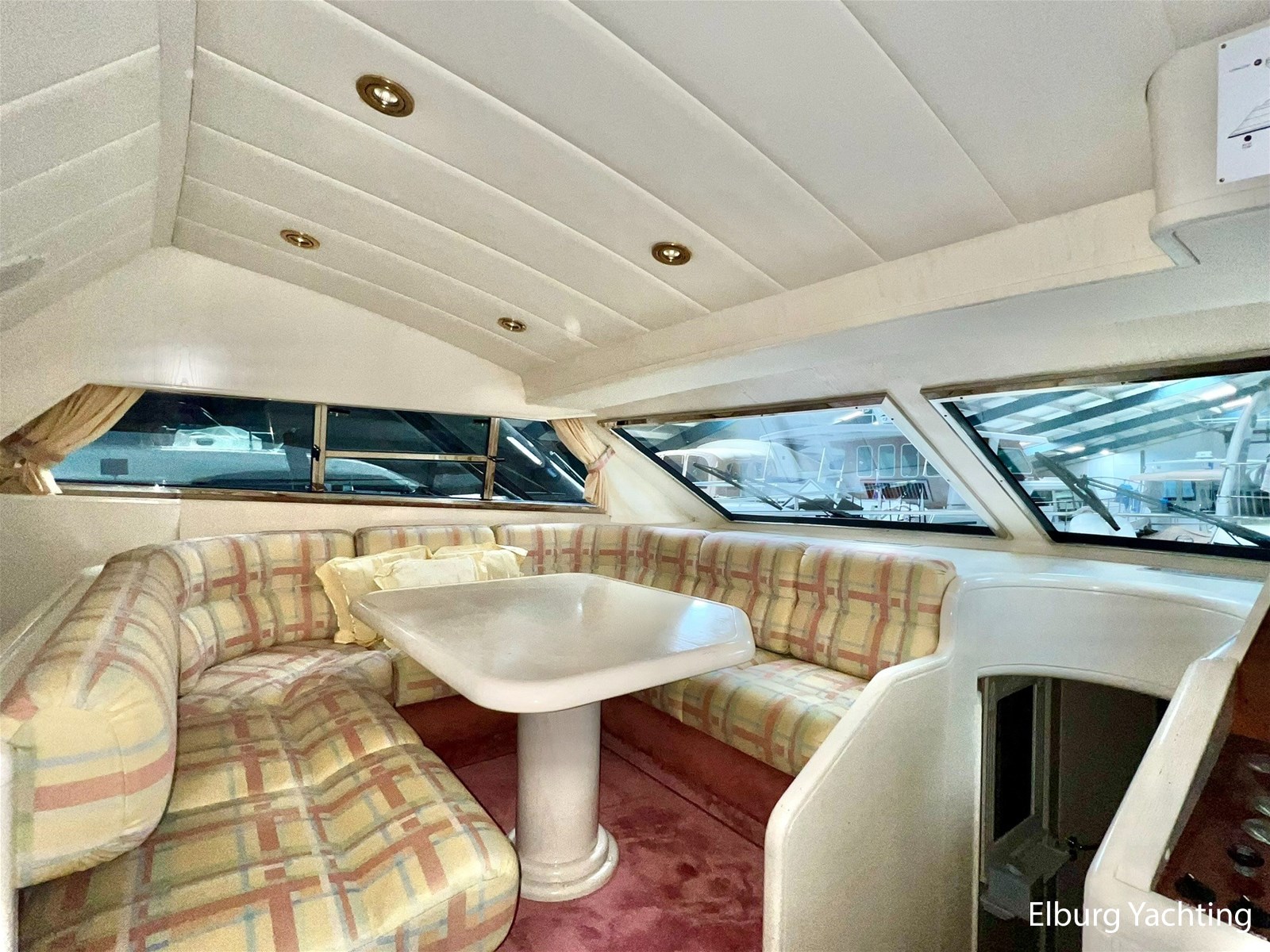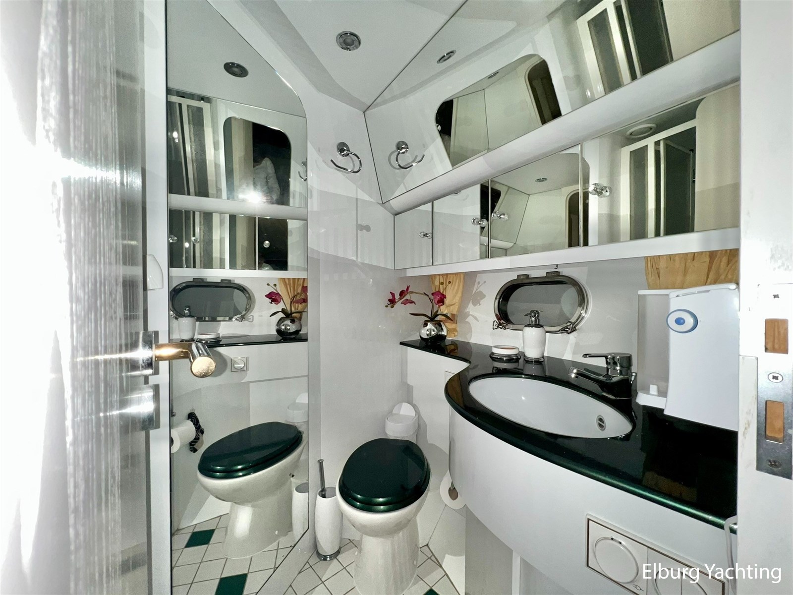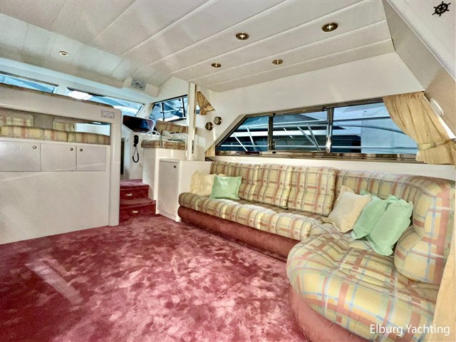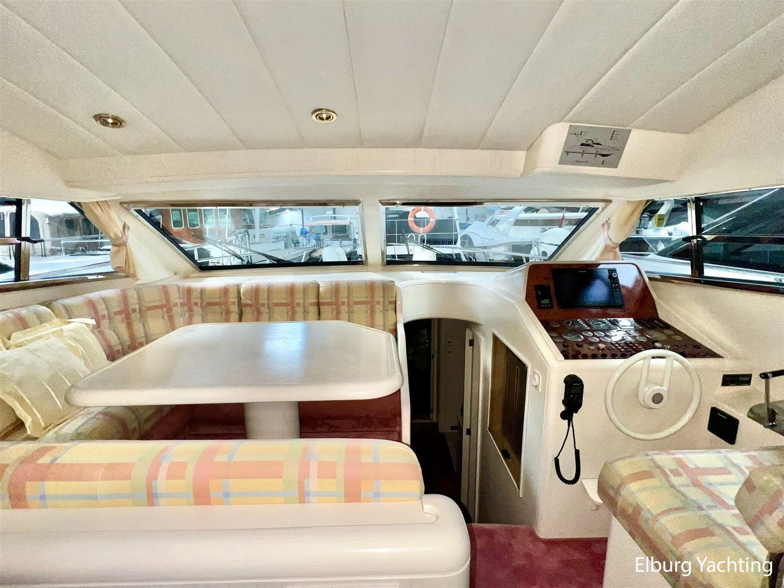 This spacious and sporty Neptunus 156 is in good condition for its age and is being sold by its first owner. The yacht features three cabins for at least six passengers and has two separate bathrooms. The open cockpit and saloon are connected on the same level. A full canopy covers the open cockpit with large viewing windows. An integrated staircase in the cockpit provides access to the spacious flybridge with a U-shaped seating area. The helm station has a two-person pilot seat and offers a well-organized dashboard with all the necessary equipment, including a new Raymarine Axiom plotter. The saloon can be accessed through a stainless steel sliding door. A spacious L-shaped bench and two integrated chairs offers excellent seating comfort. There is ample storage space in the benches and cabinets. The dinette is located opposite the helm station, allowing the entire crew to watch the sailing at a comfortable level. Below deck is the galley with a refrigerator/freezer/microwave/dishwasher/stovetop and sink. On the starboard side, there are two single guest cabins, and on the port side, a double cabin with a French bed. The guest bathroom is located amidships and is freely accessible. Forward is the owner's cabin with a double bed and en-suite bathroom. Ample storage is located under the forward cabin bed. The aft section is accessed through a wide hatch in the cockpit floor. The aft section contains storage space, a washer and dryer, the generator, and other technical equipment. The engine room is accessible from the aft section. The port engine was replaced in the winter of 2023-2024; invoices for this work are available. This Neptunus 156 is also equipped with: removable cushions for the aft deck, flybridge and foredeck, a bimini top over the flybridge, flybridge sections with covers, stainless steel fender holders, lockable cockpit with a door to the bathing platform, exterior lighting, four sliding windows in the saloon for ventilation and two mosquito screens, mosquito screens for the portholes, a removable sunshade on the windshield, and a side ladder. Interior headroom is approximately 2 meter.