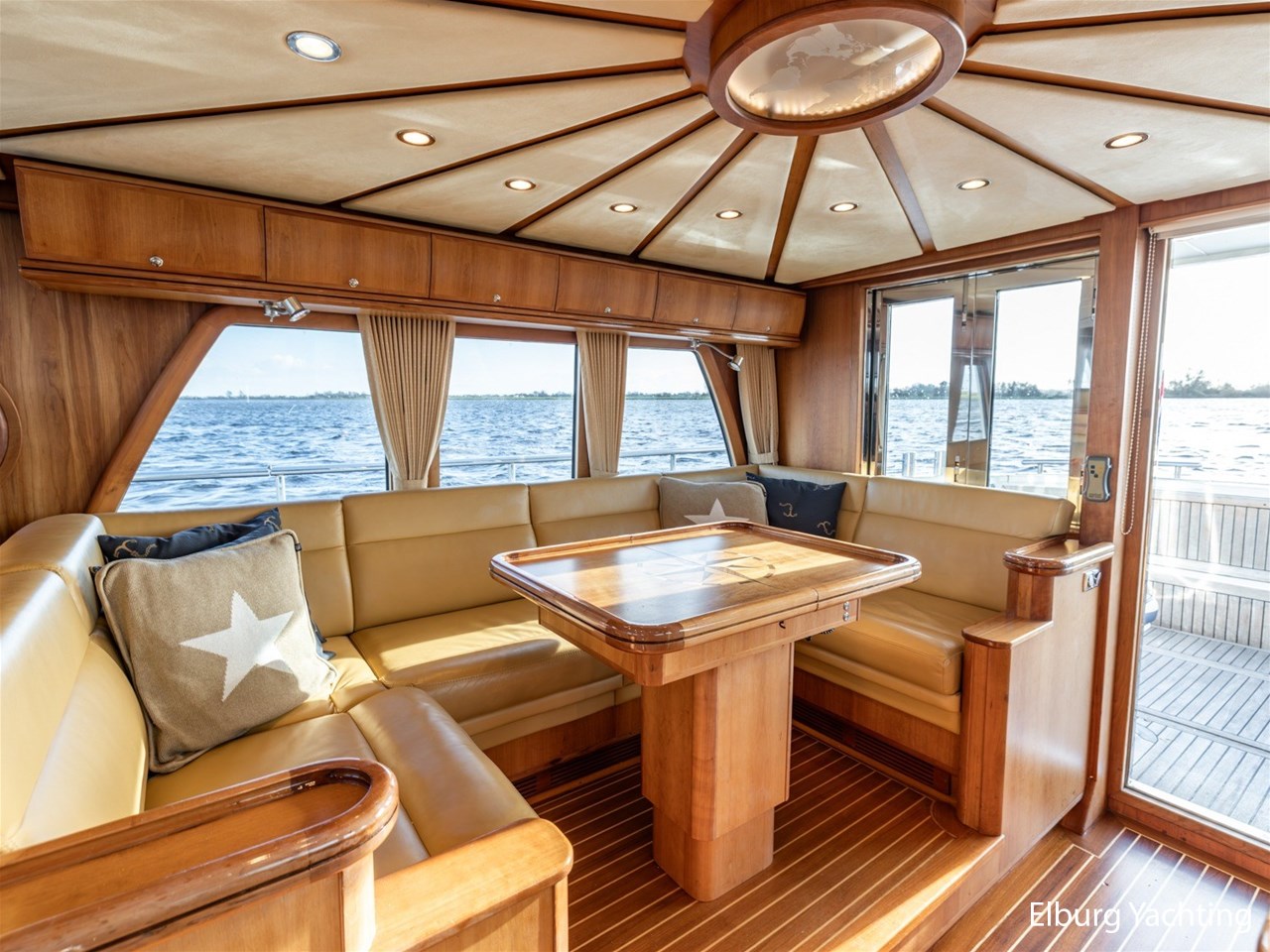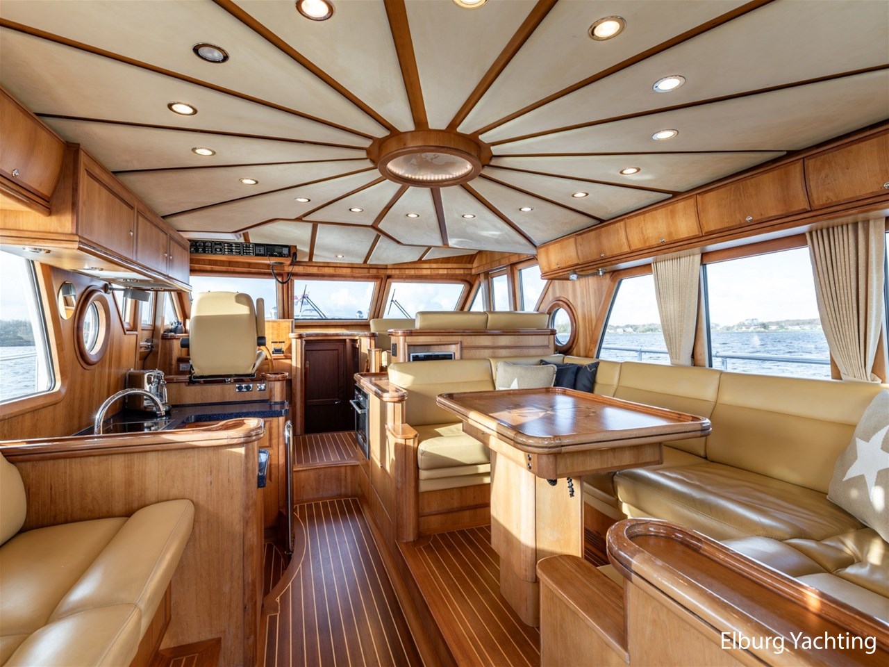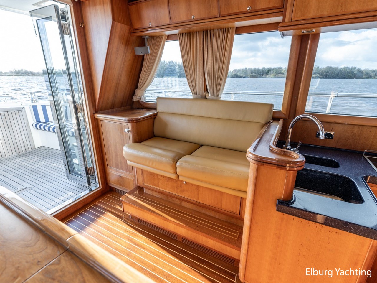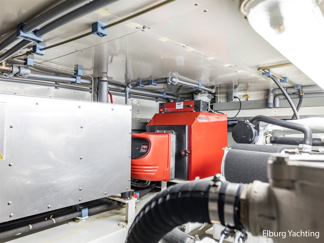 Het jacht beschikt over een hydraulisch uitklapbaar zwemplateau, waardoor deze wordt verlengt en de open kuip nog meer ruimte geeft, ze heeft daarnaast ook een luxe geïntegreerde zitbank op voordek, 4 x RVS sorades voor goede ventilatie in de boot, hydraulisch klapbare mast, 2 x zijdeur (ingang) + 1 x achteringang, luxe stuurstoel, meevaar-dinette naast stuurstand, RVS reling + RVS 'berghout rondom, 3 x dakluik, alle patrijspoorten kunnen open, Alcantrara plafonds, camerasysteem, veel bergruimte buiten, SB +BB elektrische kaapstander, buitenentree machinekamer, ook CV in machinekamer + opbergluik, groot opbergluik in open kuip.
