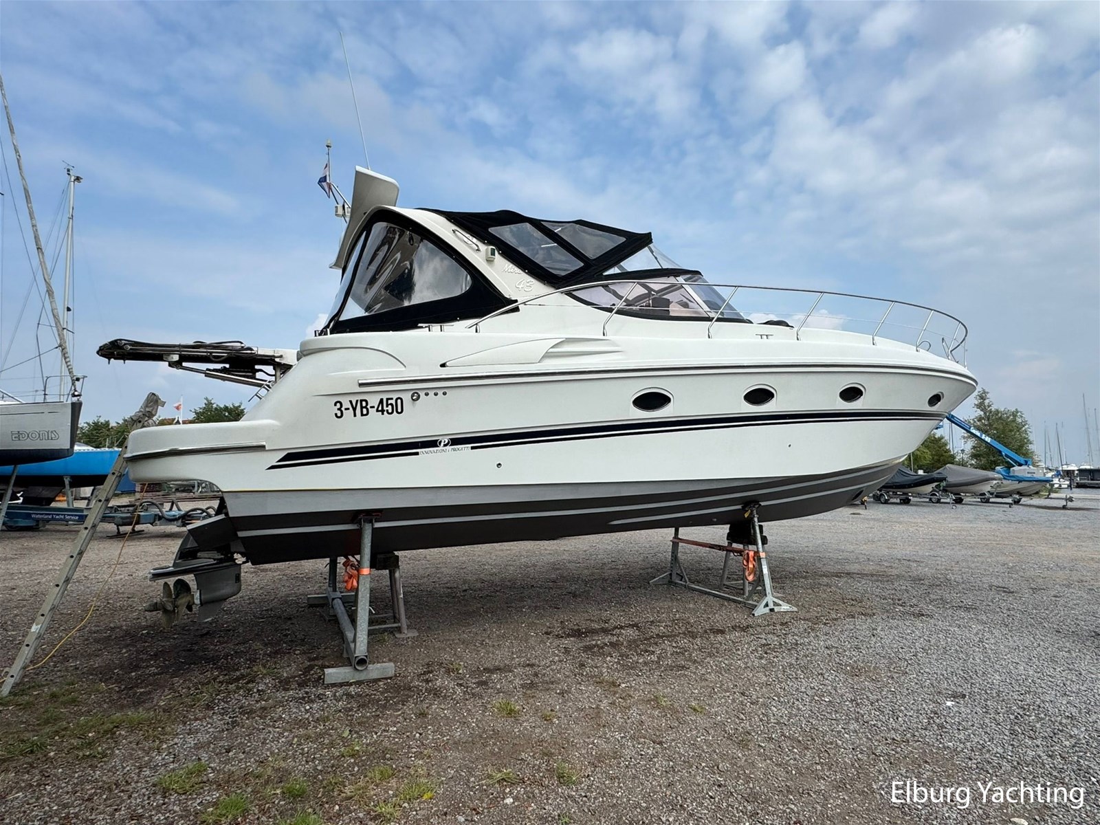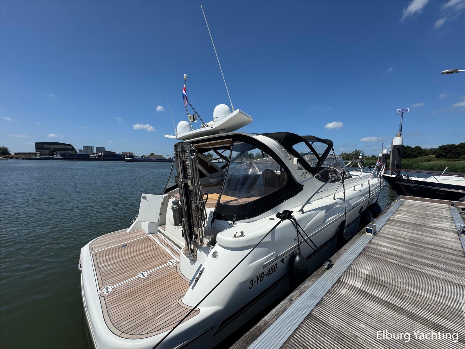 Italiaans design in combinatie met veel praktische ruimte kenmerkt deze Mira 43 van de werf Innovazione e Progetti uit Italie. Dit jacht is van bouwjaar 2004 en is voorzien van twee krachtige Volvo Penta D6 motoren met elk 350 pk. De aandrijving verloopt via twee Volvo Penta DPH hekdrives, welke in 2025 zijn geserviced. Deze Mira 43 is voorzien van: Volledige tent rondom kuip met uitristbare delen, hydraulisch uitschuifbare gangway met afstandsbediening, groot bergluik in zwemplateau, kuip voorzien van koelkast / spoelkom / radio met speakers, loop naar het voordek via gangboorden maar ook binnendoor via opstap bij stuurstand, afneembaar zonnebed op het voordek, elektrisch/hydraulisch bedienbaar luik naar machinekamer, diverse 230V aansluitpunten door de boot, TV in salon (2025), tapijt delen in het interieur uitneembaar, 2 x bergluik in salonvloer. Verfsysteem onderwaterschip vernieuwd in juli 2025. Dit schip is op afspraak in Nederland te bezichtigen. Wij maken graag met u een afspraak voor een vrijblijvend bezoek aan boord.