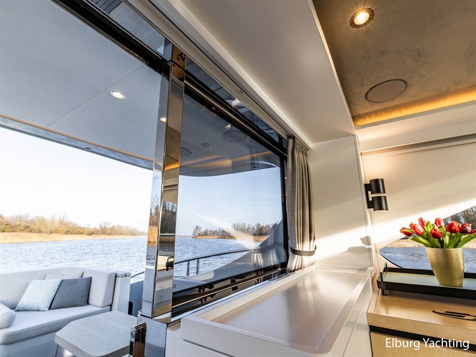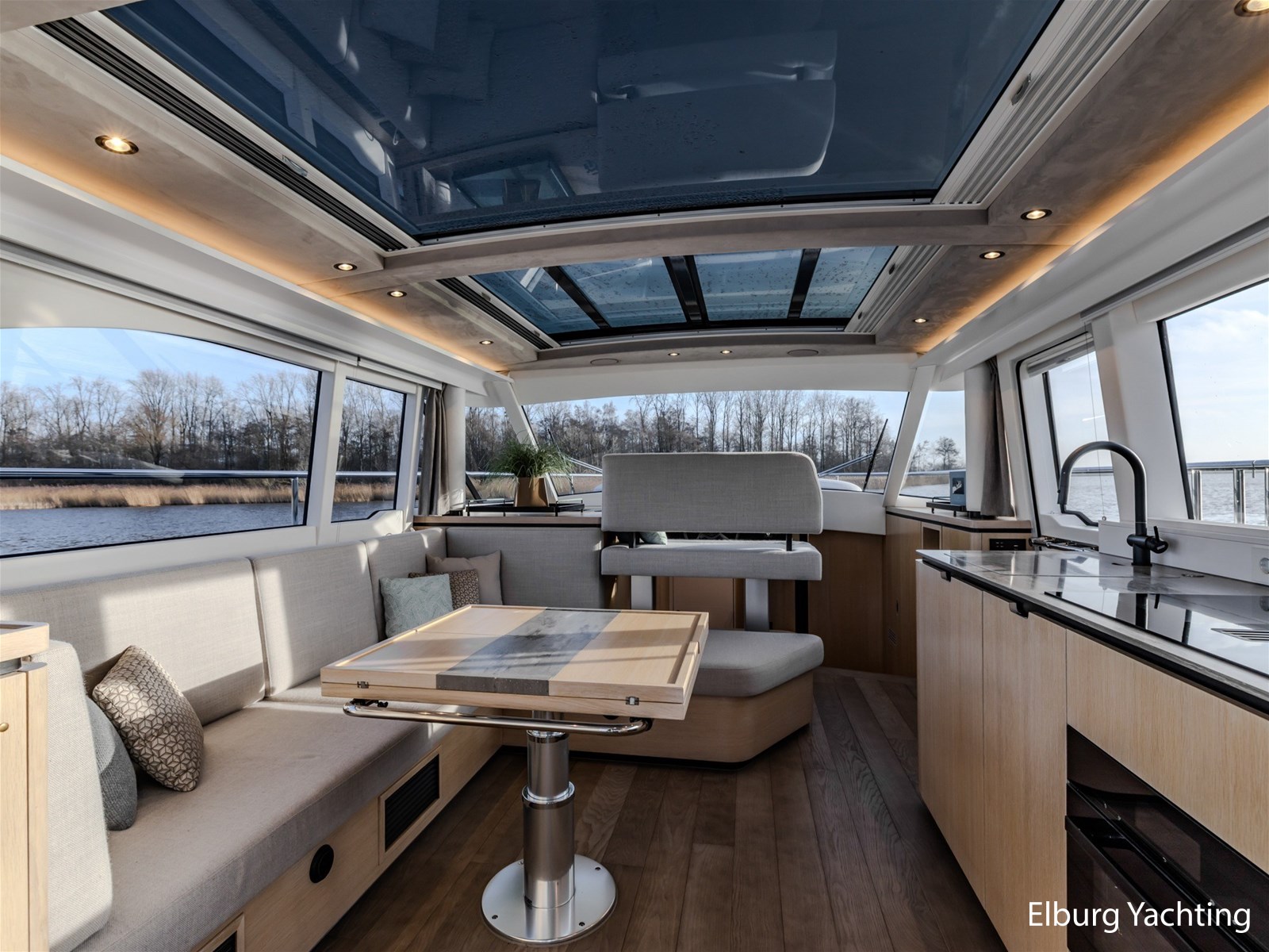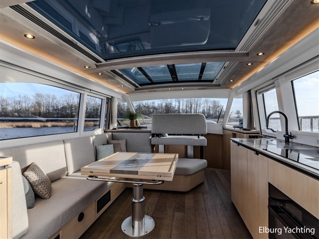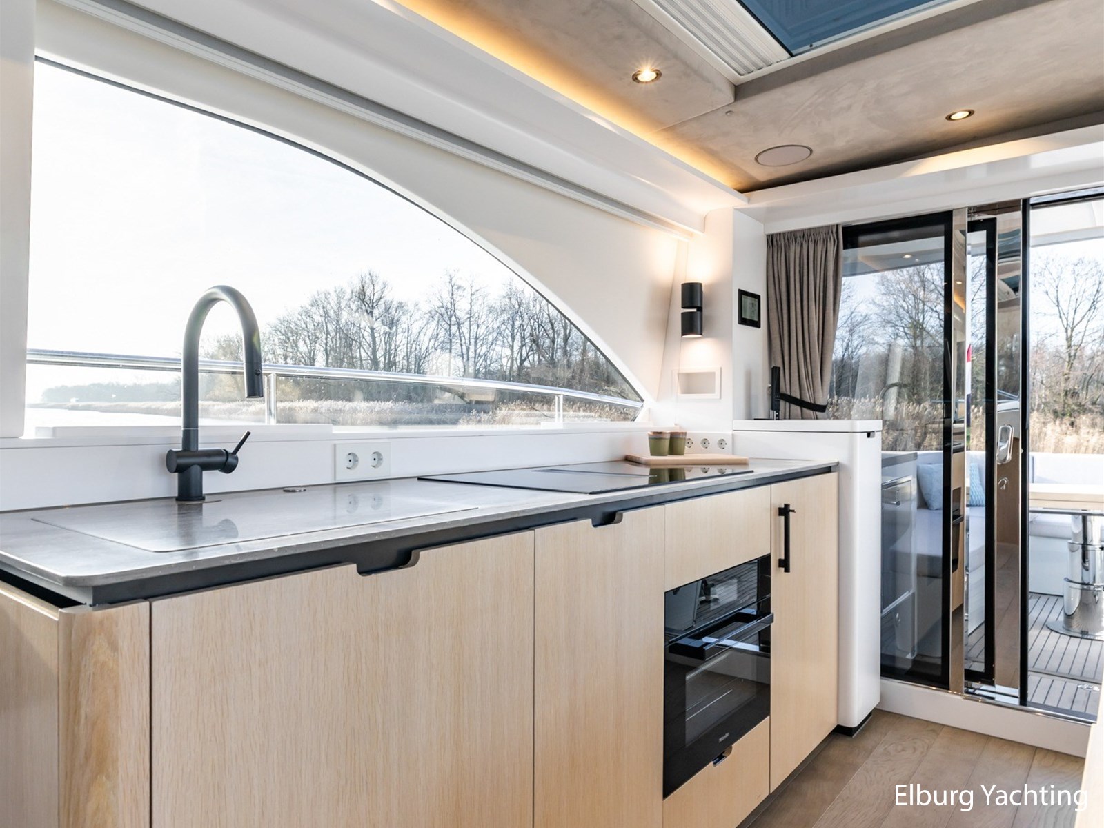 This Steeler 56S combines performance with elegance. The beautiful design was created by renowned Italian designer Vittorio Pieroni, and the yacht was transformed into a true work of art on the water by the well-known Steeler Yachts shipyard. She has beautiful lines and is constructed from aluminium. Powered by two Volvo Penta D11 - 725 hp engines, she reaches a top speed of approx. 26 knots and a comfortable cruising speed of approx. 18 knots with a range of approx. 380 nautical miles. Every element on board has been designed with comfort and practicality in mind. The generous windows in the saloon provide plenty of natural light. The roof in the saloon can be lifted to create a pleasant natural airflow on sunny days. The roof is also equipped with a Webasto sliding roof. Other unique features of this Steeler 56S include the custom-made Alcantara dashboard, Maecvo dehumidifier, steam oven, beautiful outdoor kitchen, Yachtcontroller remote control, Masscoat hull insulation, height-adjustable steering seat, Kabola central (floor) heating with Webasto climate control and air conditioning, hydraulically lowerable mast, tender garage (excluding tender), Flexiteek all around, hydraulic swimming platform, side door on starboard. For questions and/or to make an appointment, you are welcome at Elburg Yachting 7 days a week.