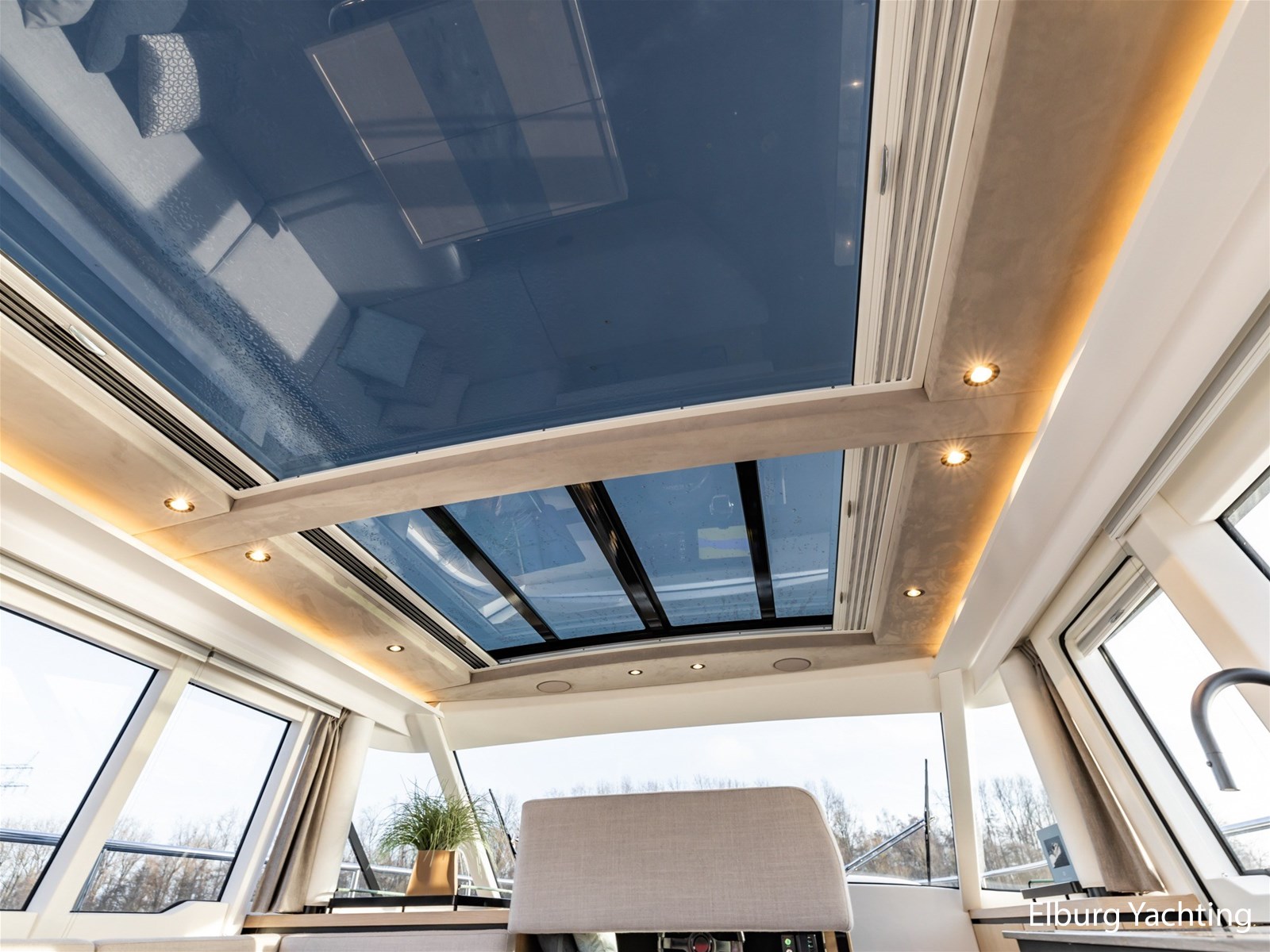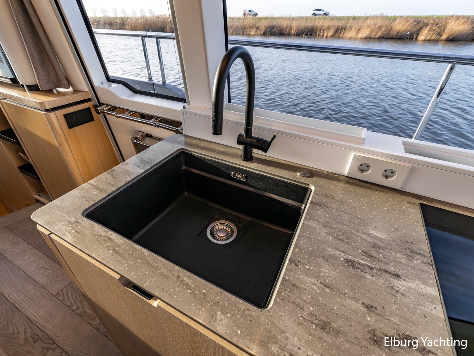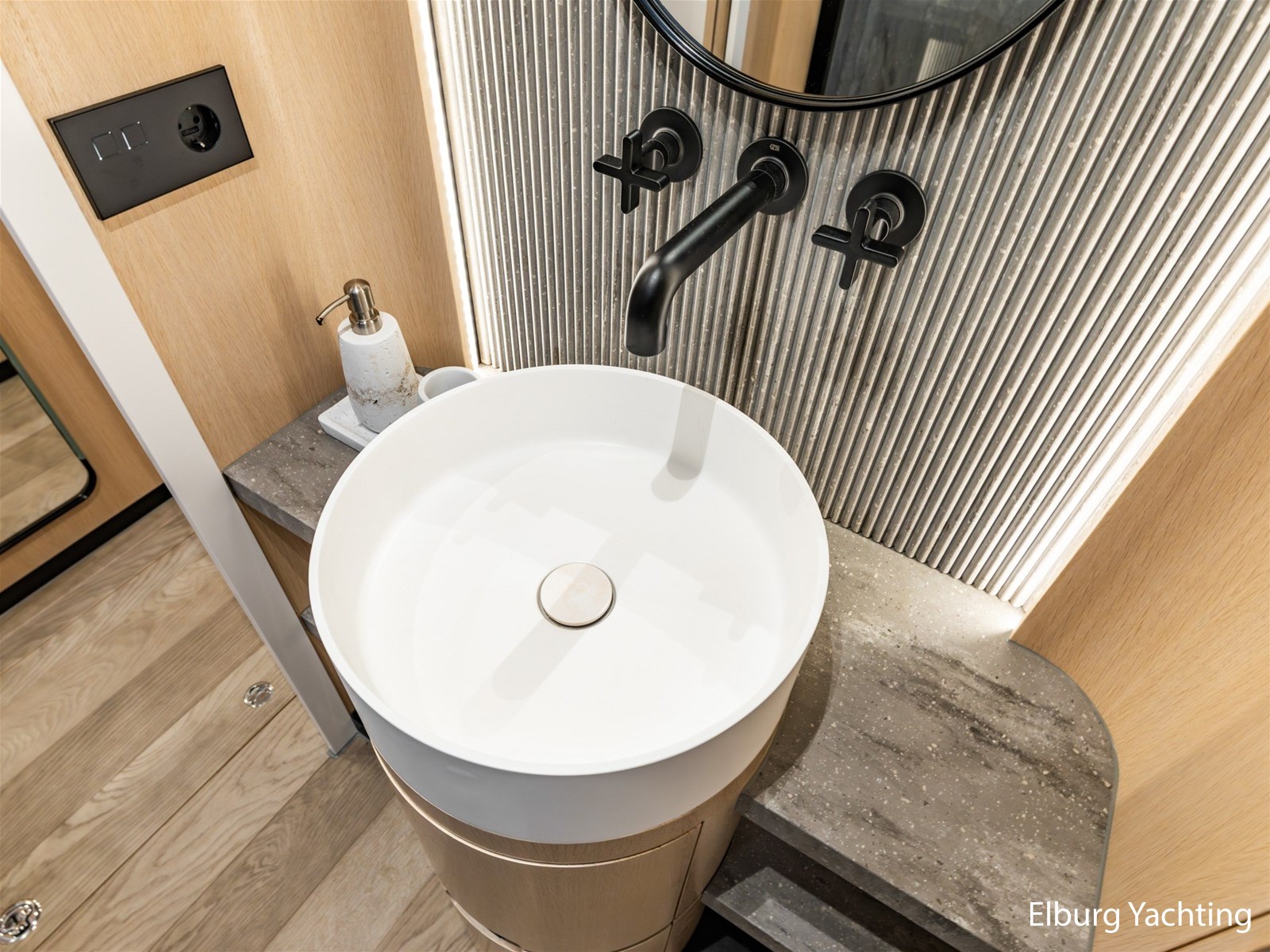 This Steeler 56S combines performance with elegance. The beautiful design was created by renowned Italian designer Vittorio Pieroni, and the yacht was transformed into a true work of art on the water by the well-known Steeler Yachts shipyard. She has beautiful lines and is constructed from aluminium. Powered by two Volvo Penta D11 - 725 hp engines, she reaches a top speed of approx. 26 knots and a comfortable cruising speed of approx. 18 knots with a range of approx. 380 nautical miles. Every element on board has been designed with comfort and practicality in mind. The generous windows in the saloon provide plenty of natural light. The roof in the saloon can be lifted to create a pleasant natural airflow on sunny days. The roof is also equipped with a Webasto sliding roof. Other unique features of this Steeler 56S include the custom-made Alcantara dashboard, Maecvo dehumidifier, steam oven, beautiful outdoor kitchen, Yachtcontroller remote control, Masscoat hull insulation, height-adjustable steering seat, Kabola central (floor) heating with Webasto climate control and air conditioning, hydraulically lowerable mast, tender garage (excluding tender), Flexiteek all around, hydraulic swimming platform, side door on starboard. For questions and/or to make an appointment, you are welcome at Elburg Yachting 7 days a week.