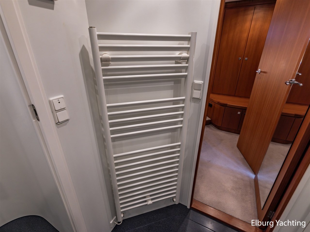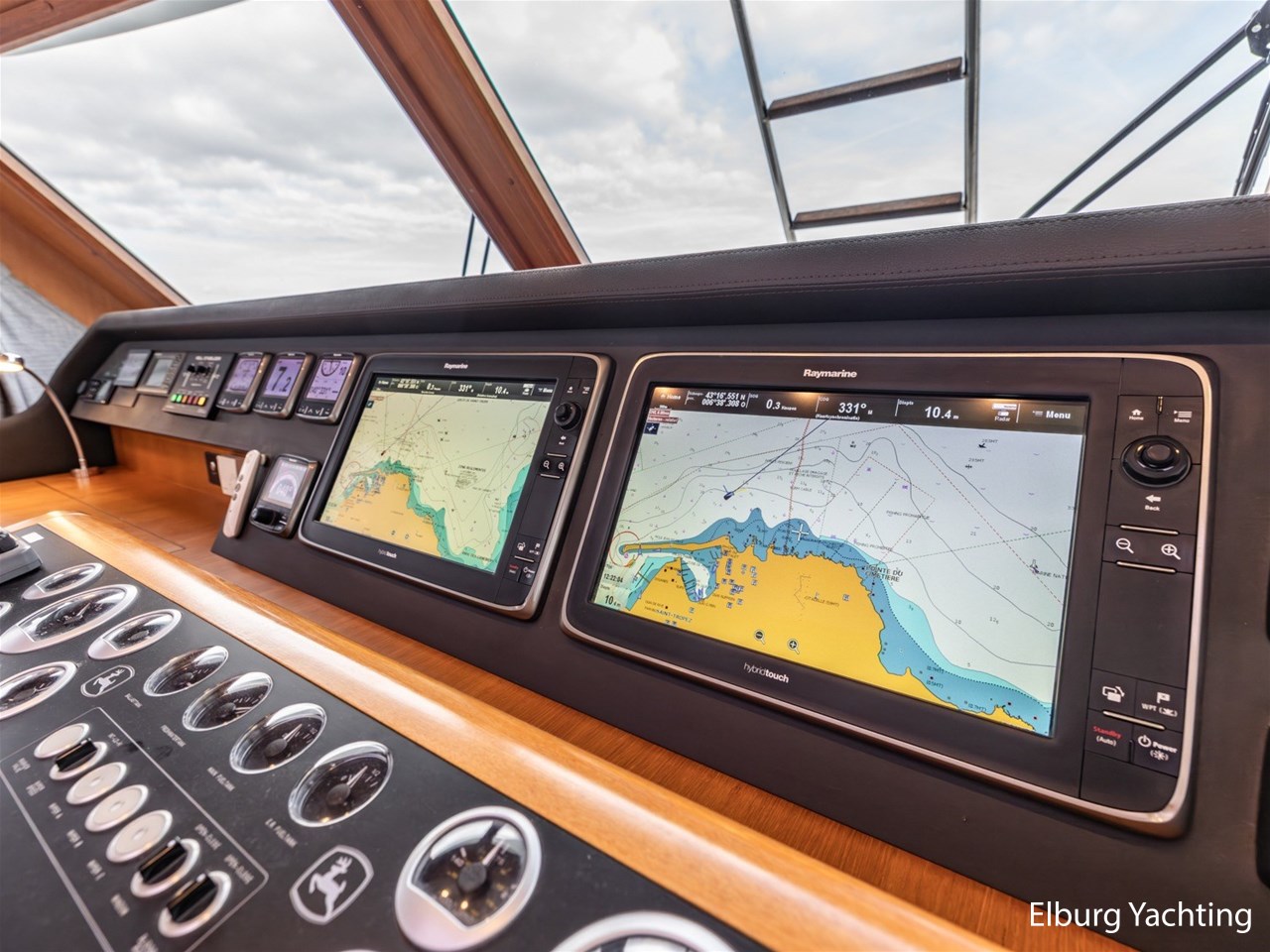This modern and very comfortably built steel Sturiër 620 OC, featuring high-quality materials and up to date technology, was built by the renowned shipyard Volharding in Stavoren. This ship is built in 2013 and launched in 2014. This Sturiër 620 OC has a three-cabin layout with a spacious full-width owner's cabin amidships, a comfortable double guest cabin forwards, and 2-persons bunk bed. The saloon/wheelhouse and aft deck are connected on one level for optimal spaciousness. The owner's cabin has an en-suite bathroom, and the two forward cabins share the 2nd bathroom. The drivetrain is provided by two powerful John Deere engines, each with 267 hp, ensuring smooth yet powerful maneuverability. This yacht is equipped with a hydraulic Naiad stability system, making it even more pleasant to sail on larger waters or in poorer weather conditions. This Sturier 620 OC is completely equipped with the following options: Underfloor heating throughout the ship, large storage hatch in the aft with access to many technical components, 2 x entrance to the engine room both inside and through the cockpit, Bosch freezer, Fixed benches in open cockpit with removable cushion set, fixed bimini top over the open cockpit, many stainless steel deck fittings, 2-person bench on the foredeck, lounger cushion with bimini on foredeck, 8 x solar panels 1400W, Hydronautica remote control for operating the bow and stern thrusters and also the main engines idle forward and backward, electrically operated blinds for the windscreens with remote, upholstery from Neptune from 2023, luxury driving seat with co-driving bench, electrically operated sliding roof above steering position with mosquito screen and blackout option, 4 x sliding window in saloon, mosquito screens for portholes, good 360gr. View of the helm, Corian countertops, Miele dishwasher, Bosch Maxx5 washer-dryer, electric coffee table leg, soft-closing drawers, TV on lift, and an extra-large bathing platform, tanks with manholes, Victron shorepower transformer, Victron Cerbo display, Fusion audio system. The boat has already proven itself with its voyages to the Mediterranean. It can currently be viewed by appointment in the port of Saint-Tropez, France.