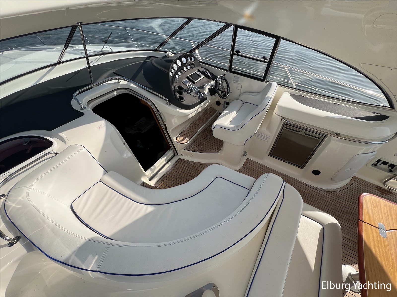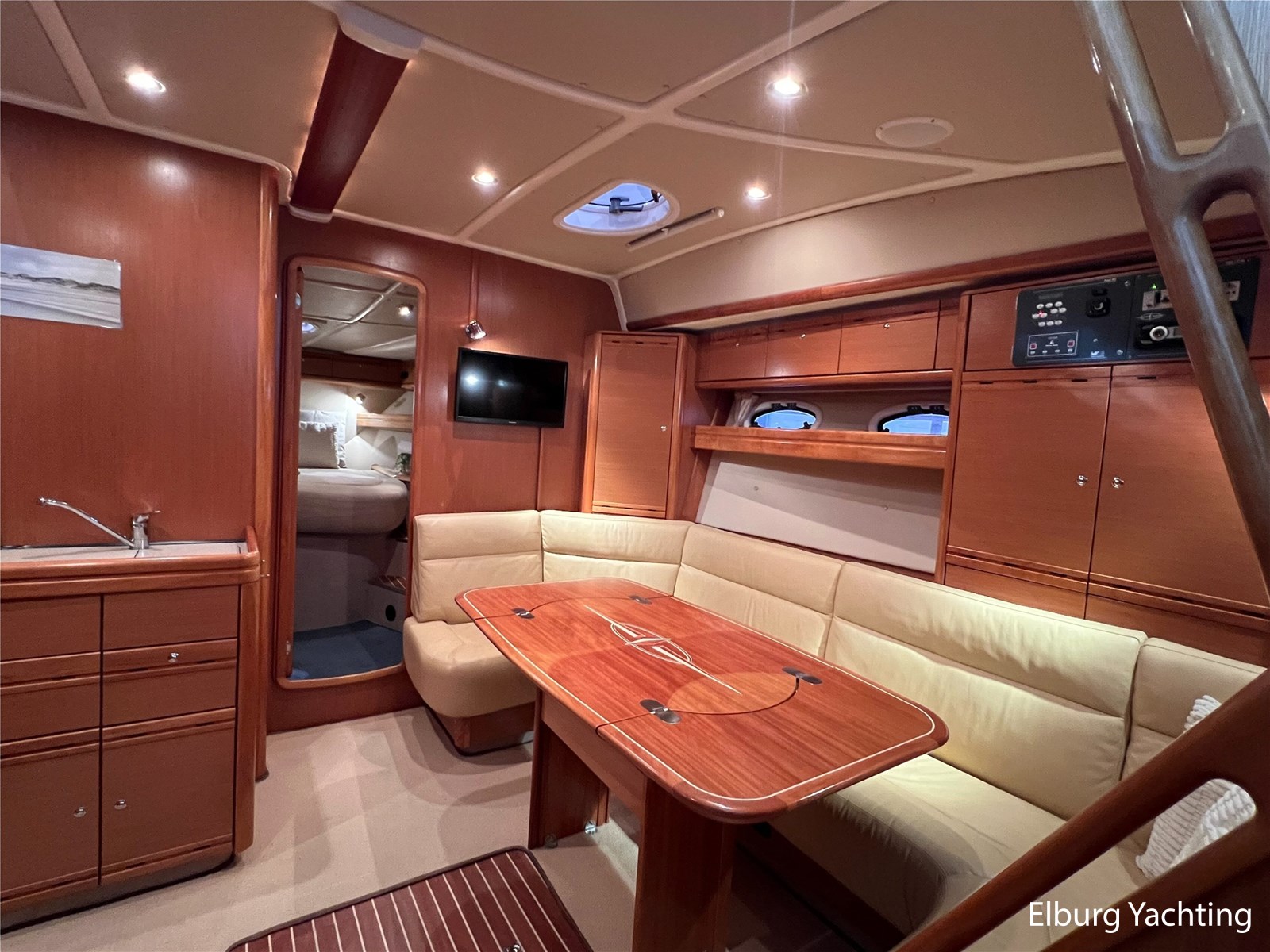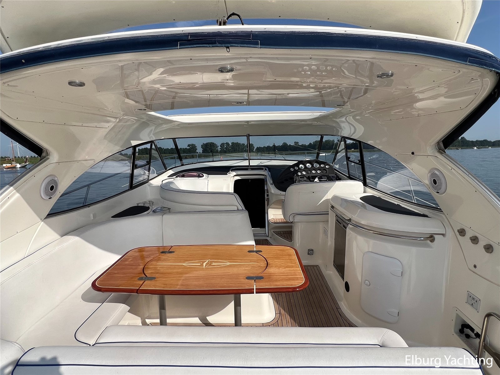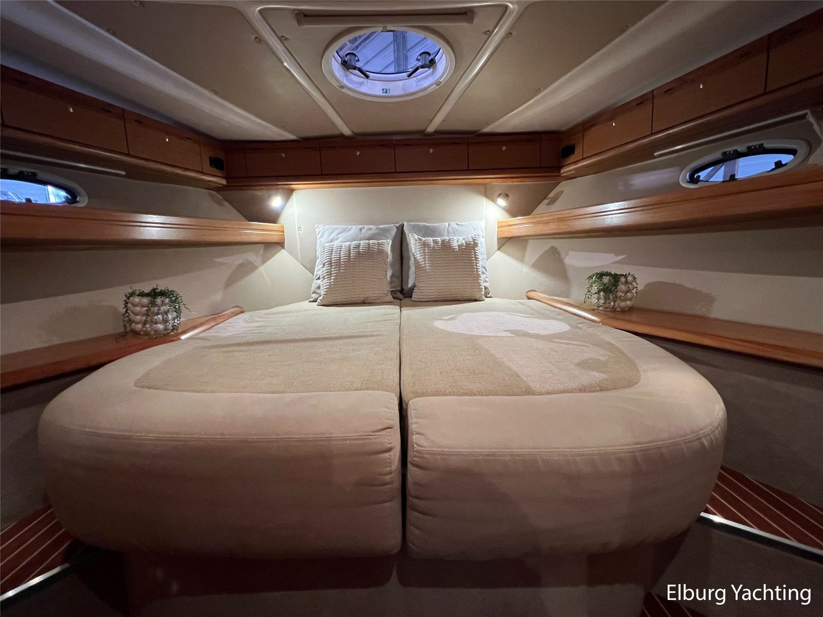 The Bavaria 42 HT Sport combines practical space and good sailing characteristics to be a sporty all-rounder suitable for both inland and open waters. The Bavaria 42 HT is characterized by its fixed superstructure (hardtop) with a large, electrical operated convertible roof, ideal for enjoying good weather or convenient retractable in inclement weather. The entire aft-deck can be closed off with a canopy featuring large removable windows. The hydraulically lowerable swim platform is convenient for bringing a dinghy or for easy entry and exit during a swim. The aft deck features a sunbed with ample storage space underneath. The engine room is accessible from the cockpit via an electrically operated hatch. A passenger bench is positioned facing the sailing direction of travel. The wetbar in the cockpit offers a grill, sink, and refrigerator. The saloon and galley are located below deck. The 2m+ headroom is immediately noticeable and creates a feeling of spaciousness. The forward cabin features a double French bed with its own en-suite bathroom (toilet/shower). A second double cabin is located amidships, also equipped with its own en-suite bathroom. In 2025, various upgrades were carried out, including new antifouling, anodes, life jackets, a wireless headset intercom system, new fenders with covers, stainless steel boat supports (also suitable for a jetski), a Wi-Fi installation, two smart TVs, a Bluetooth radio, custom-made mattresses, and a trickle charger. For questions and/or to make an appointment, you are welcome at Elburg Yachting 7 days a week.
