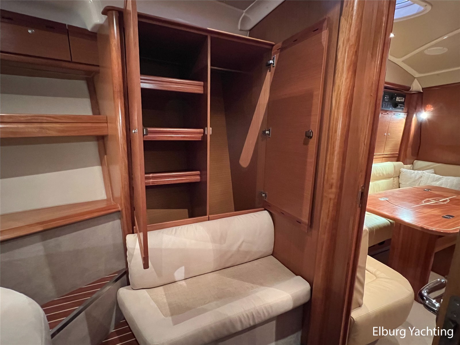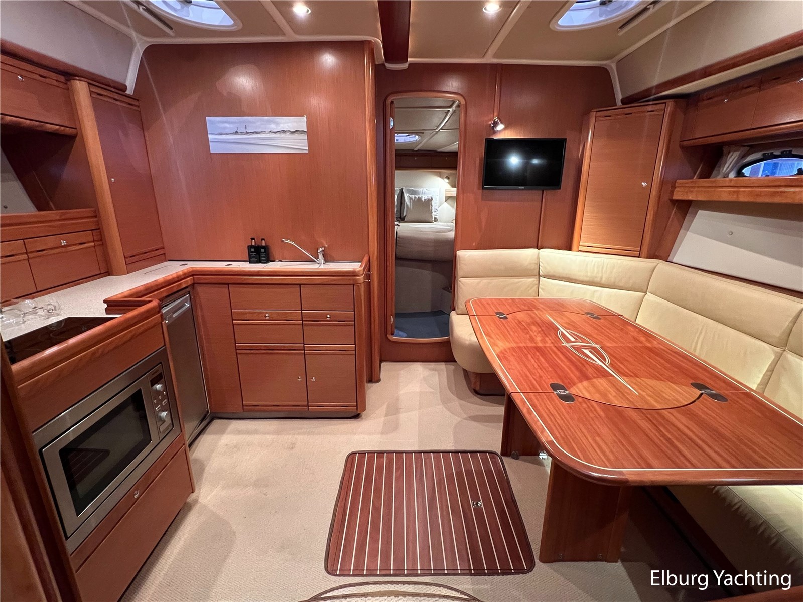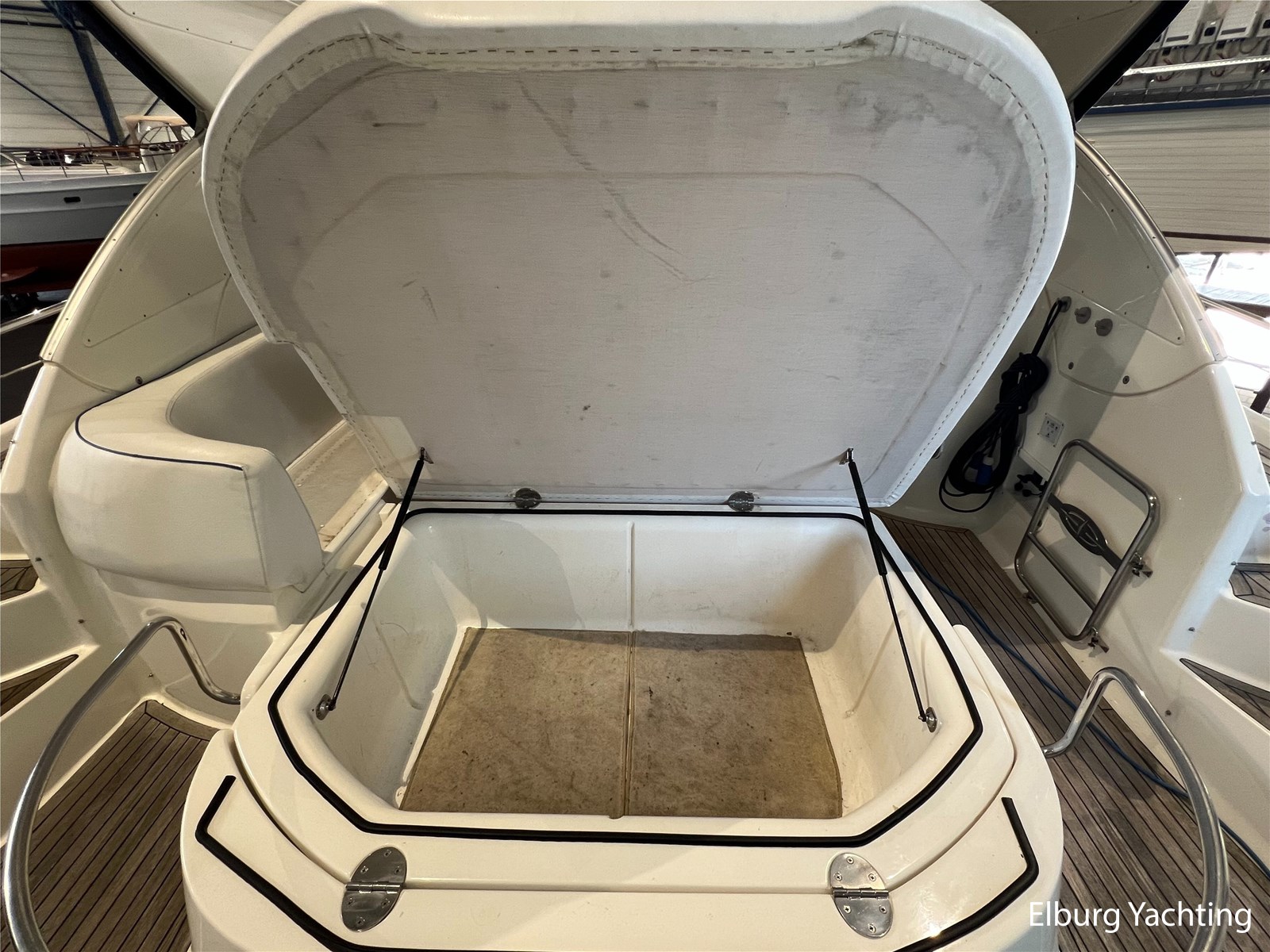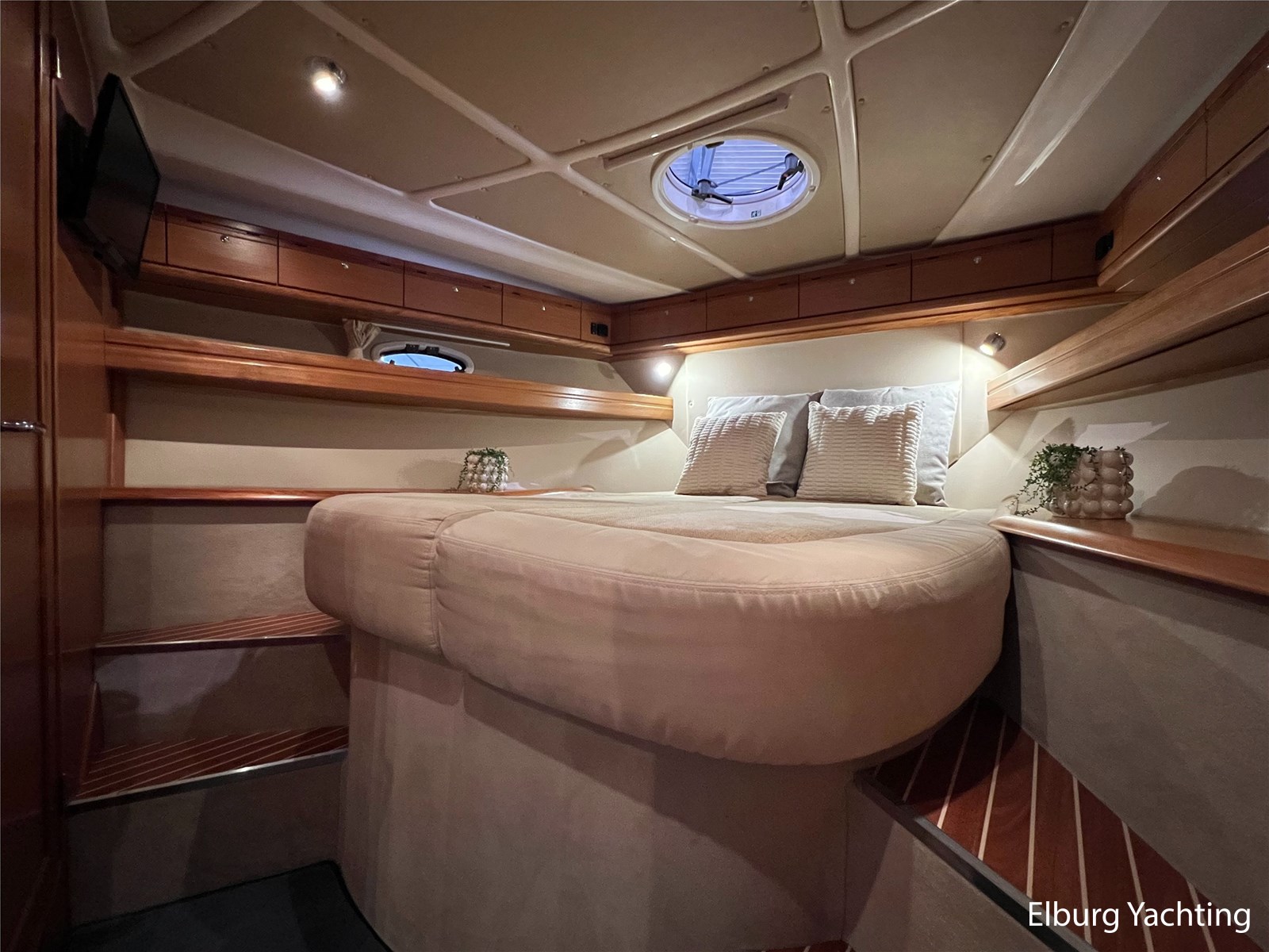 The Bavaria 42 HT Sport combines practical space and good sailing characteristics to be a sporty all-rounder suitable for both inland and open waters. The Bavaria 42 HT is characterized by its fixed superstructure (hardtop) with a large, electrical operated convertible roof, ideal for enjoying good weather or convenient retractable in inclement weather. The entire aft-deck can be closed off with a canopy featuring large removable windows. The hydraulically lowerable swim platform is convenient for bringing a dinghy or for easy entry and exit during a swim. The aft deck features a sunbed with ample storage space underneath. The engine room is accessible from the cockpit via an electrically operated hatch. A passenger bench is positioned facing the sailing direction of travel. The wetbar in the cockpit offers a grill, sink, and refrigerator. The saloon and galley are located below deck. The 2m+ headroom is immediately noticeable and creates a feeling of spaciousness. The forward cabin features a double French bed with its own en-suite bathroom (toilet/shower). A second double cabin is located amidships, also equipped with its own en-suite bathroom. In 2025, various upgrades were carried out, including new antifouling, anodes, life jackets, a wireless headset intercom system, new fenders with covers, stainless steel boat supports (also suitable for a jetski), a Wi-Fi installation, two smart TVs, a Bluetooth radio, custom-made mattresses, and a trickle charger. For questions and/or to make an appointment, you are welcome at Elburg Yachting 7 days a week.