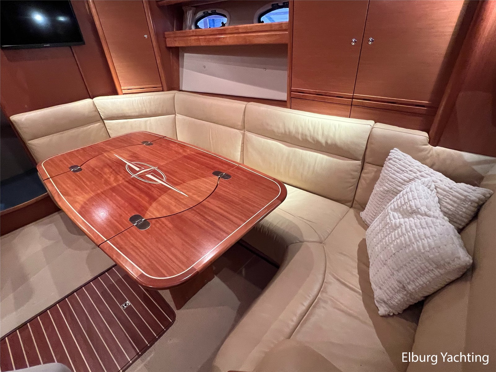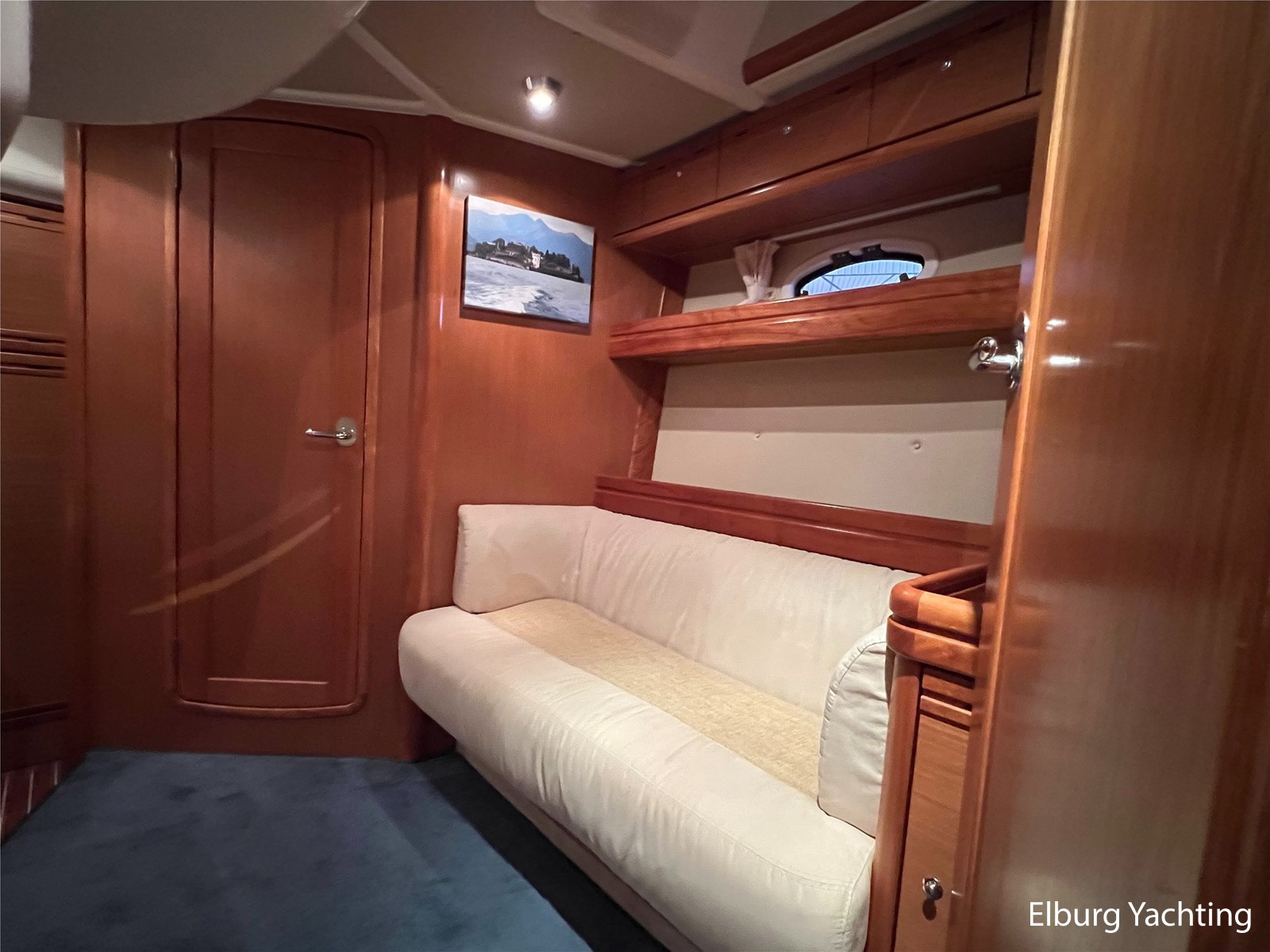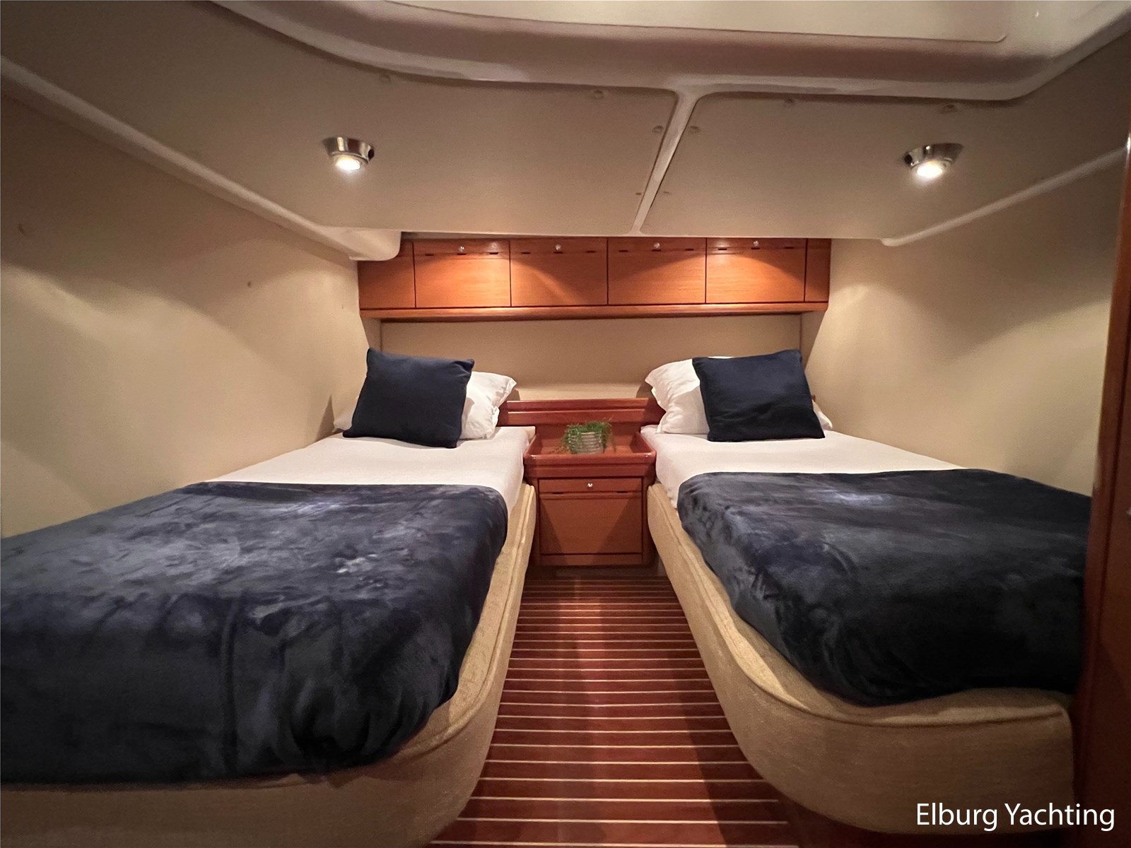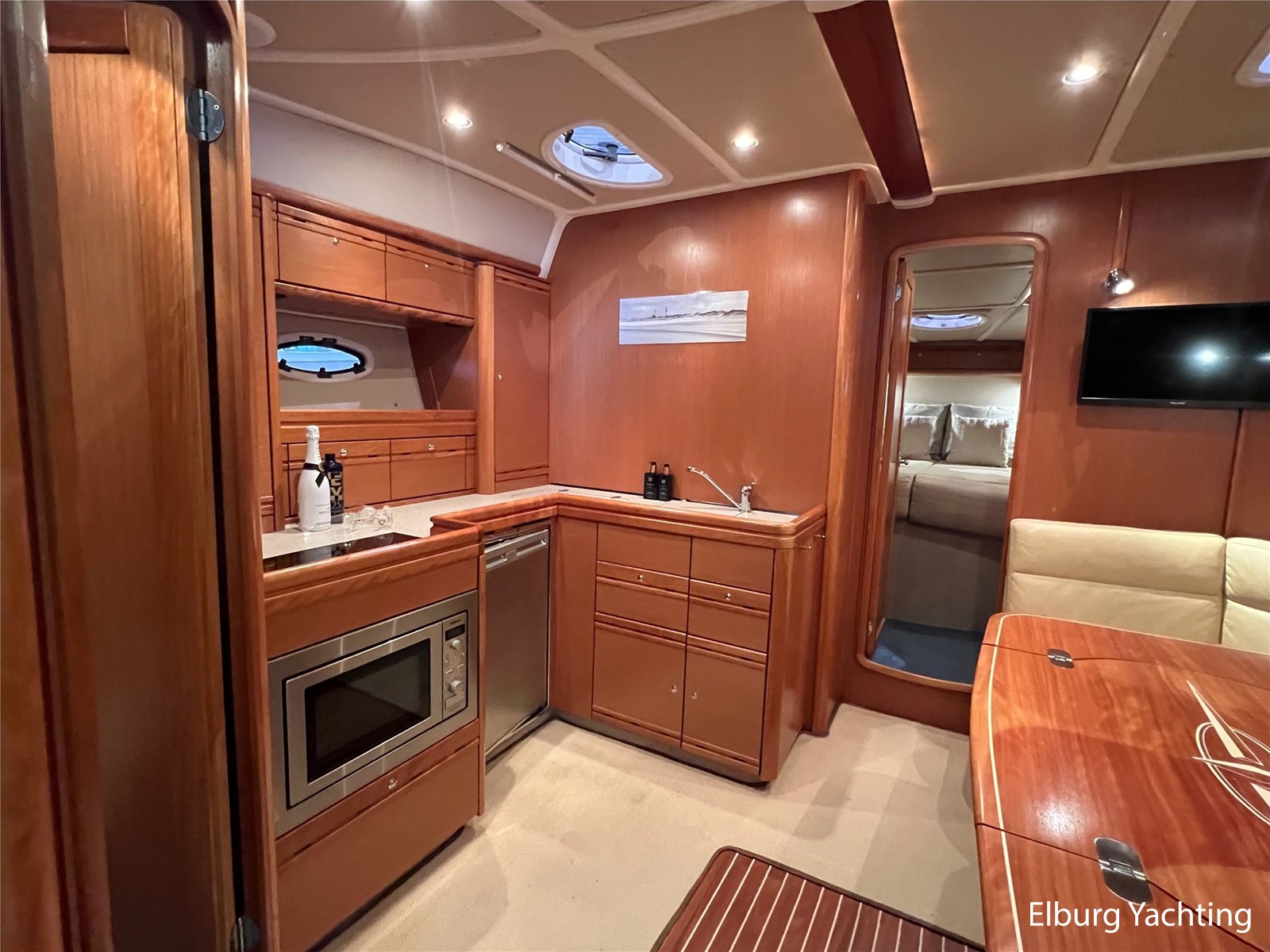 The Bavaria 42 HT Sport combines practical space and good sailing characteristics to be a sporty all-rounder suitable for both inland and open waters. The Bavaria 42 HT is characterized by its fixed superstructure (hardtop) with a large, electrical operated convertible roof, ideal for enjoying good weather or convenient retractable in inclement weather. The entire aft-deck can be closed off with a canopy featuring large removable windows. The hydraulically lowerable swim platform is convenient for bringing a dinghy or for easy entry and exit during a swim. The aft deck features a sunbed with ample storage space underneath. The engine room is accessible from the cockpit via an electrically operated hatch. A passenger bench is positioned facing the sailing direction of travel. The wetbar in the cockpit offers a grill, sink, and refrigerator. The saloon and galley are located below deck. The 2m+ headroom is immediately noticeable and creates a feeling of spaciousness. The forward cabin features a double French bed with its own en-suite bathroom (toilet/shower). A second double cabin is located amidships, also equipped with its own en-suite bathroom. In 2025, various upgrades were carried out, including new antifouling, anodes, life jackets, a wireless headset intercom system, new fenders with covers, stainless steel boat supports (also suitable for a jetski), a Wi-Fi installation, two smart TVs, a Bluetooth radio, custom-made mattresses, and a trickle charger. For questions and/or to make an appointment, you are welcome at Elburg Yachting 7 days a week.