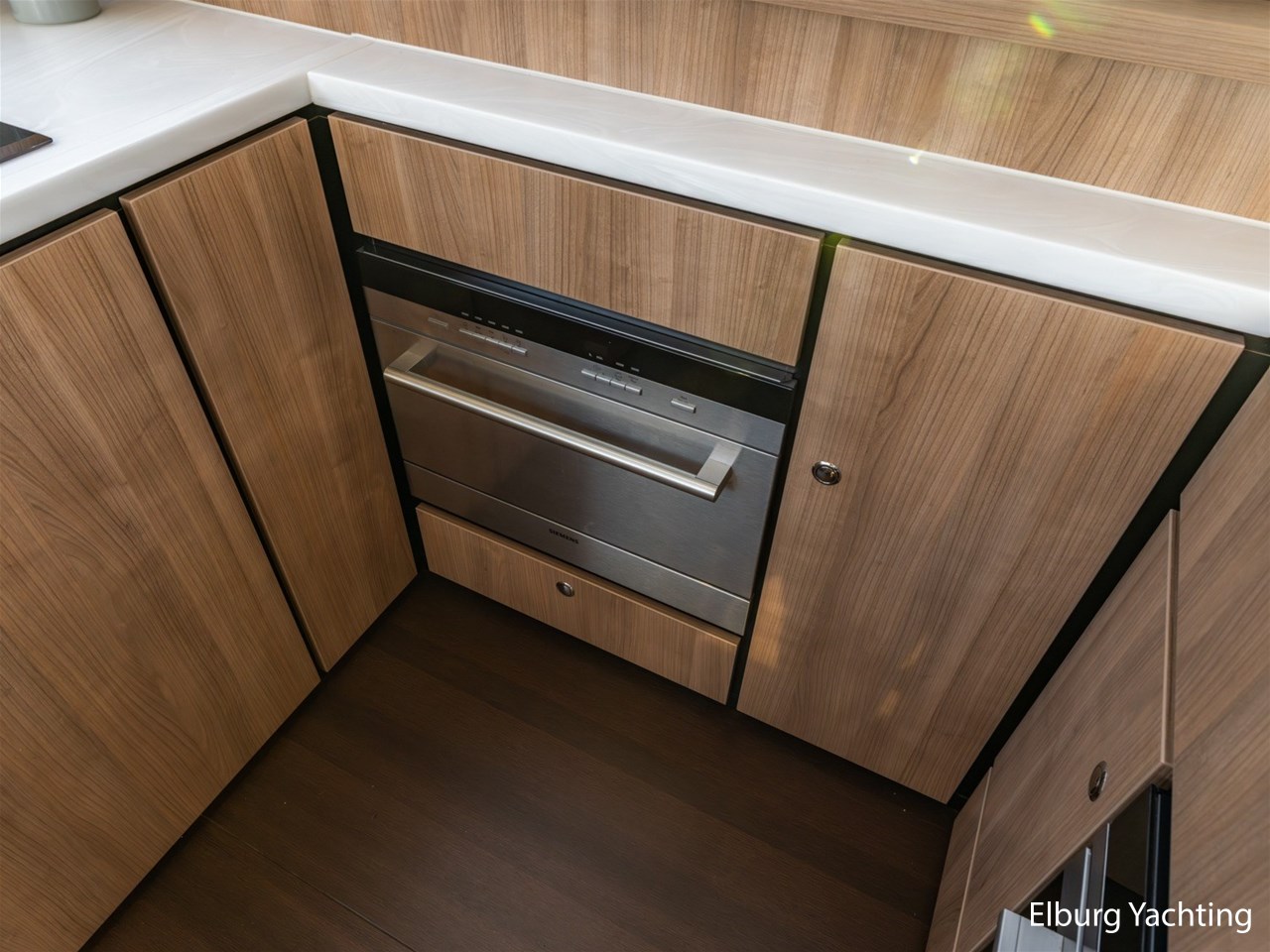This Linssen Grand Sturdy 45 has a Dark Grey hull colour combined with an Egg Shell White superstructure. The rear awning is made of Sunbrella in Cadet Grey and has recently been washed/impregnated. The yacht is fitted with a beautiful teak deck all around. Technically, the yacht is equipped with proportionally controlled electric bow and stern thrusters (direct power) + remote control. The yacht is also equipped with an Onan diesel generator (230V / 7kW) that can be used for cooking without the need for shore power. It is also equipped with a Raymarine CAM220 day & night camera system at the stern, starboard and port sides of the yacht. Electric anchor winch, electric mast lowering system, beautiful teak table on the aft deck, 3 spacious cabins, Fusion RA70N music system, preparation for stabilisers, preparation for air conditioning, davits.