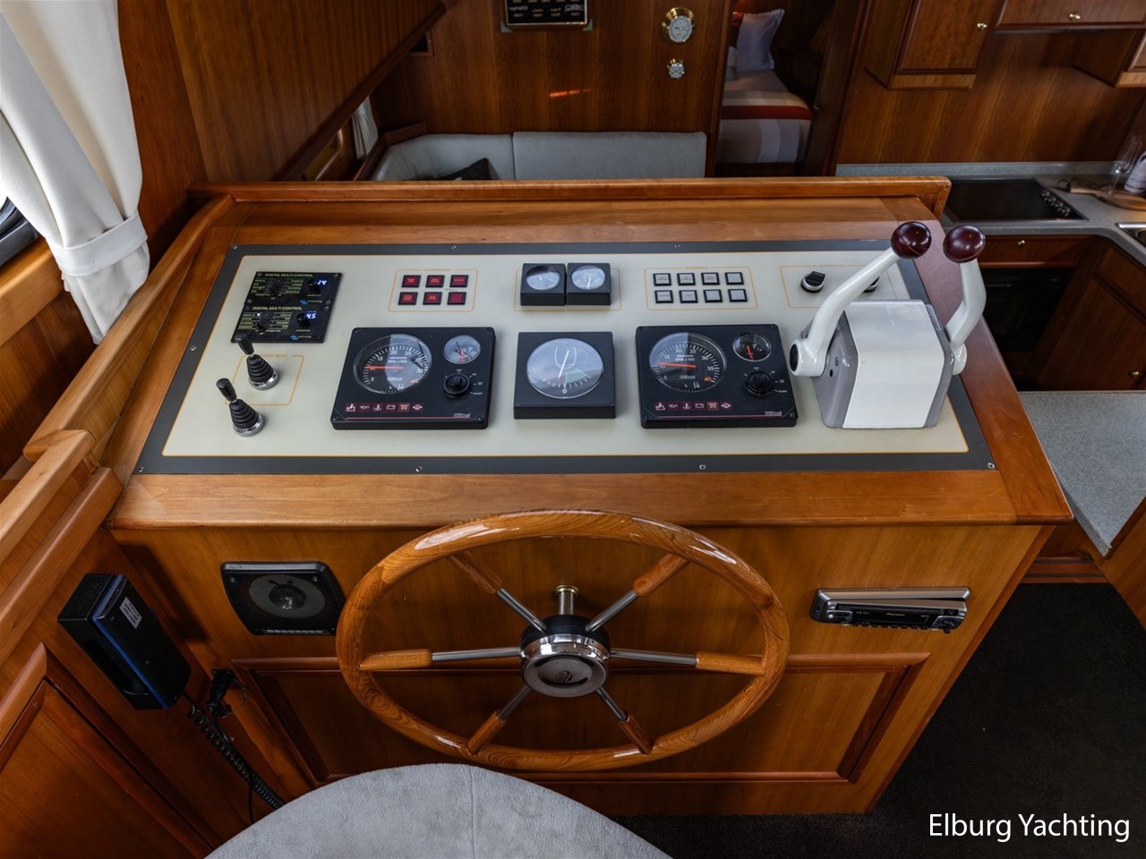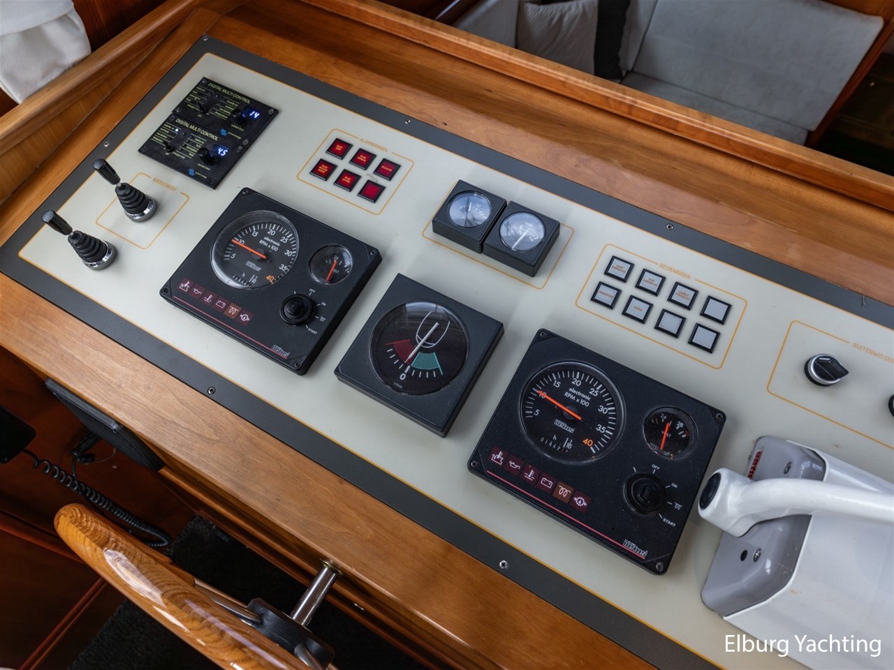 - 2 x hydraulic (indoor + outside helm position) + joystick rudder control