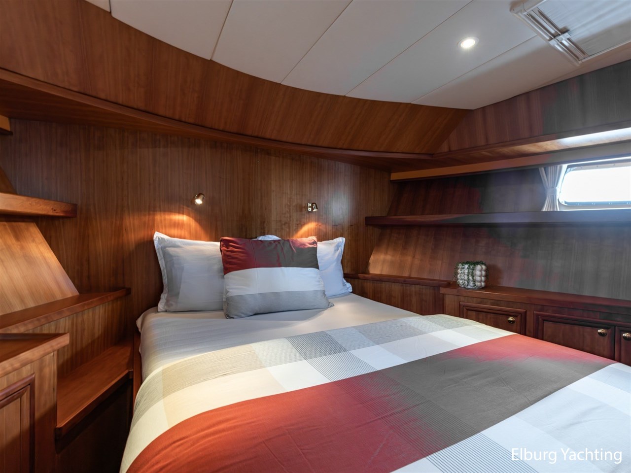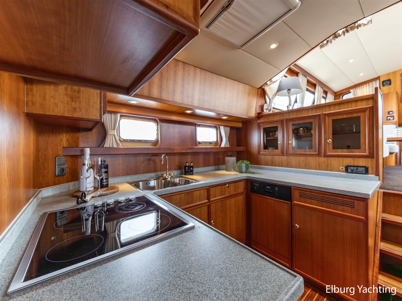 This ship has two spacious double cabins, both equipped with private en-suite bathrooms. The saloon and the galley are openly connected, creating a spacious feeling and pleasant interaction. The interior is richly finished with great attention to detail.