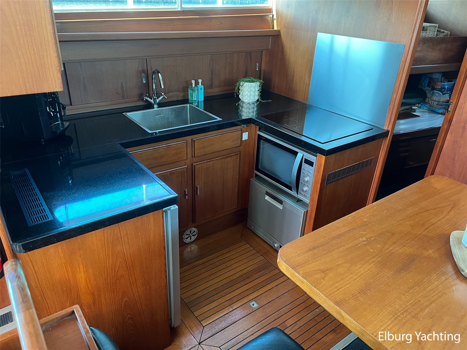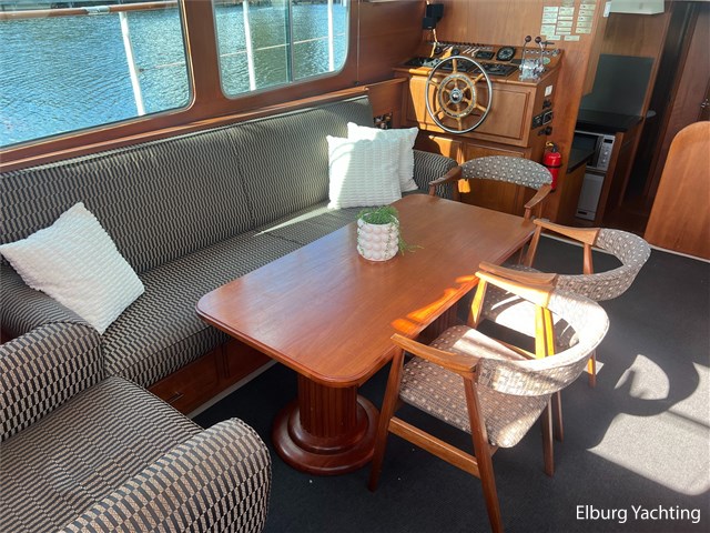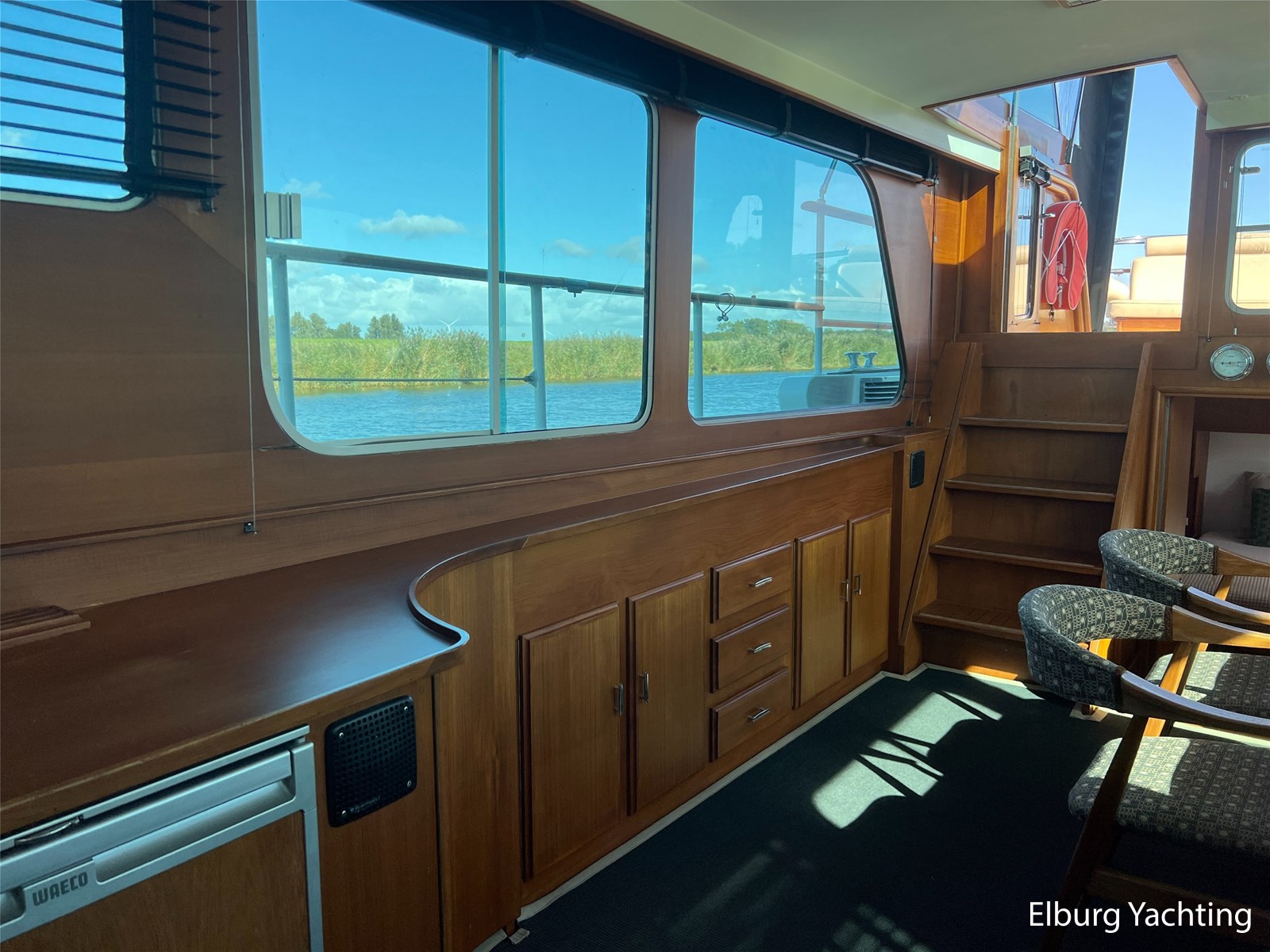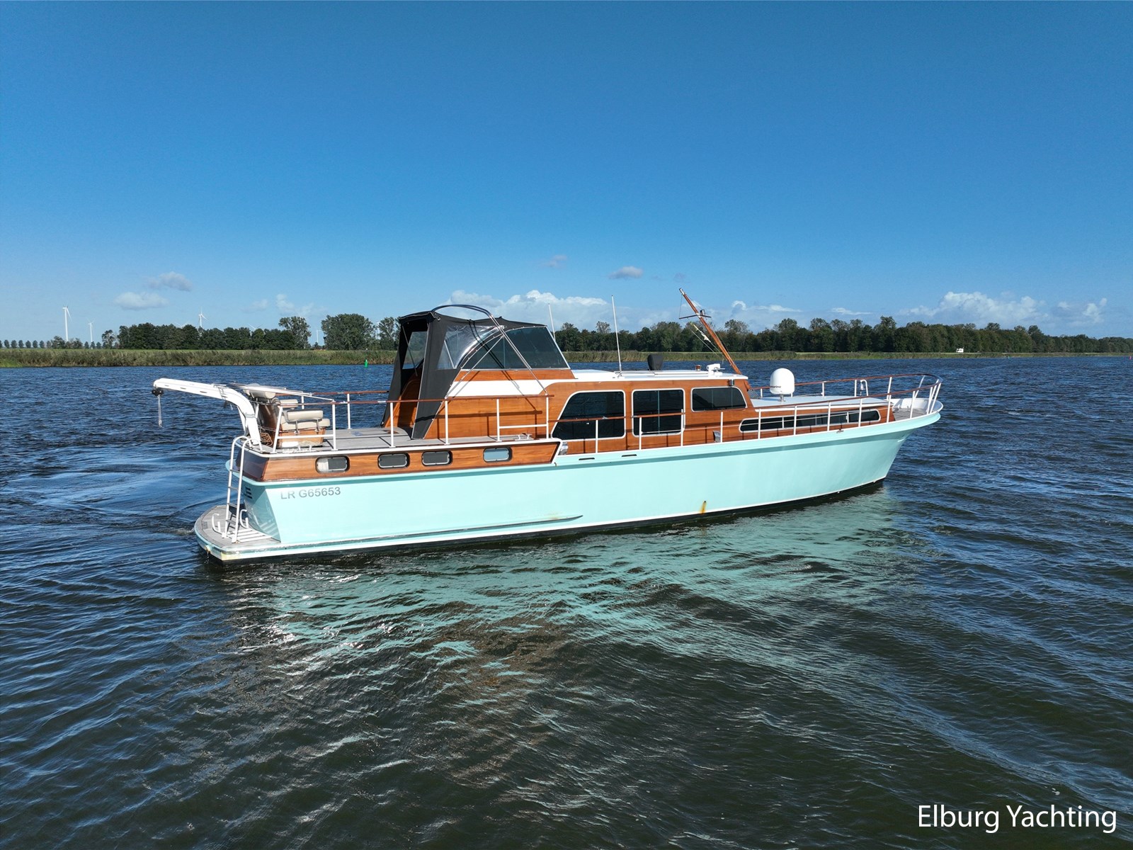 Deze bijzondere Super van Craft is met haar unieke kleurstelling een prachtige klassieke verschijning op het water. Het schip heeft een ruim achterdek met een grote (zomer) bimini en de mogelijkheid om beschut te varen achter de cabrio kap van de stuurstand. De salon is groot genoeg om naast de captain chair met ca. 6 personen plaats te nemen aan de tafel. De laatste jaren is er veel geïnvesteerd om deze Super van Craft weer in een mooie conditie te krijgen, maar er zijn nog klussen aan boord om af te ronden. Het schip is uitgevoerd met: Eigenaarshut met groot vrijstaand bed, grote bimini over achterdek, Sunbrella afdekhoezen voor o.a (bank op achterdek, loopplank, ankerlier), machinekamer geschilderd in 2022 + motoren geschilderd, dynamo's gereviseerd en nieuwe uitlaatdempers geplaatst in 2022, granieten aanrechtblad in keuken met Franke r.v.s. spoelbak, nieuw plafond in keuken met dimbare LED spots, Siemens vaatwasser, zwarte lamellen voor alle ramen in salon, vernieuwde badkamer in eigenaarshut met o.a nieuwe wasbak, nieuwe kraan, nieuwe marmeren topblad, houten opbouw en potdeksels in 2022 volledig kaal gehaald en opnieuw opgebouwd, Jabsco schijnwerper, in 2022 salon dak opnieuw geschilderd, alle chrome details zijn opnieuw verchroomd in 2022, generator vervangen voor een gebruikte Onan 4kW model in 2024, AIS met zichtbaarheid op het plotterscherm. Het teak dek op het schip is nog een punt van aandacht waar de volgende eigenaar mee aan de slag kan. Het is een zeer ruim opgezette Super van Craft met 3 hutten en 2 badkamers.