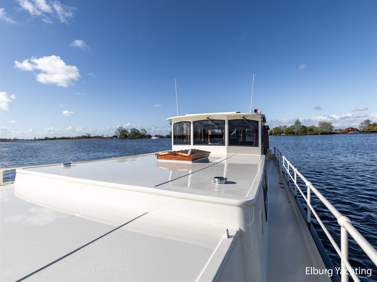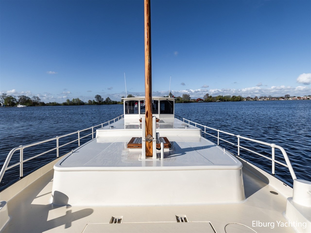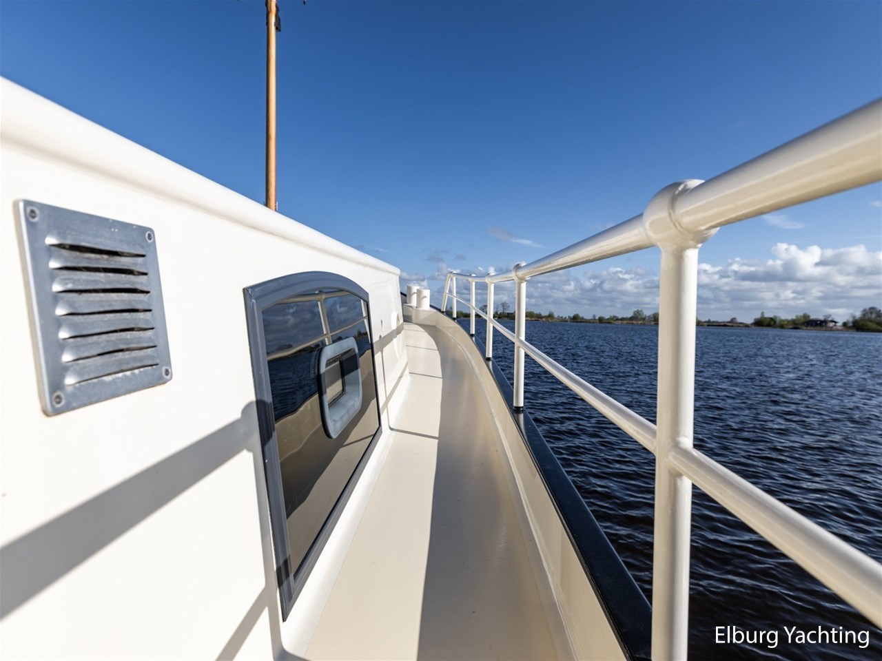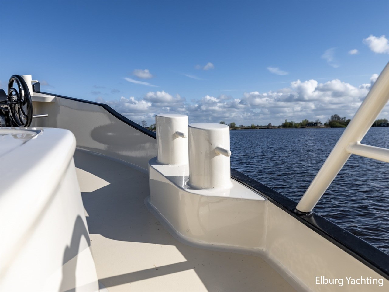 Great care has been taken in the construction of this vessel; it is fitted with a solar panel system, a 10 kVA powerful generator and central heating, and it has a large fuel capacity of approx. 4,600 litres and a water capacity of approx. 2,200 litres, making it possible to operate completely off-grid for extended periods throughout Europe; with a clearance height of approx. 3.45 metres and a draught of 1.05 metres, it is also capable of navigating the French canals. Inside this 18-metre-long and 4.65-metre-wide luxury motor vessel, the layout is very practical: there is plenty of headroom (over 2 metres), and the vessel features three double cabins, with the owner’s cabin at the bow and two guest cabins amidships. The owners of the vessel have mainly sailed in the Netherlands, meaning the vessel has seen little to no salt water. Furthermore, great care has been taken with maintenance: the vessel was painted in 2024, the engines are serviced annually, and the yacht is equipped with an Ankero spud pole in the bow. The vessel can be viewed by appointment at its current berth in Friesland. For enquiries and/or to make an appointment, you are welcome to contact Elburg Yachting 7 days a week.