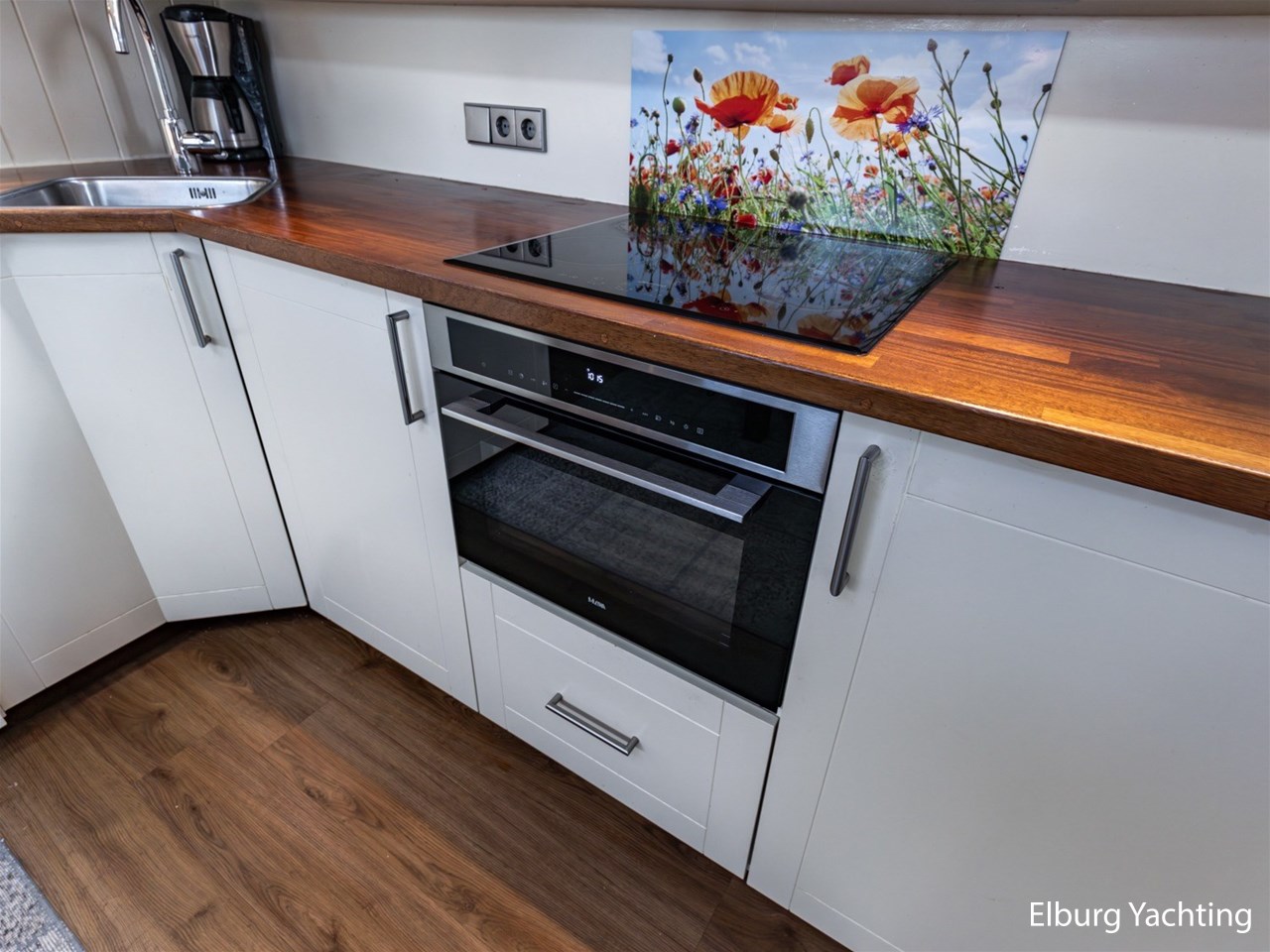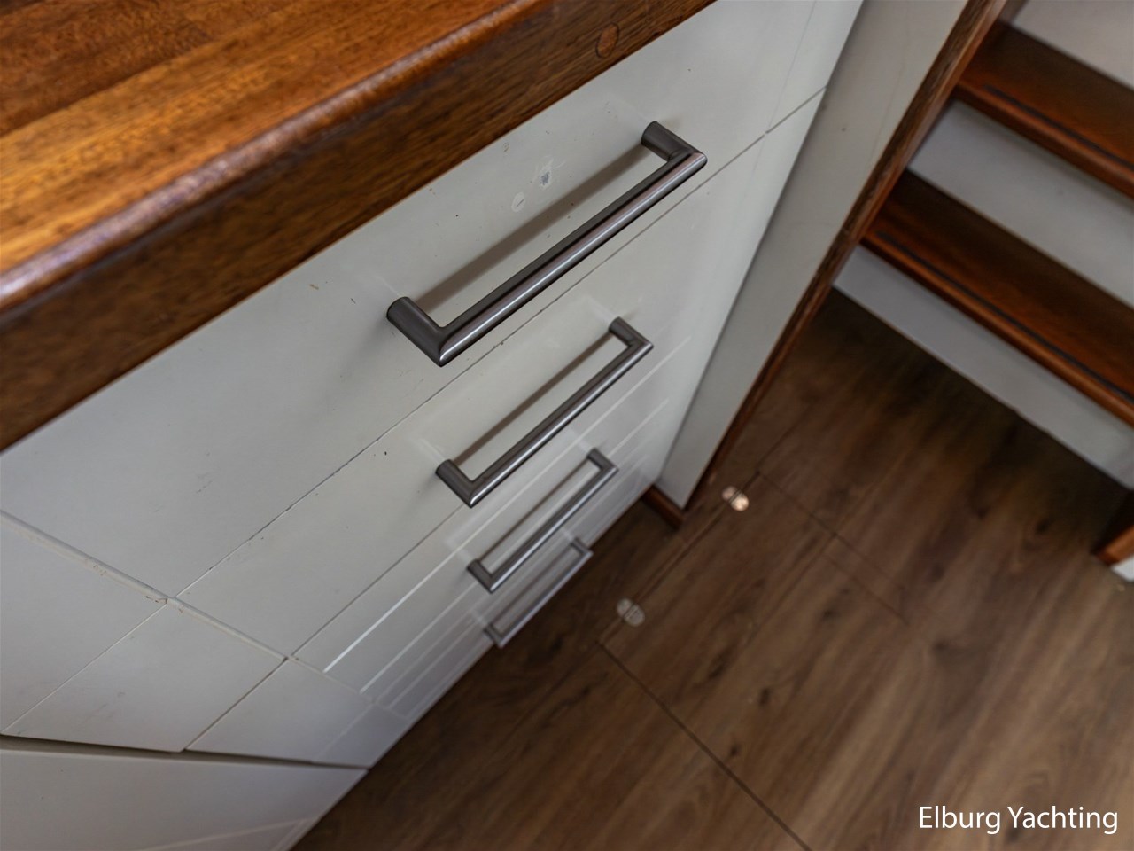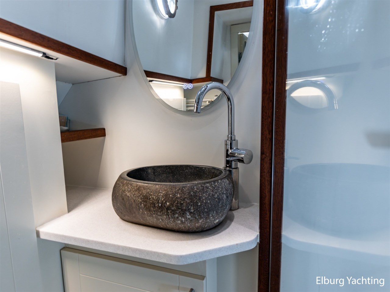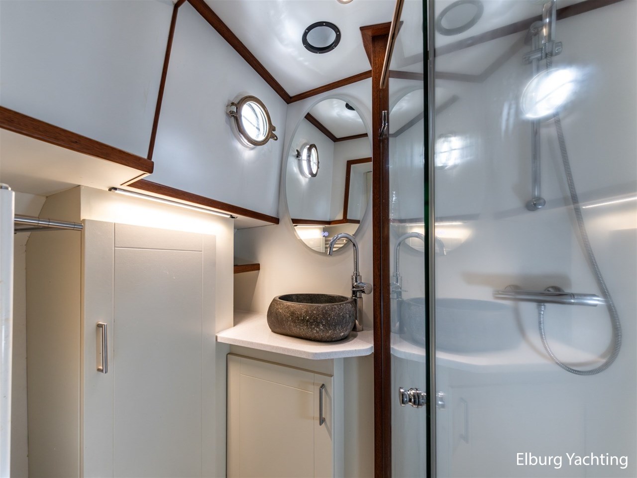 Great care has been taken in the construction of this vessel; it is fitted with a solar panel system, a 10 kVA powerful generator and central heating, and it has a large fuel capacity of approx. 4,600 litres and a water capacity of approx. 2,200 litres, making it possible to operate completely off-grid for extended periods throughout Europe; with a clearance height of approx. 3.45 metres and a draught of 1.05 metres, it is also capable of navigating the French canals. Inside this 18-metre-long and 4.65-metre-wide luxury motor vessel, the layout is very practical: there is plenty of headroom (over 2 metres), and the vessel features three double cabins, with the owner’s cabin at the bow and two guest cabins amidships. The owners of the vessel have mainly sailed in the Netherlands, meaning the vessel has seen little to no salt water. Furthermore, great care has been taken with maintenance: the vessel was painted in 2024, the engines are serviced annually, and the yacht is equipped with an Ankero spud pole in the bow. The vessel can be viewed by appointment at its current berth in Friesland. For enquiries and/or to make an appointment, you are welcome to contact Elburg Yachting 7 days a week.