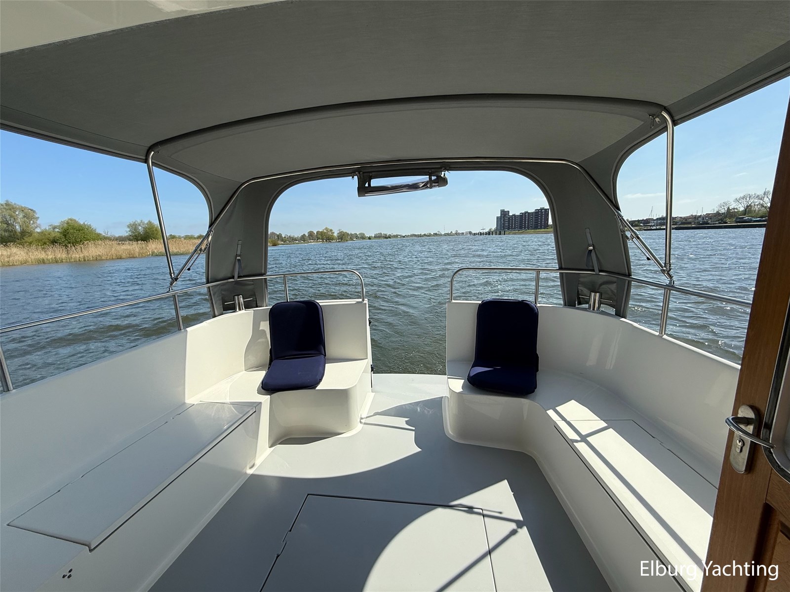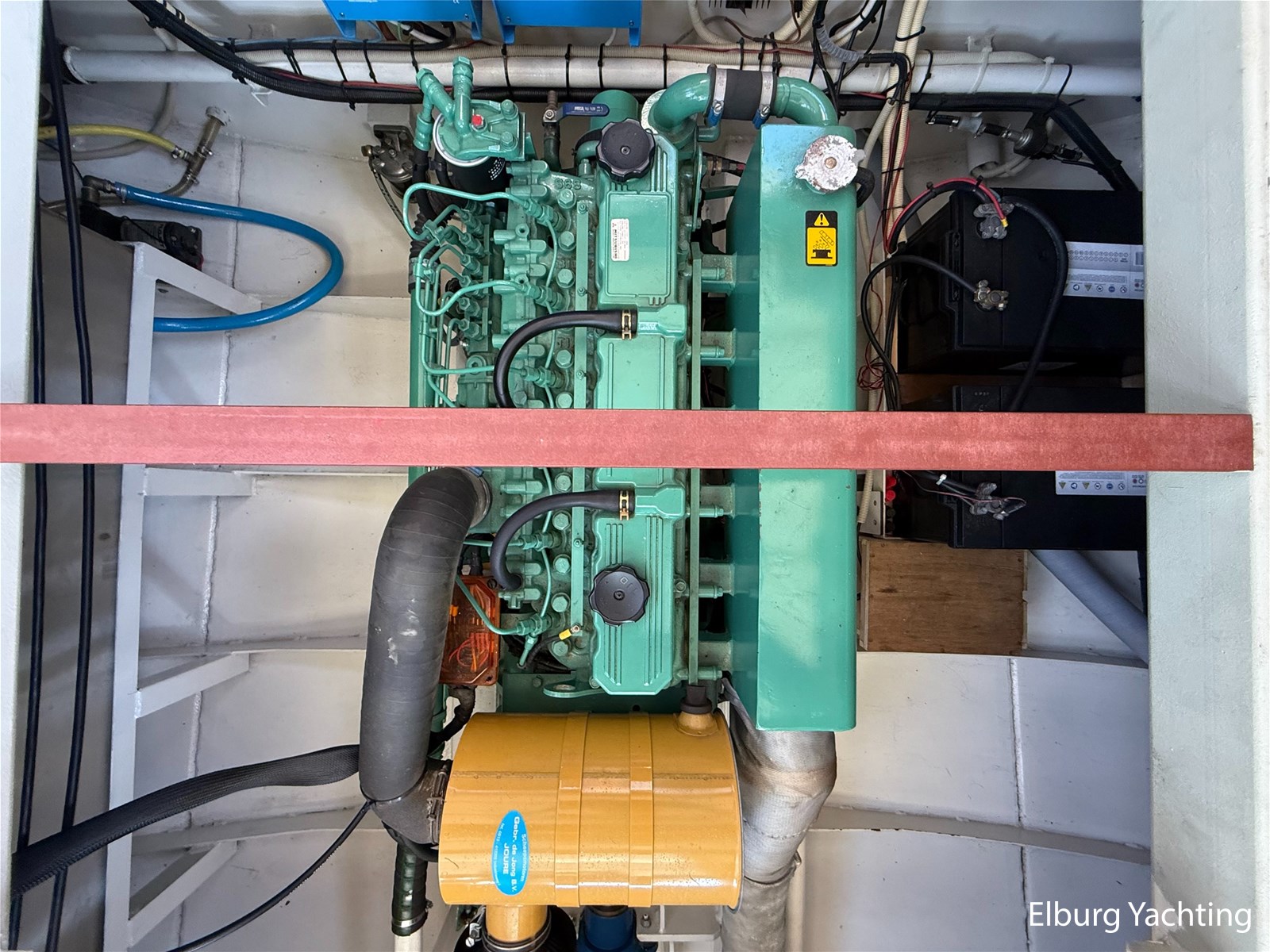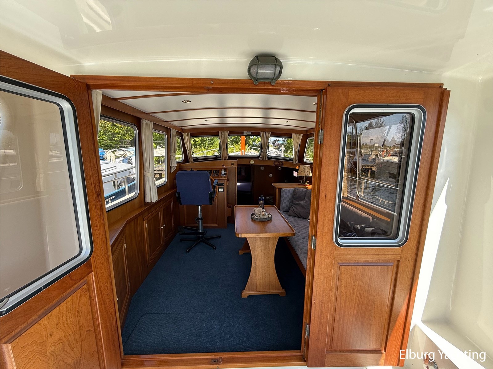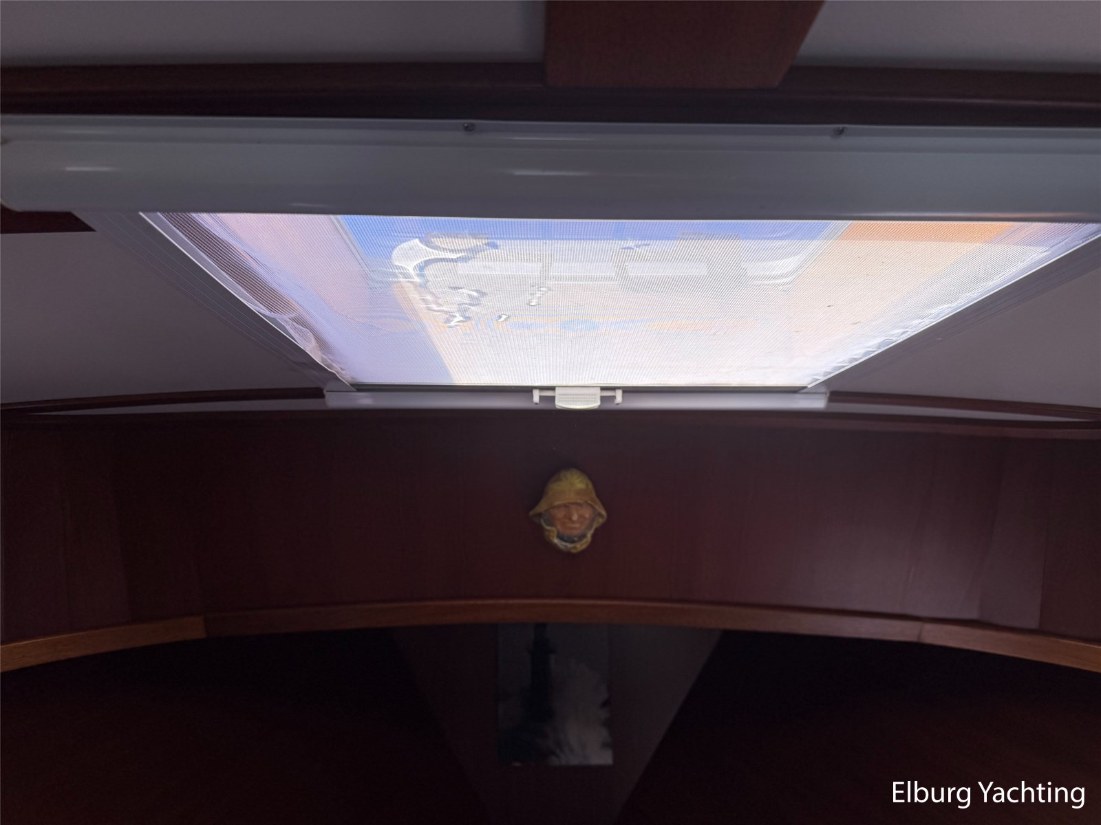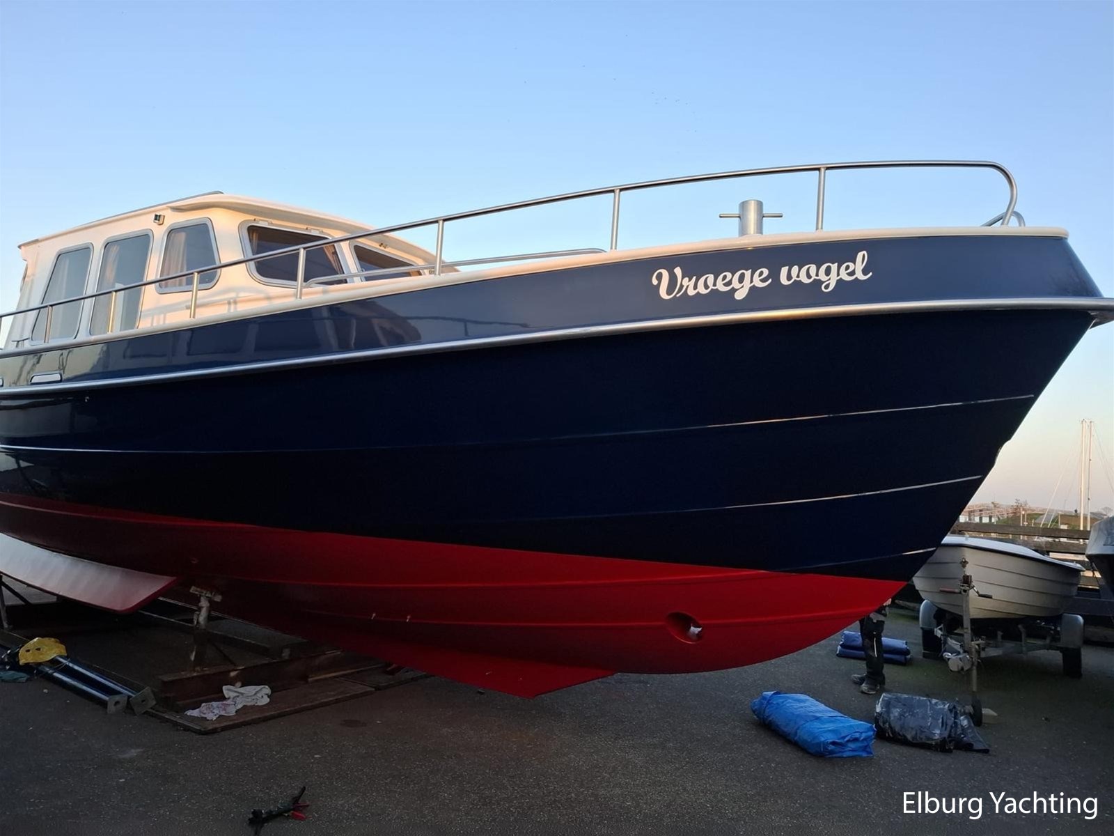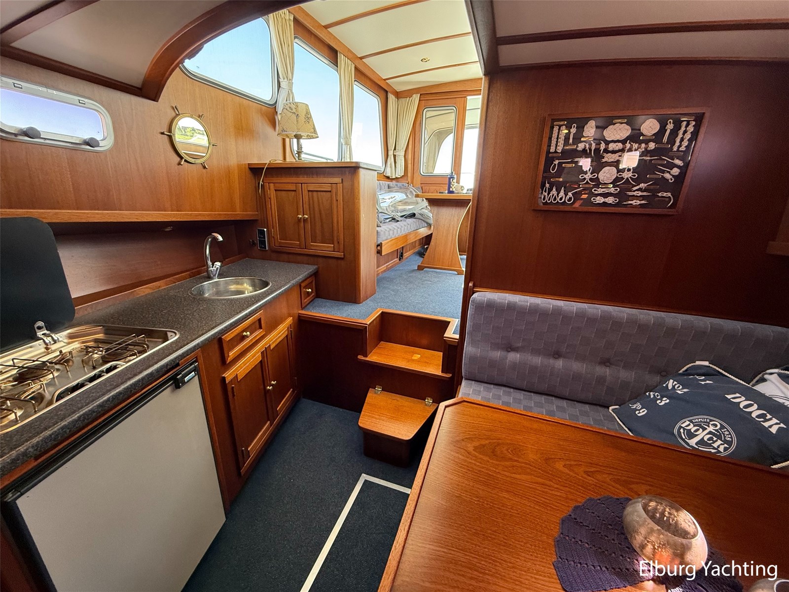 The Vroege Vogel is practically equipped and features: New cockpit cover (2025), solar panels for extra autonomy, a powerful 89 hp Mitsubishi 6-cylinder engine, electric bow thruster (95 kgf) for easy maneuvering, deck wash pump, keel fins (which keep the boat stable), a folding mast resulting in a very low clearance height, Webasto hot-air heating, a 3-burner stove, a manual anchor winch in the locker, a Victron Phoenix Multi inverter/charger, and a pull-out salon bench that creates two extra sleeping spots in a snap. The boat is also equipped with an integrated swim platform with a swim ladder and an Advansea marine radio.